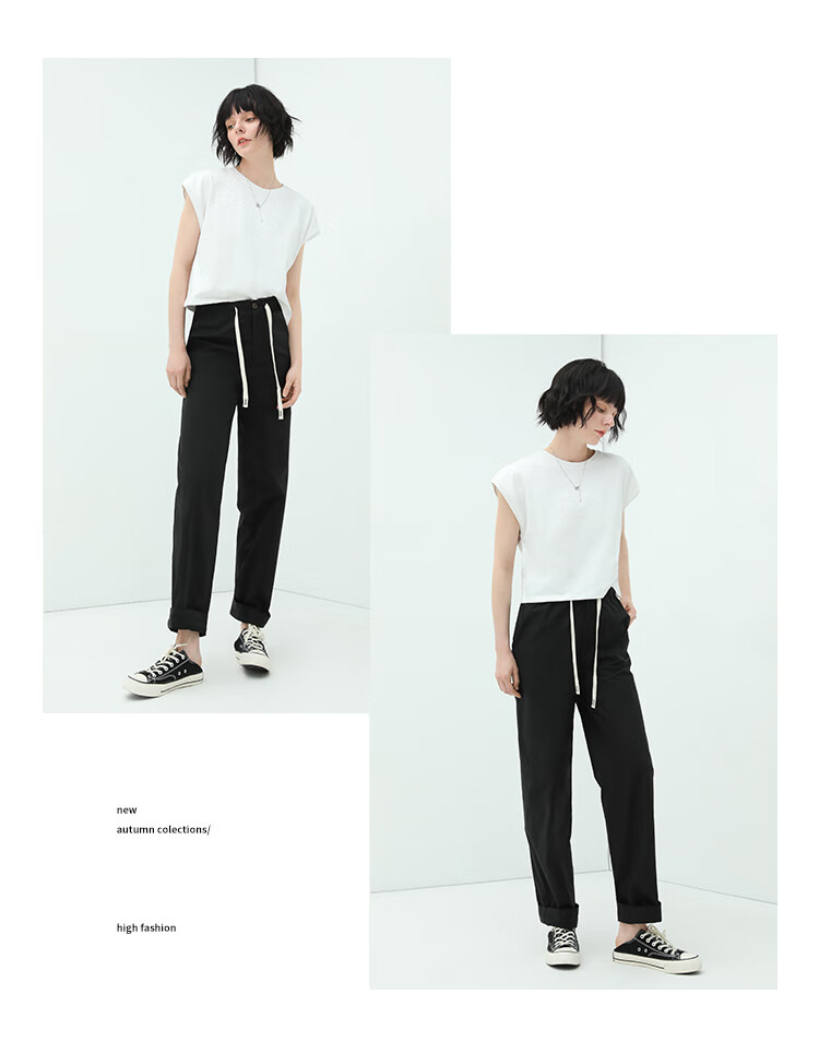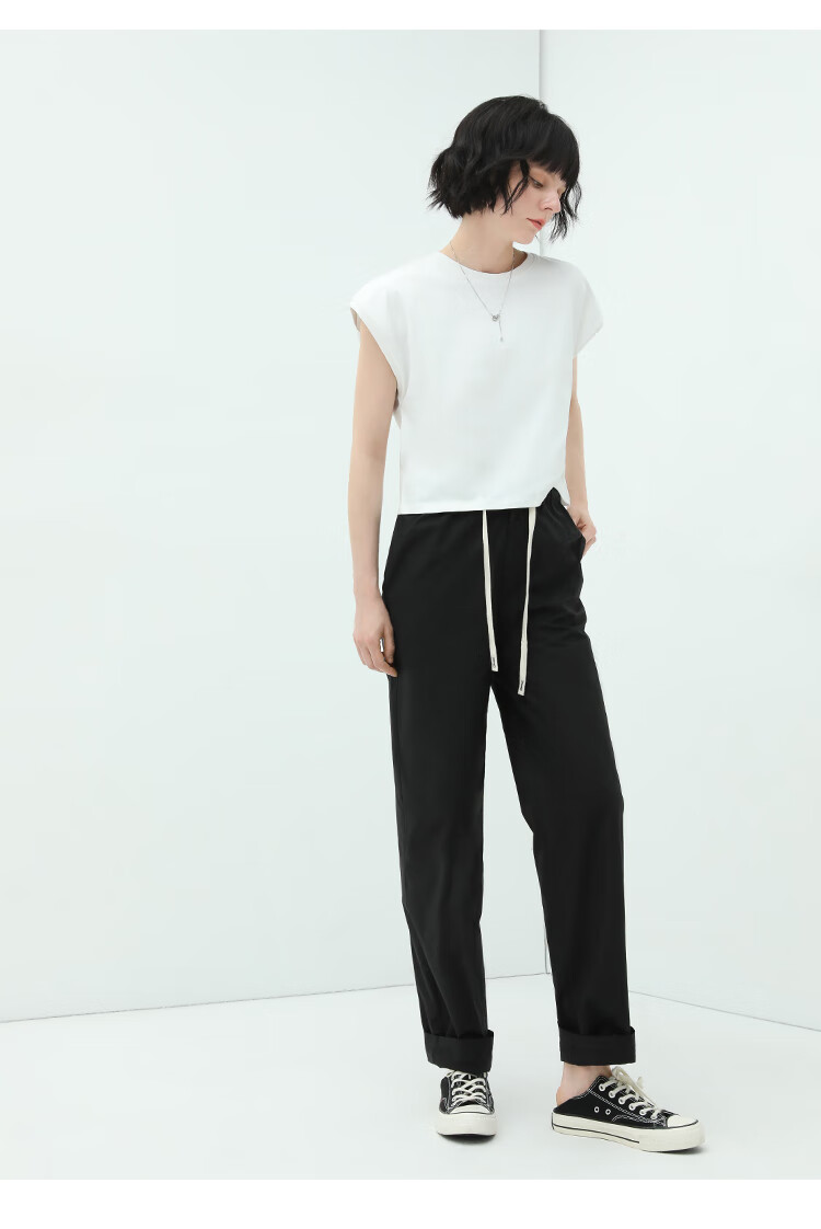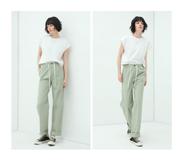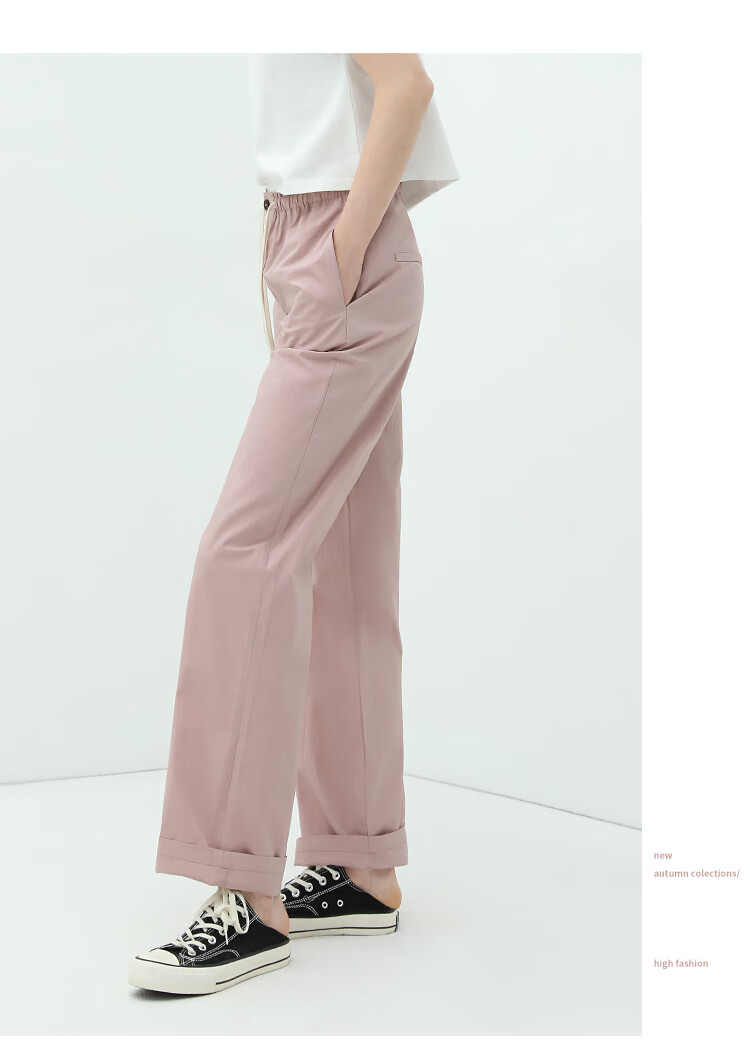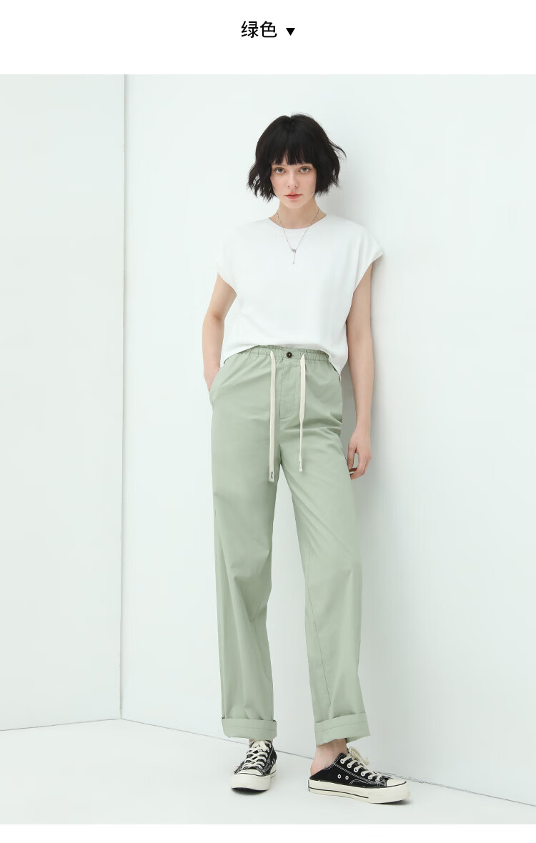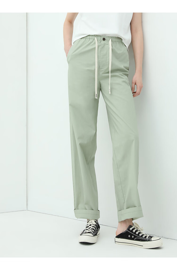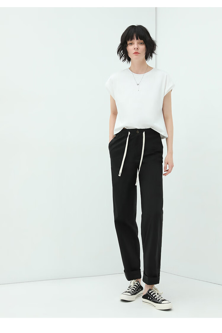 COCOBELLA撞色腰绳休闲凉爽工装裤女花苞腰哈伦裤NPA23