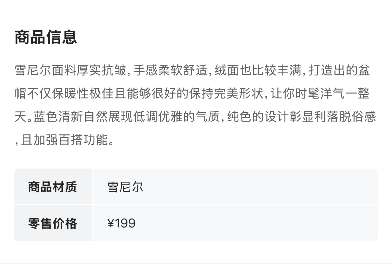 OCTAVIA 蓝色雪尼尔盆帽 5653