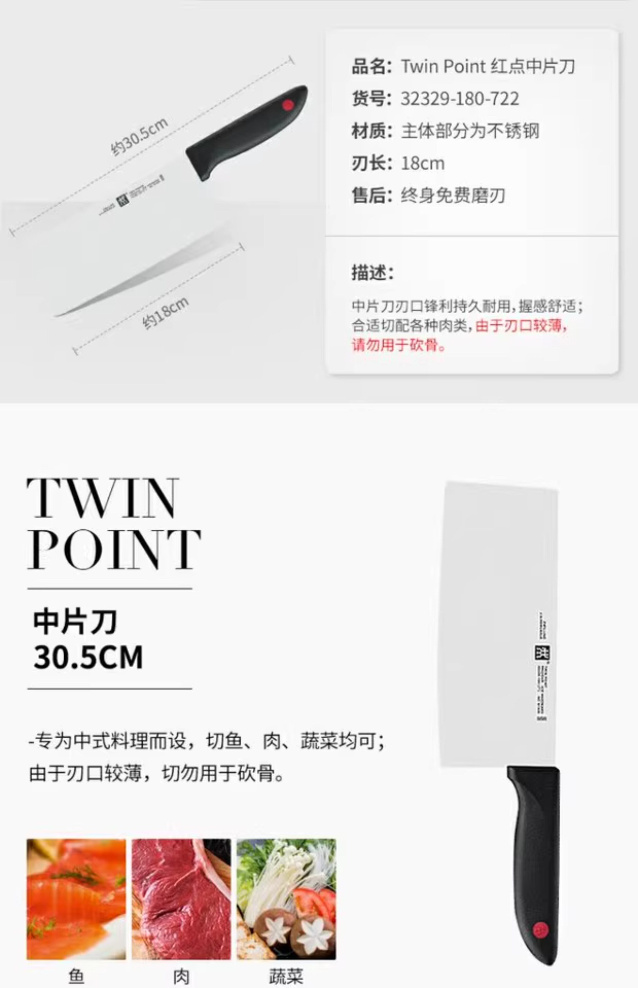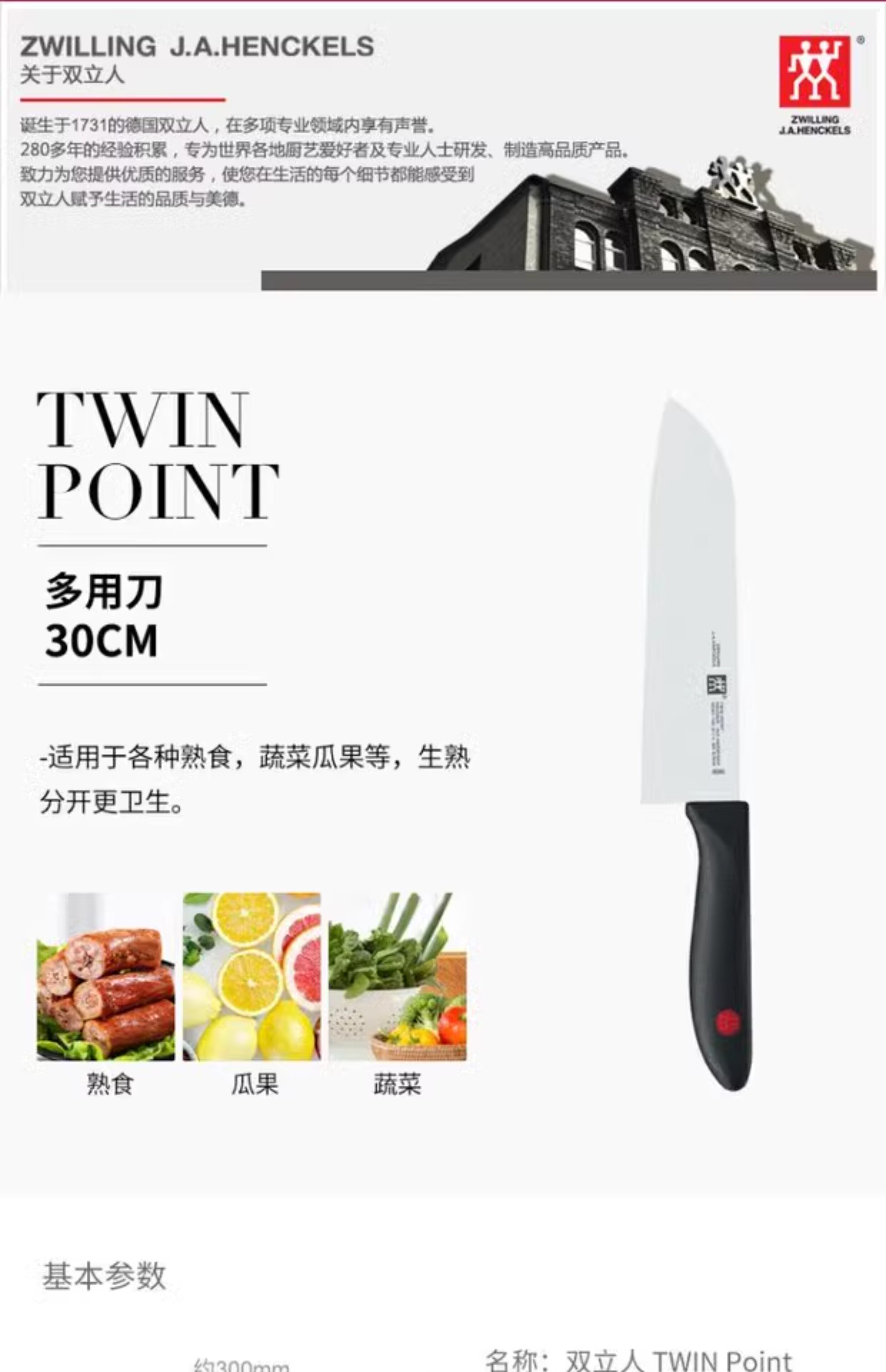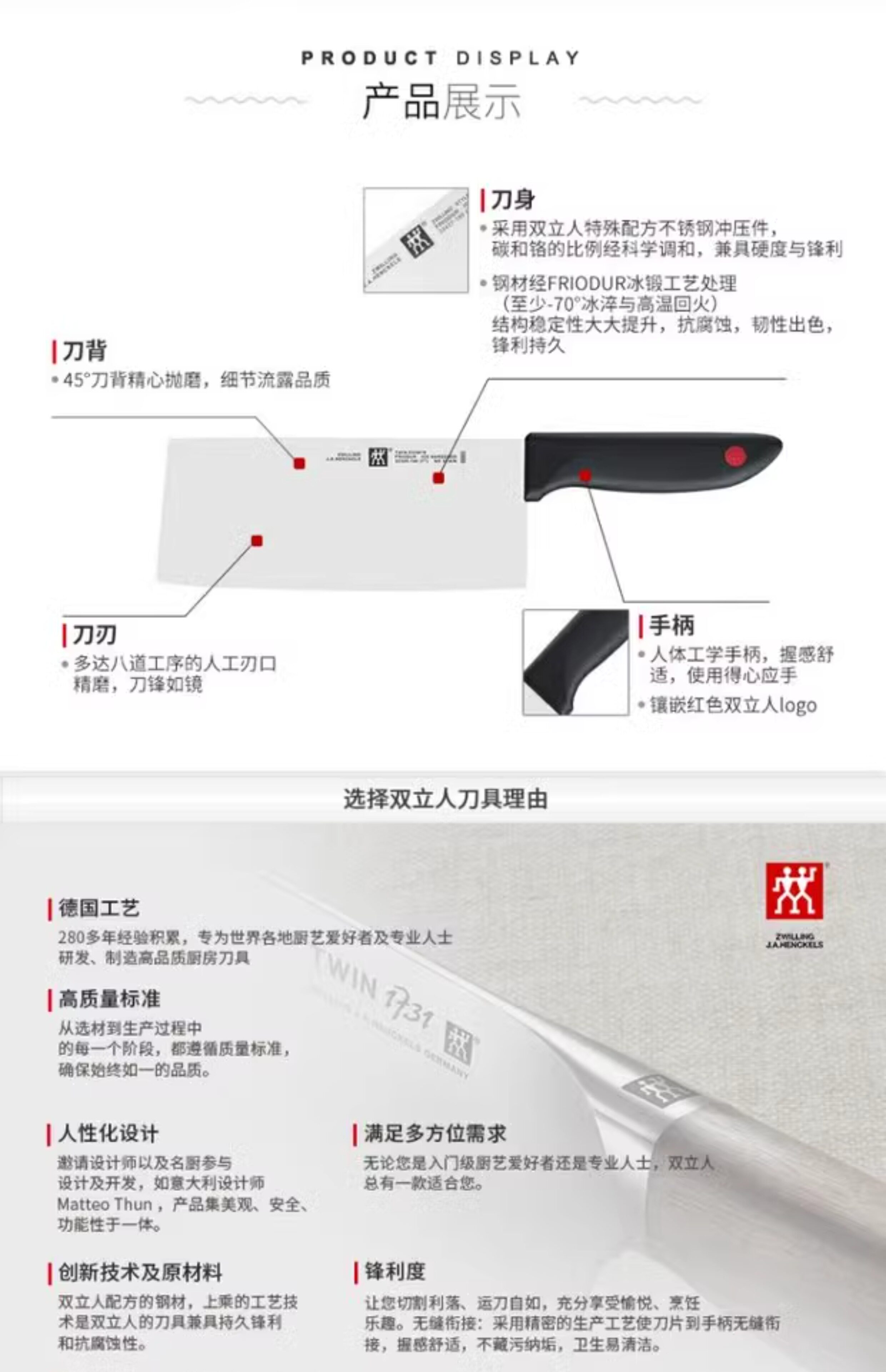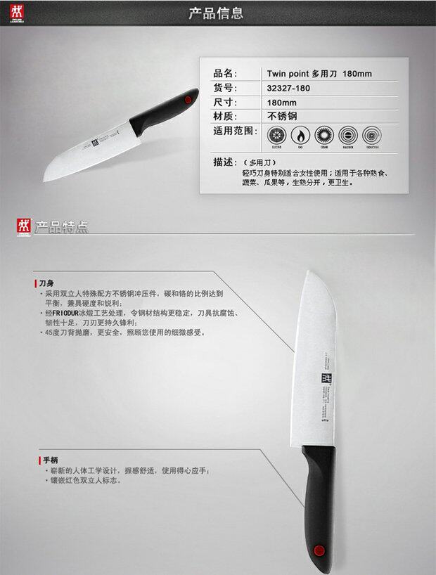 【双立人单刀菜刀】正品德国双立人TWIN Point红点系列中片刀不锈钢刀具菜刀 简包装