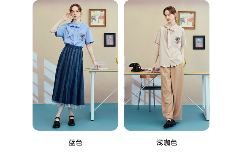 两三事心向莫奈 夏季新款文艺风油画印花口袋长袖衬衫女宽松