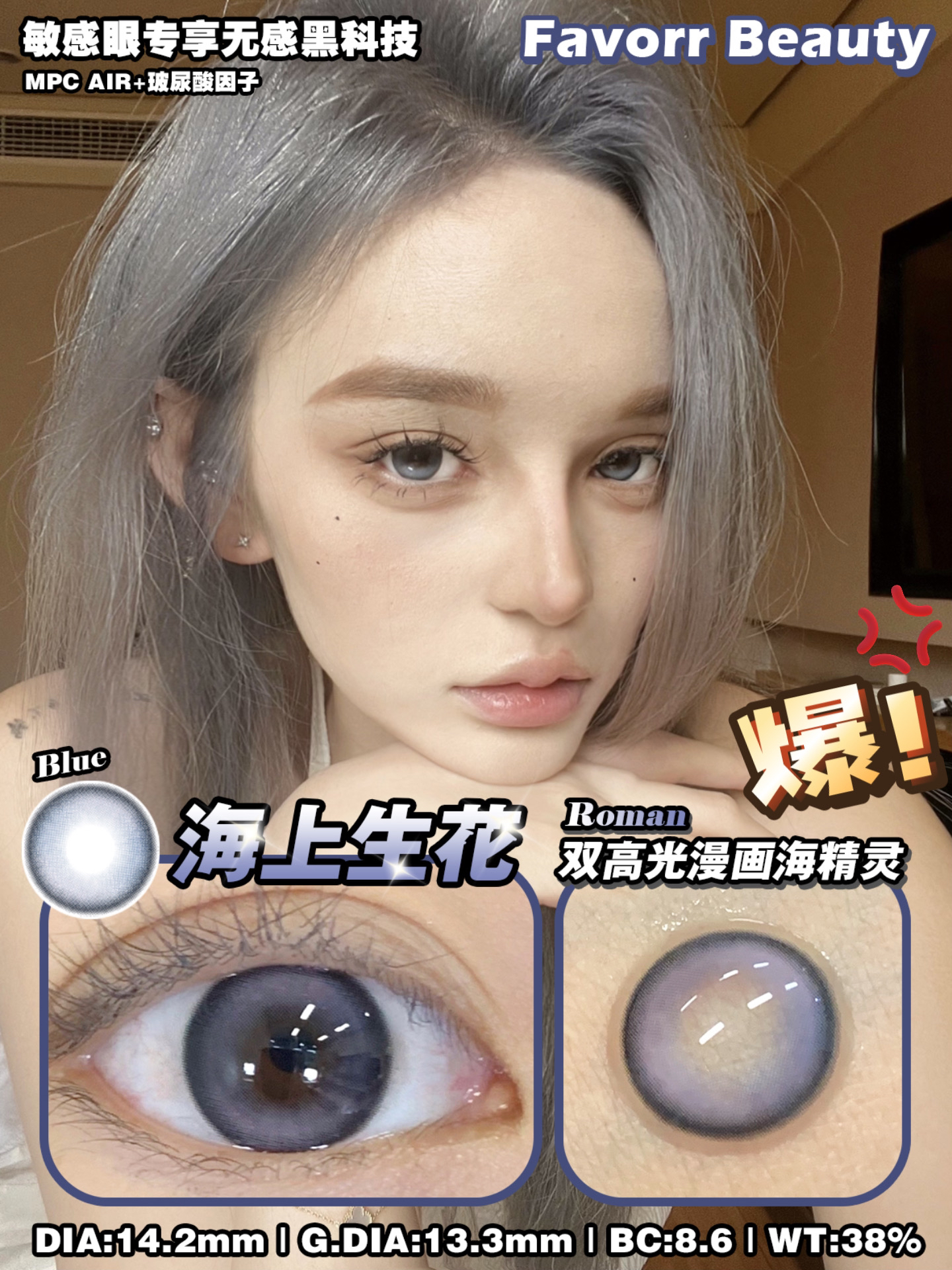 【年抛】海上生花 favorrbeauty | 中直径14.2,着色13.3 | 蓝色美瞳