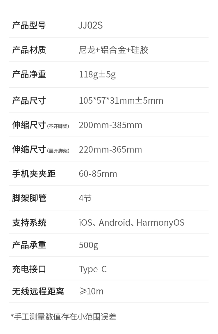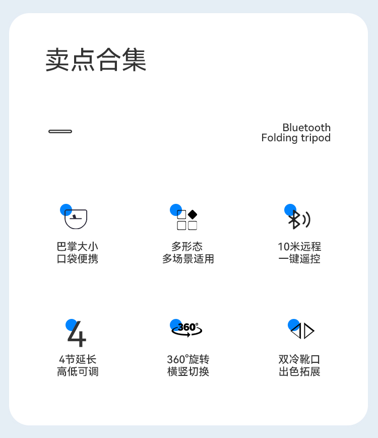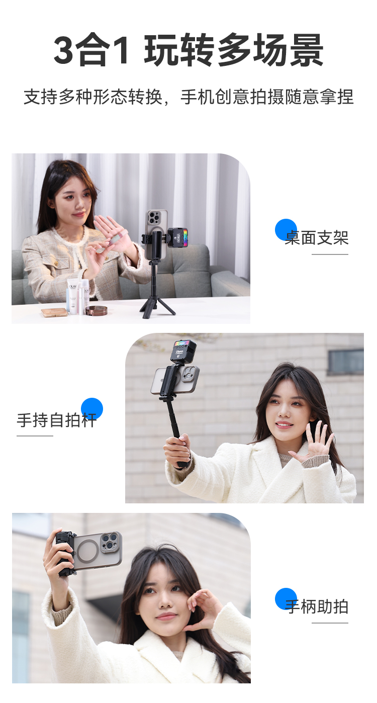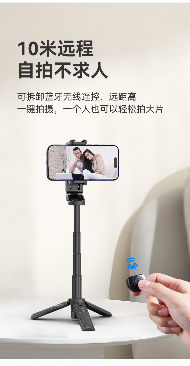 Ulanzi优篮子 JJ02蓝牙手柄三脚架可拉伸旋转手柄桌面手机冷靴拓展补光灯便携支架手持横竖拍摄影摄像自拍杆