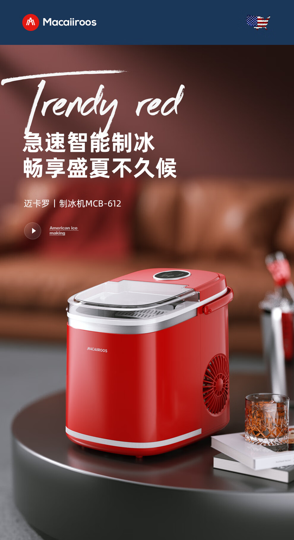 【小家电】迈卡罗MCB-612制冰机家用商用小型迷你造冰机全自动宿舍KTV冰块制作器欧式子弹冰HF