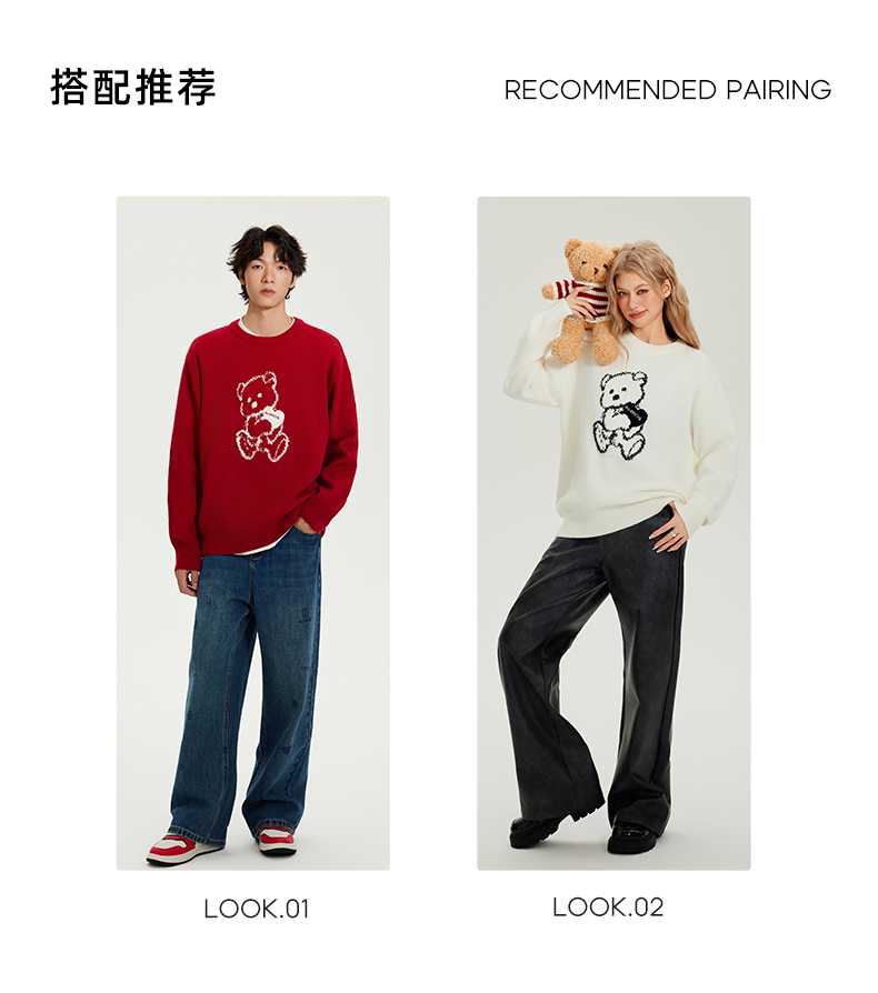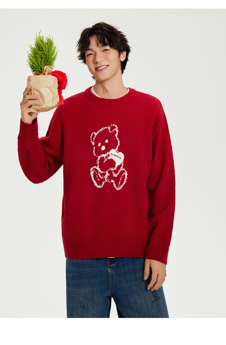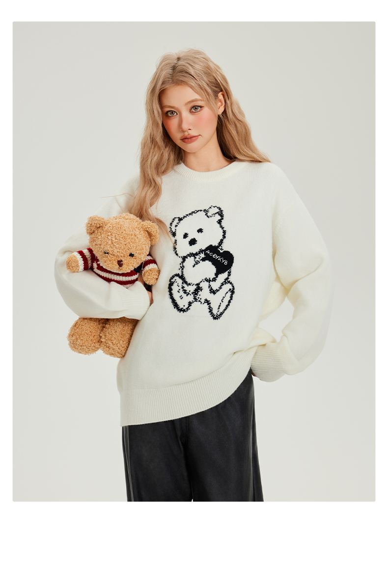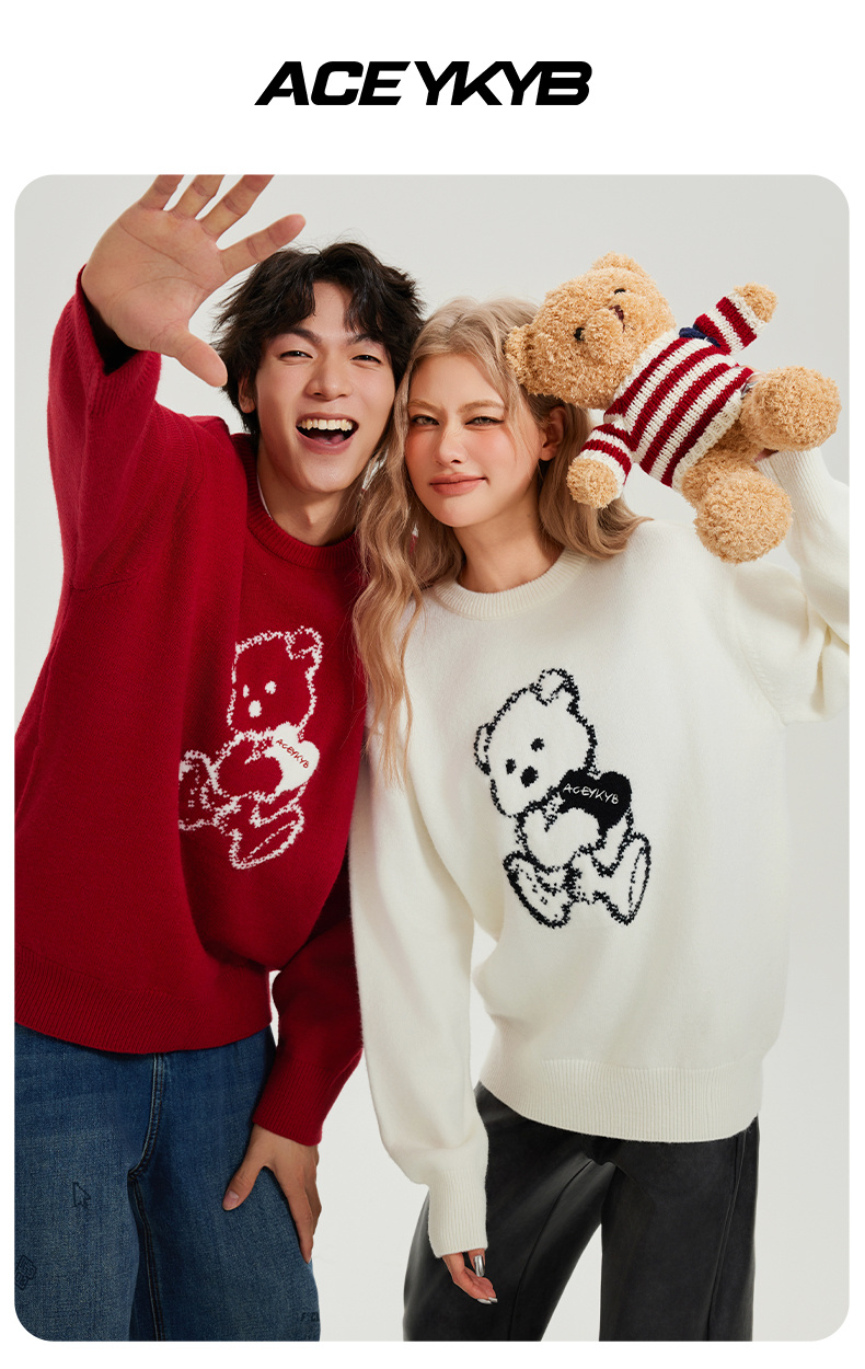 [黄誉博同款]YKYB新款高弹舒适肤无百搭趣味小熊毛衣针织衫