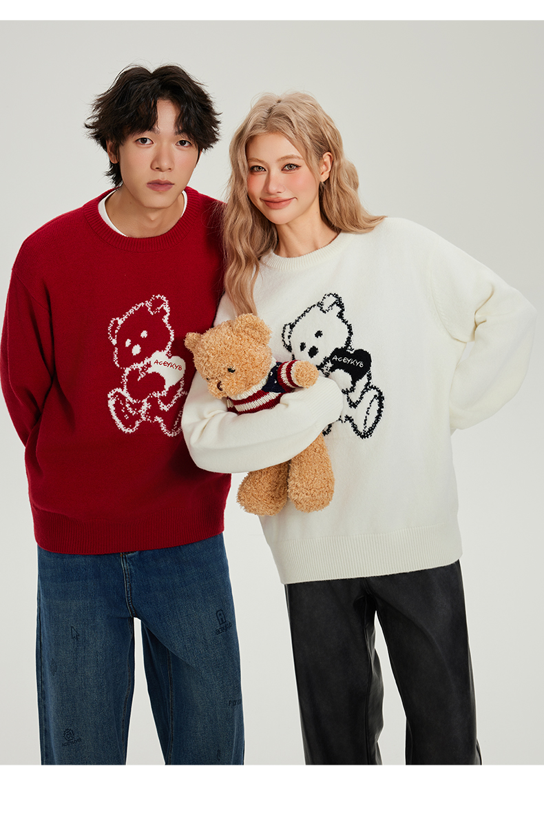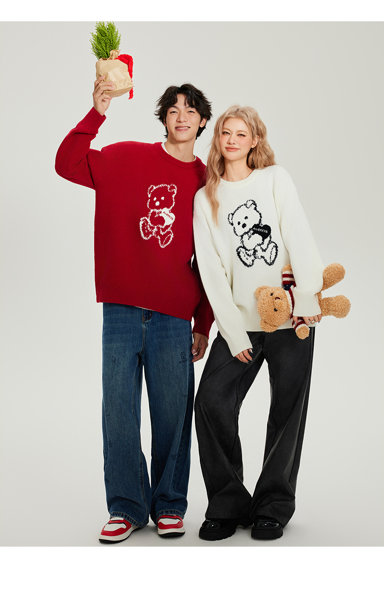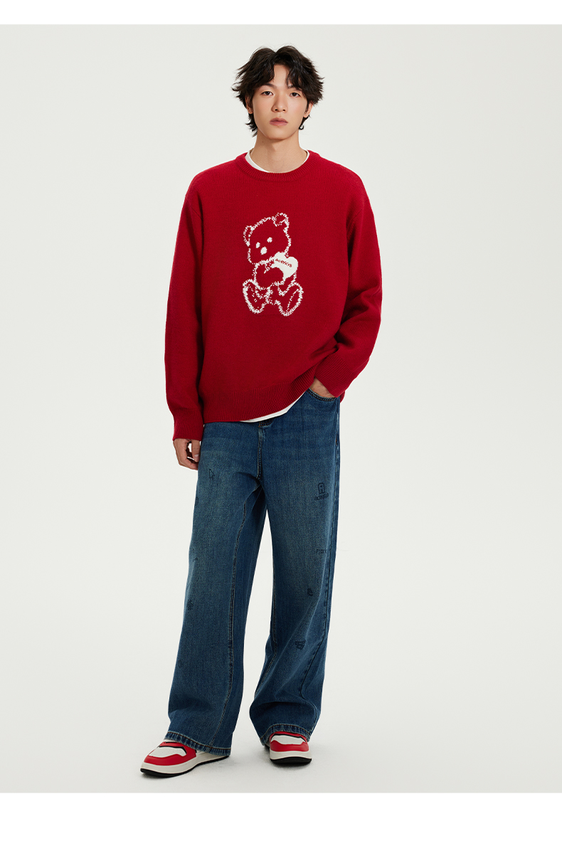[黄誉博同款]YKYB新款高弹舒适肤无百搭趣味小熊毛衣针织衫