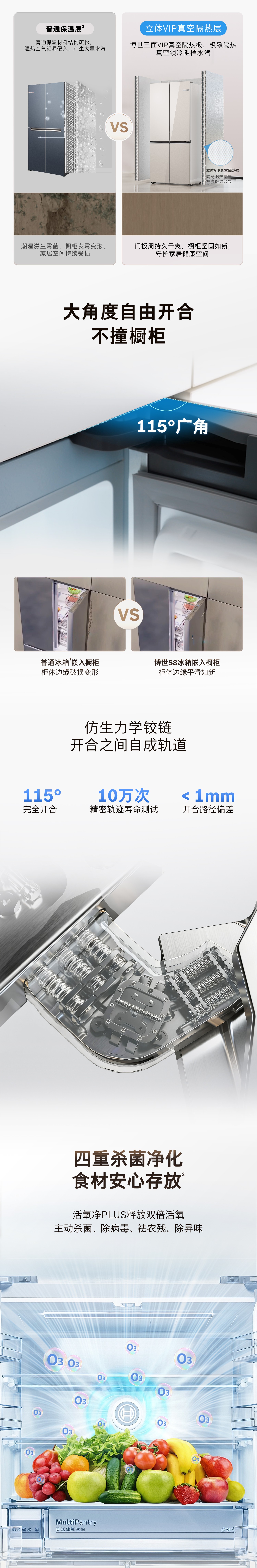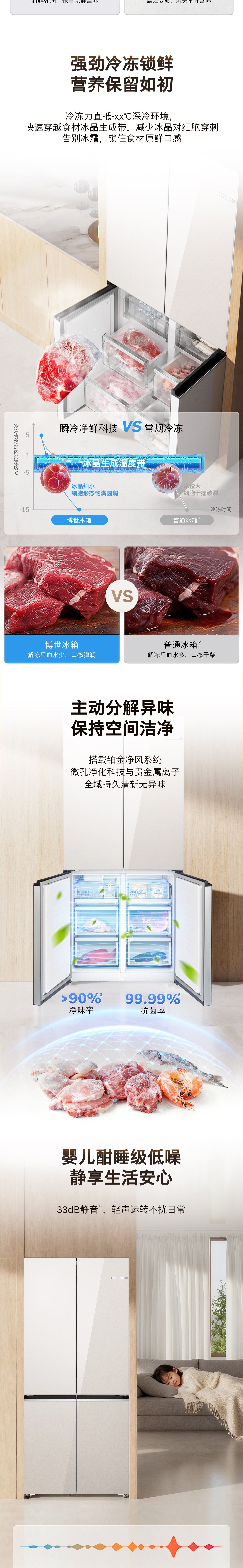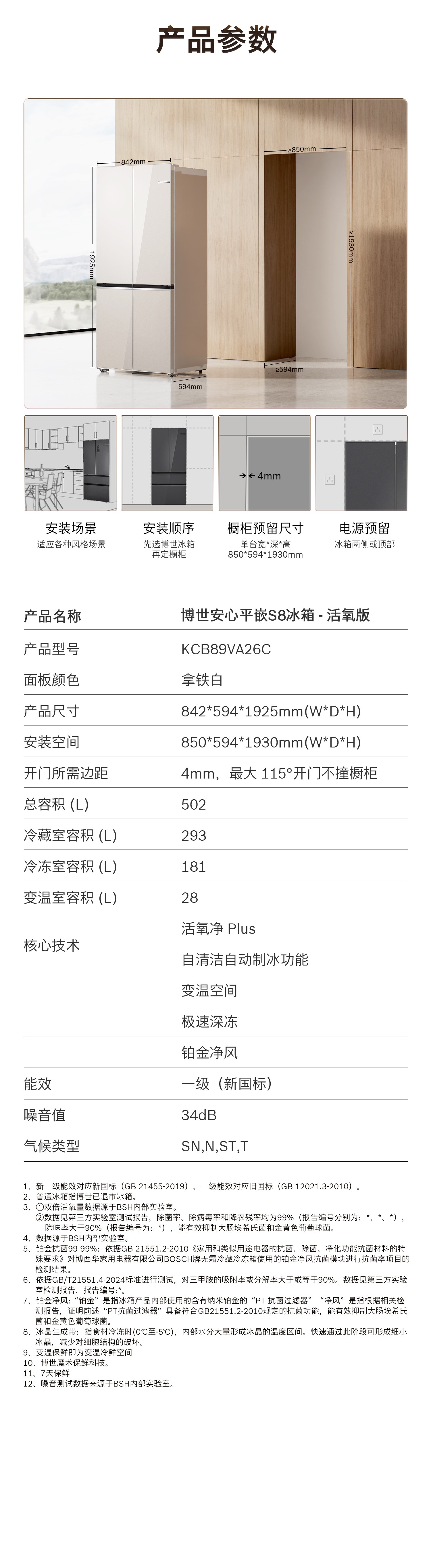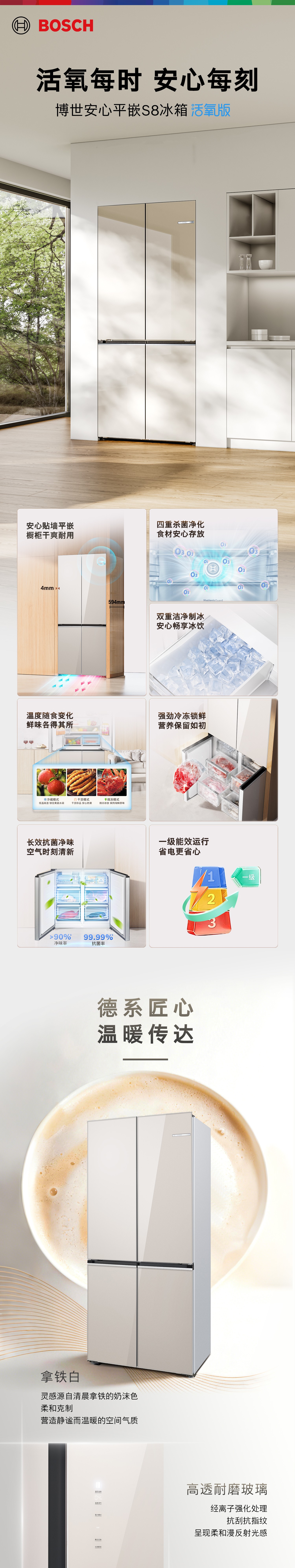 博世(BOSCH)502L十字对活氧PIus冰箱 活氧洁净自动制冰 智能防冷凝水系统 超薄平嵌 KCB89VA26C 拿铁白玻璃面板
