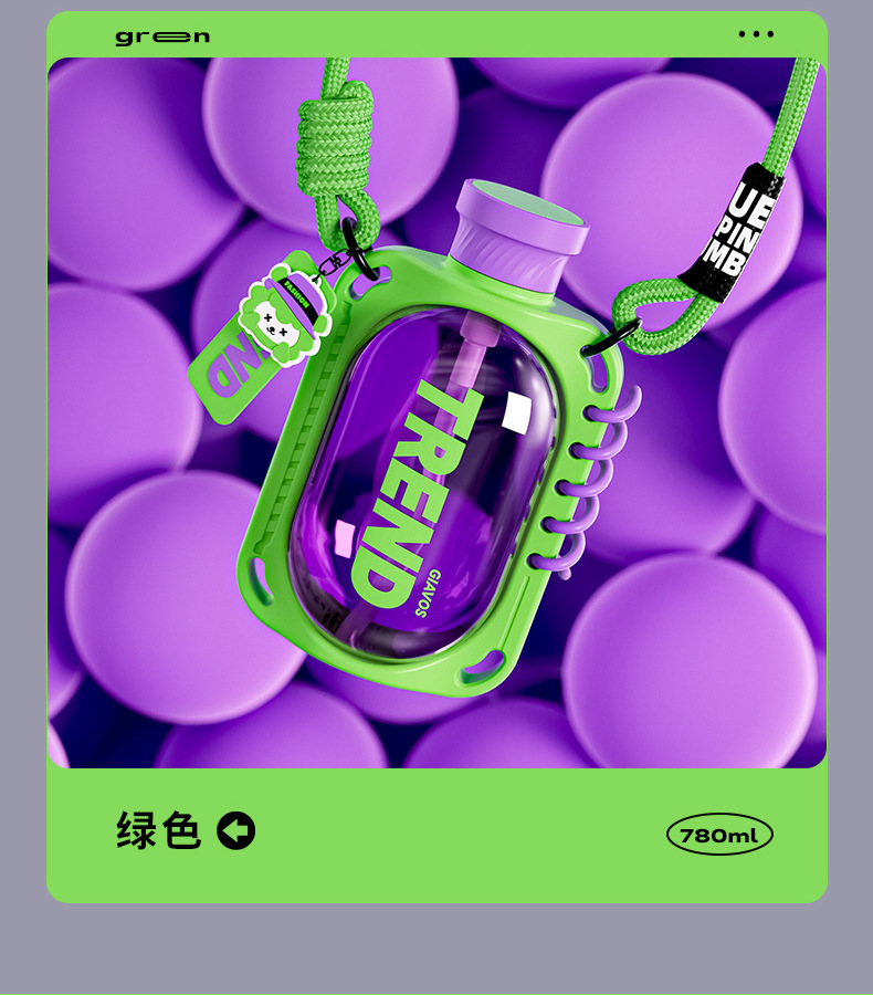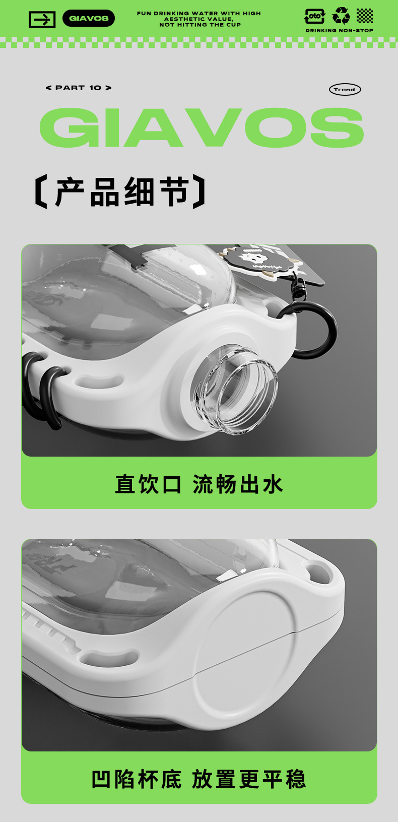 【乐伴随行,运动新姿态~】GIAVOS简约双饮吸管杯 创意户外水杯 成人大容量塑料杯 食品级杯子780ml大容量-QQ