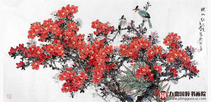 杨秀泽《映山红》68*138cm 花鸟横幅作品 书房/卧室挂画