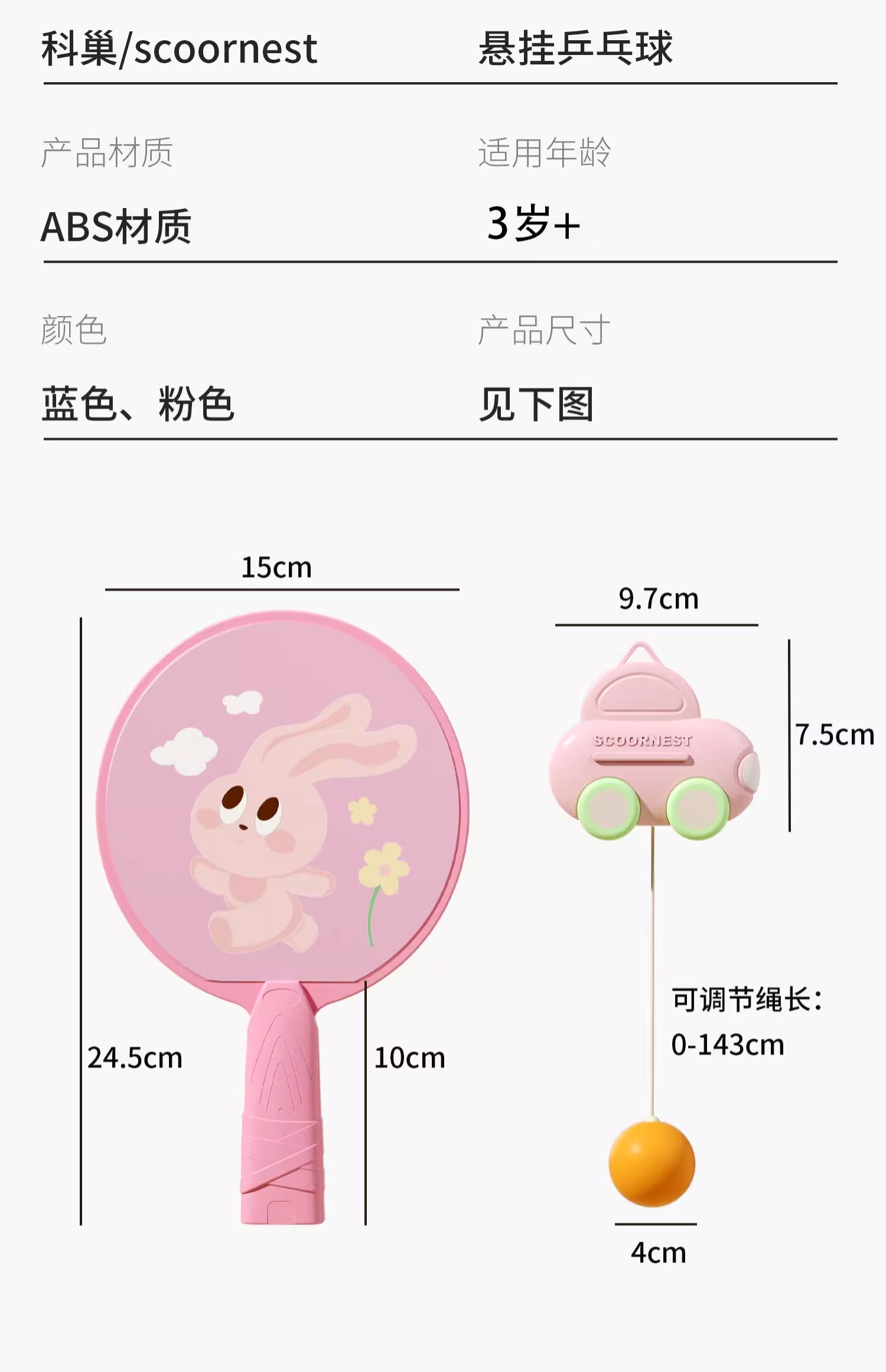 科巢悬挂式乒乓球儿童训练器亲子互动室内手眼协调锻炼球拍类益智玩具