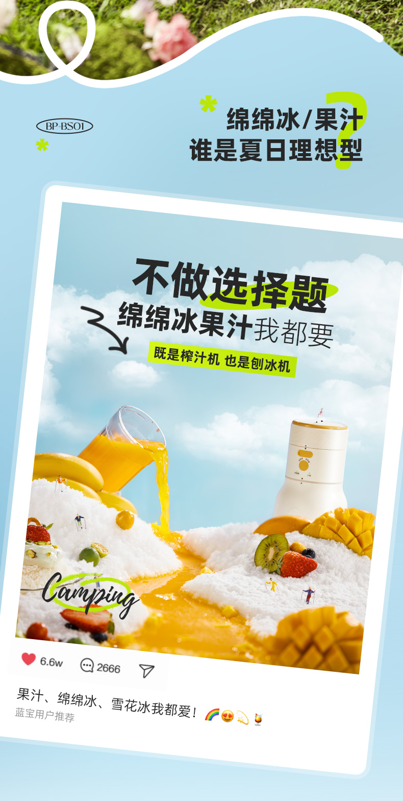 蓝宝绵绵冰机榨汁机二合一刨冰机BP-BS01