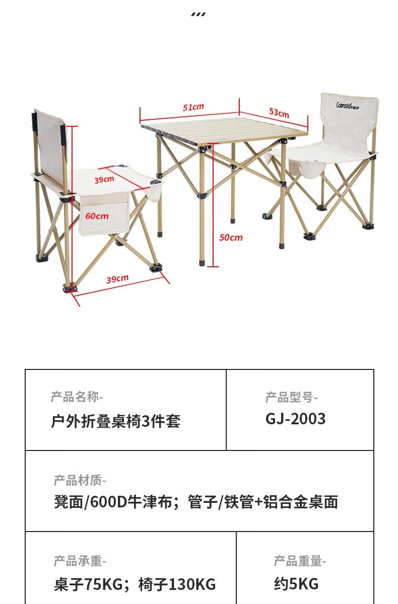 车管家户外折叠桌椅三件套型号:GJ-2003