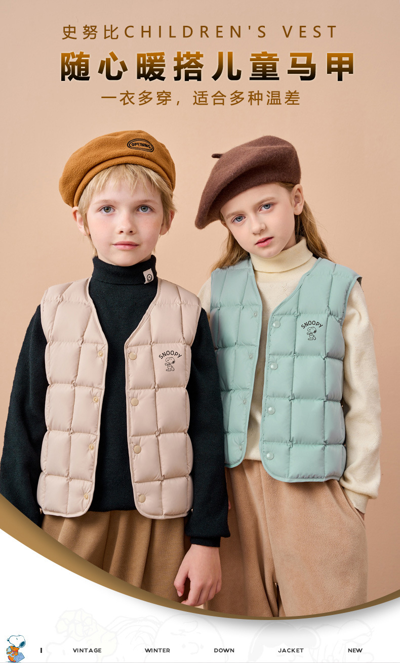 【萌娃必备!温暖秋冬】史努比儿童马甲,百搭保温必备;男女童,秋冬季;简约好穿,柔软舒适;颜色丰富,搭配多样。别让宝宝露肉啦!