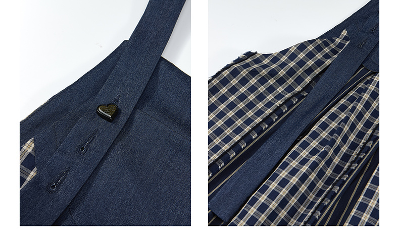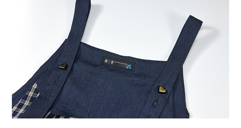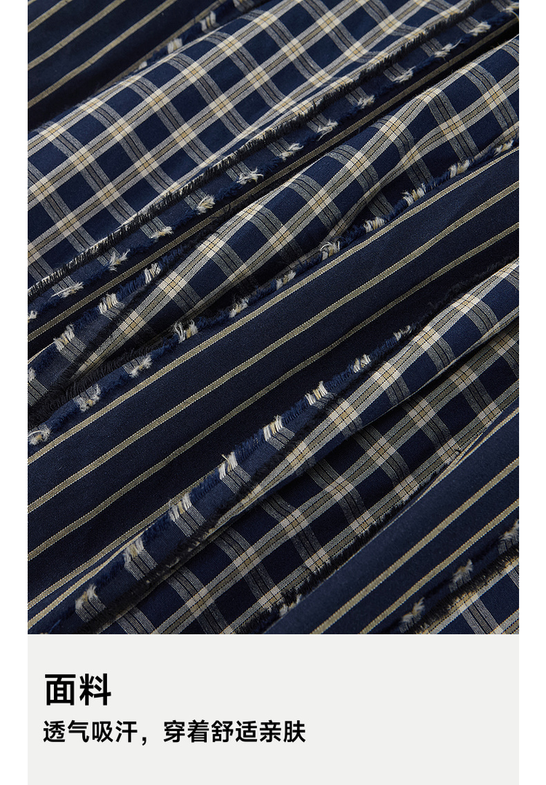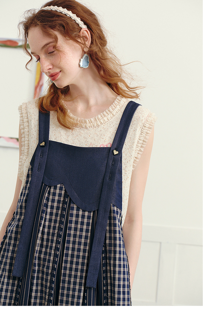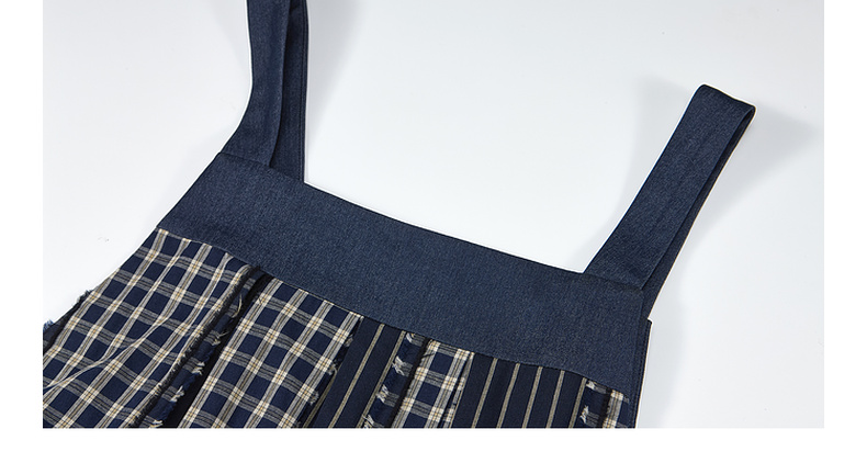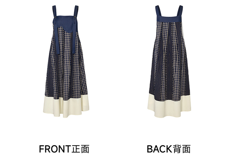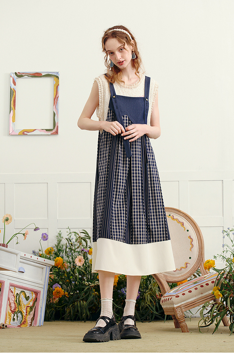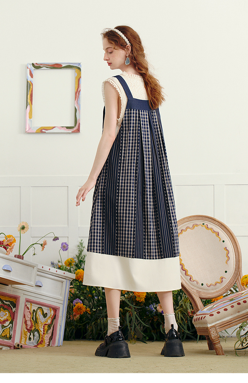 两三事 叠峦山旅 2025夏季新款森女风格子拼接背带裙宽松连衣裙