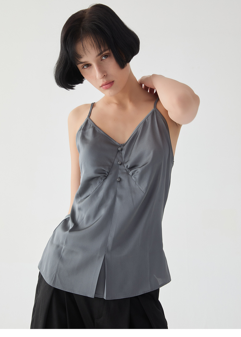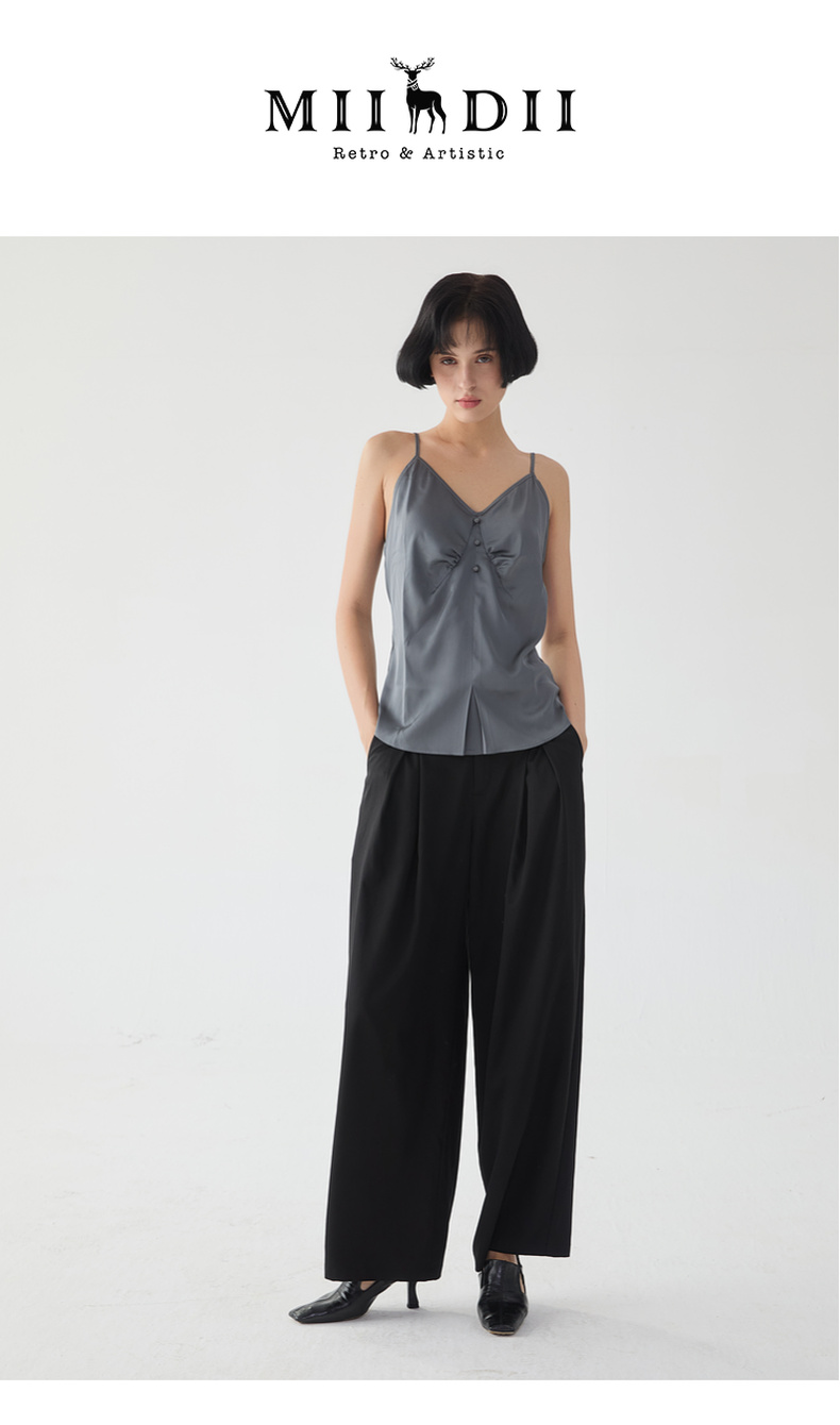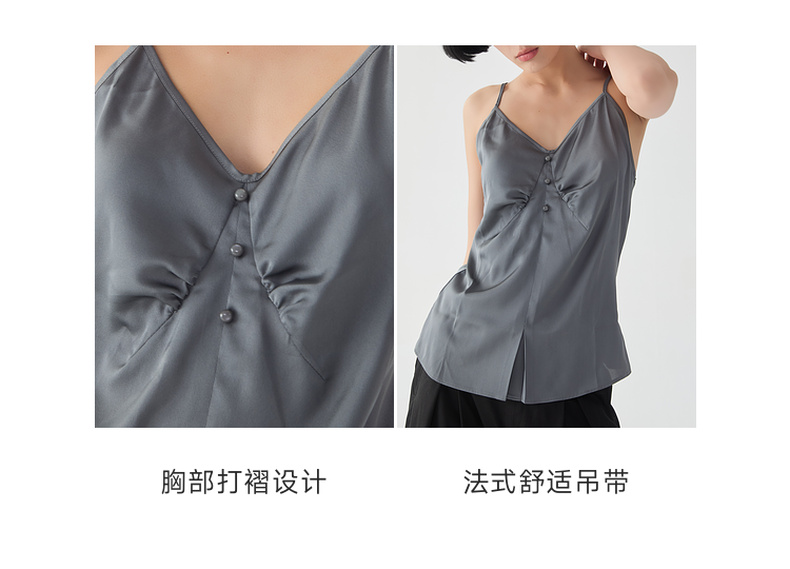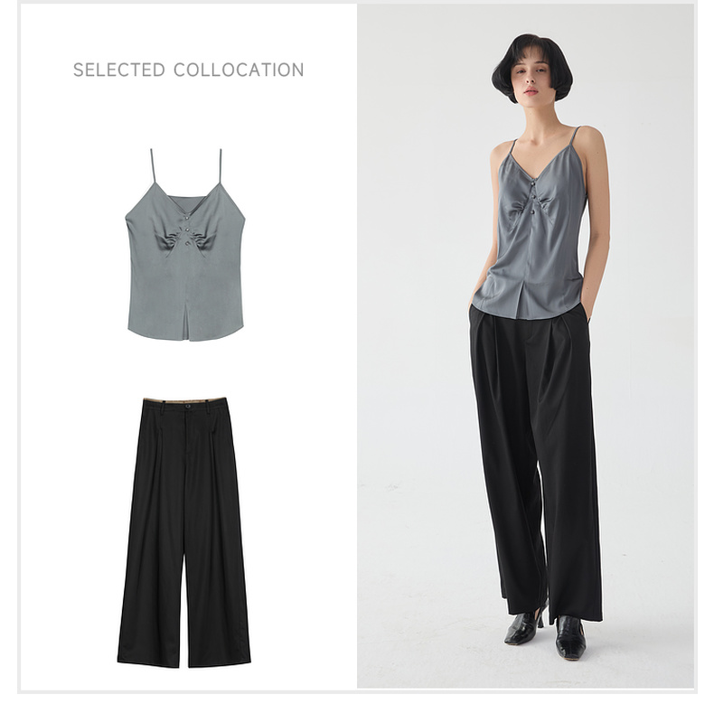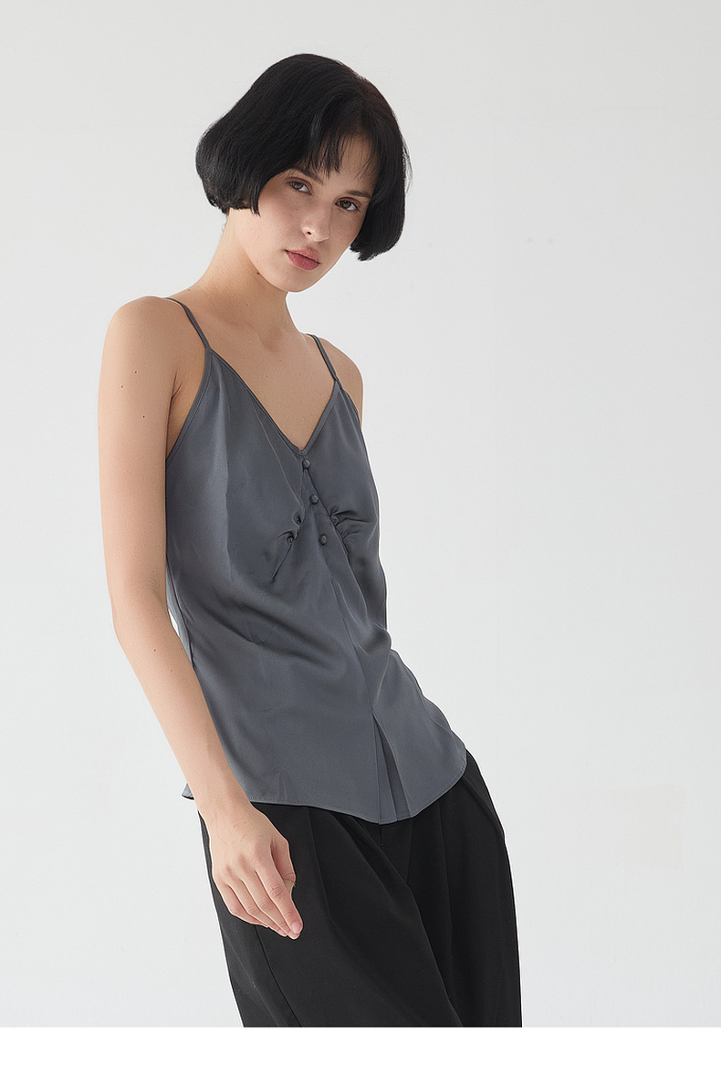 谜底吊带上衣女士2025春季新款V领百搭纽扣装饰无袖上衣255MN3002