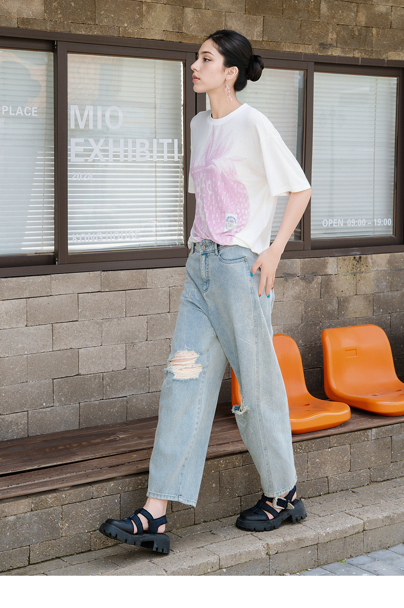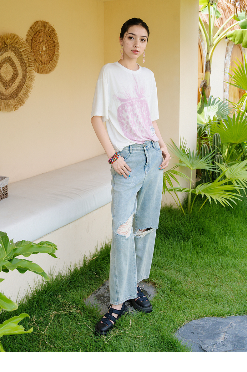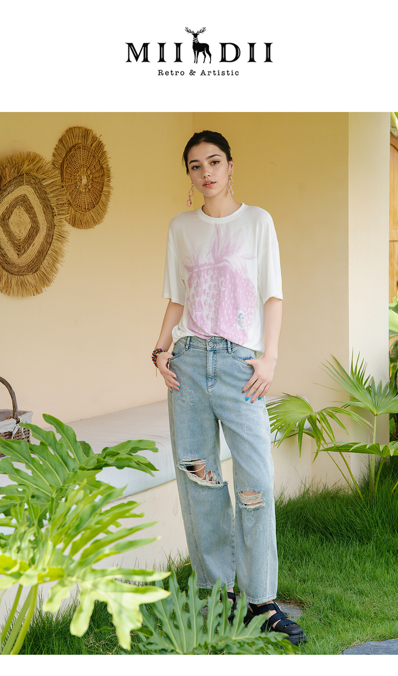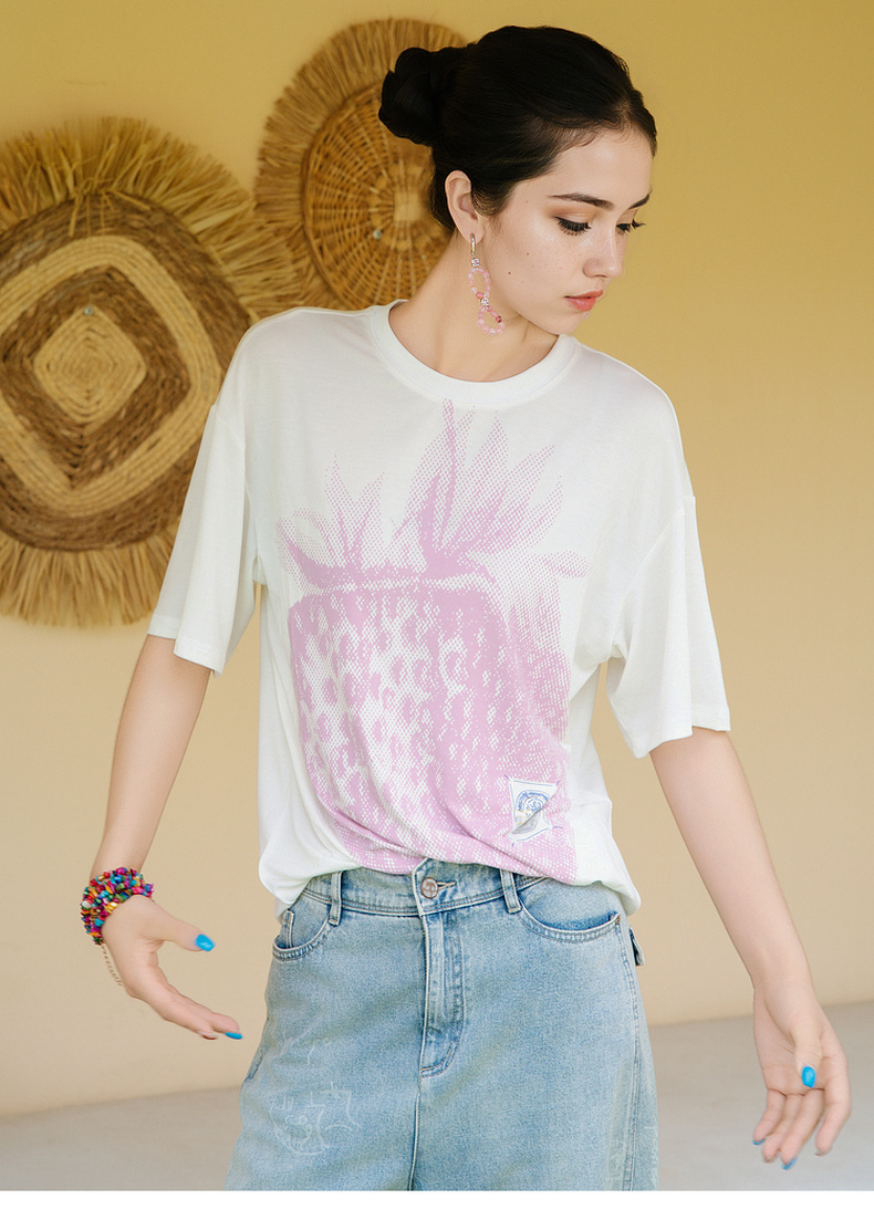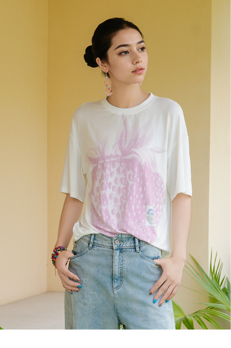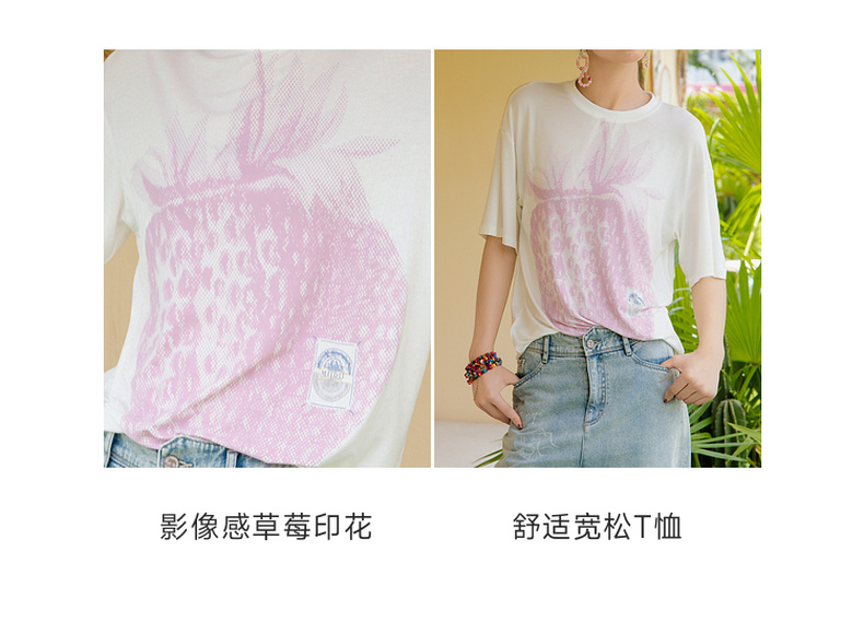 谜底印花T恤短袖女2025夏季新款休闲百搭宽松圆领上衣257MT7787
