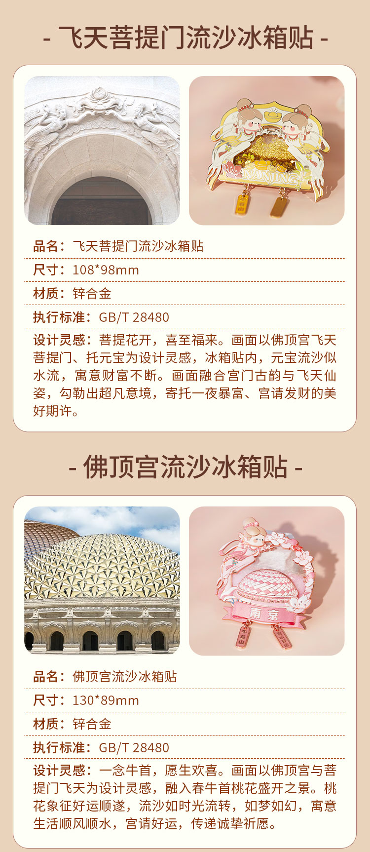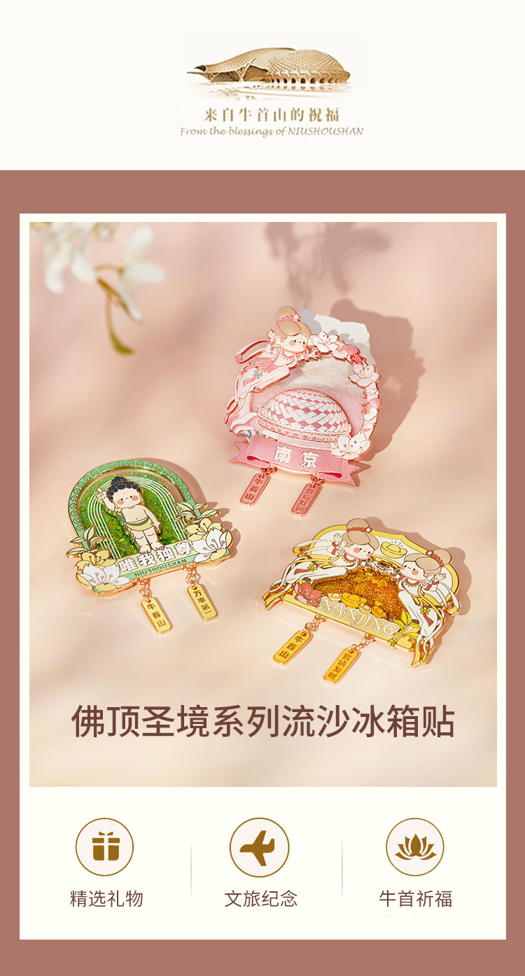 牛首山文创佛顶圣境流沙冰箱贴金属磁吸南京冰箱贴纪念品伴手礼