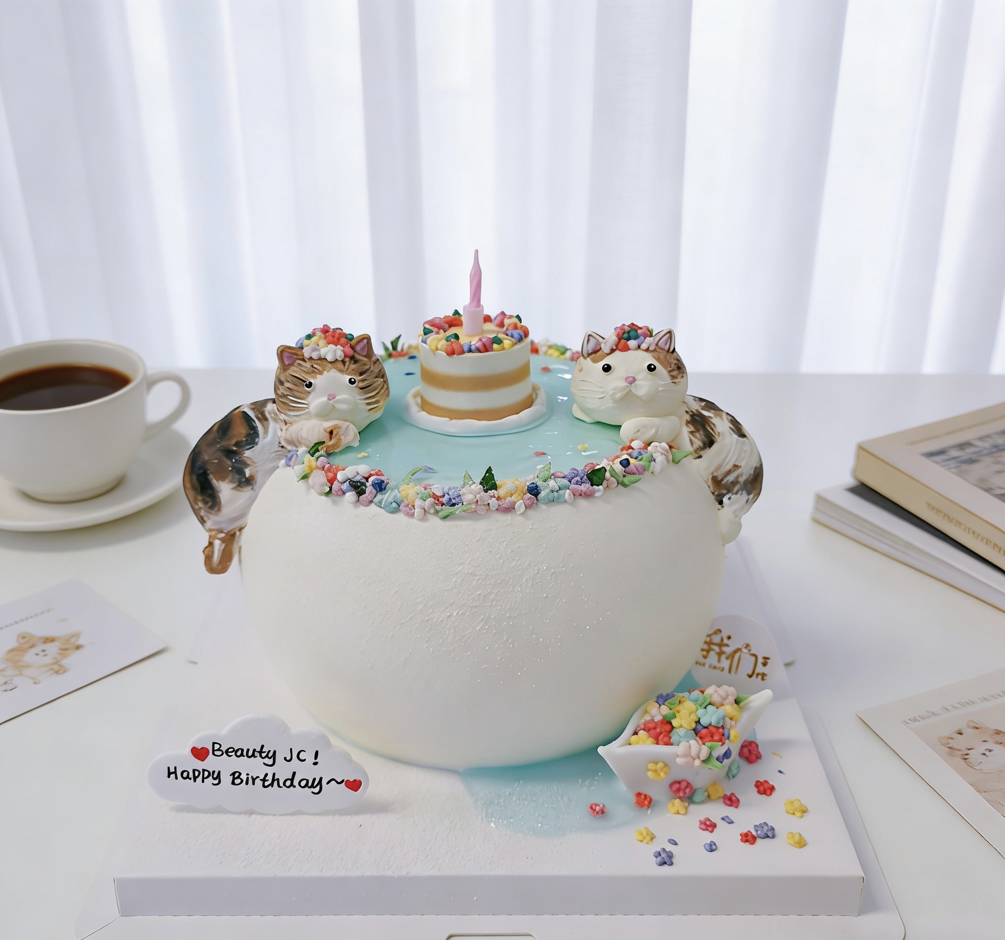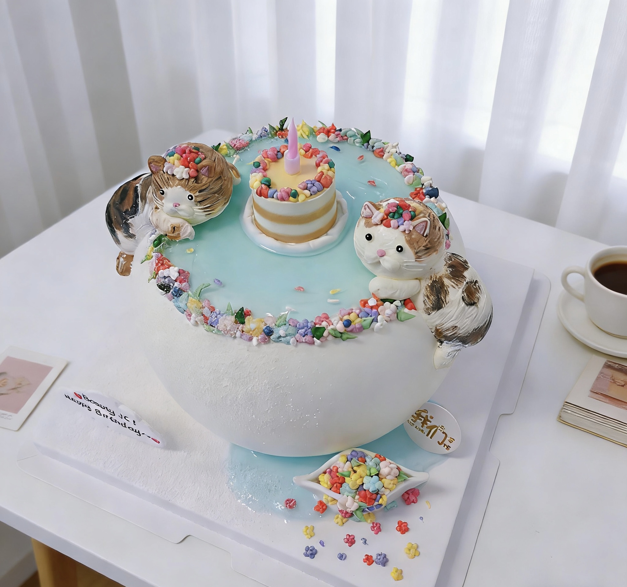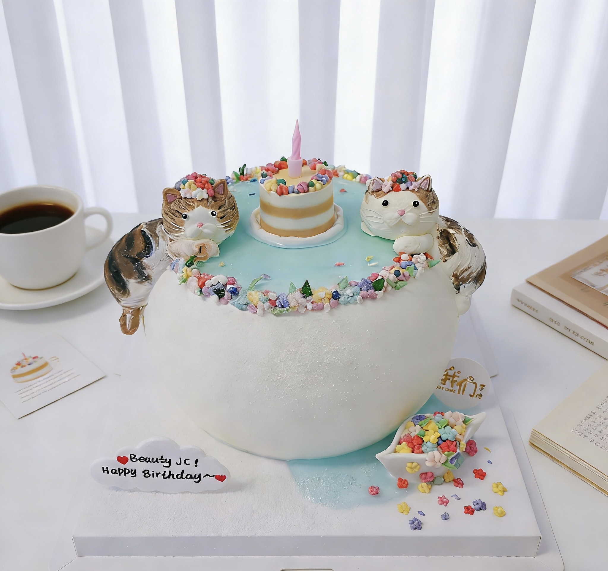 喵星人许愿池卡通蛋糕-低糖处理无添加