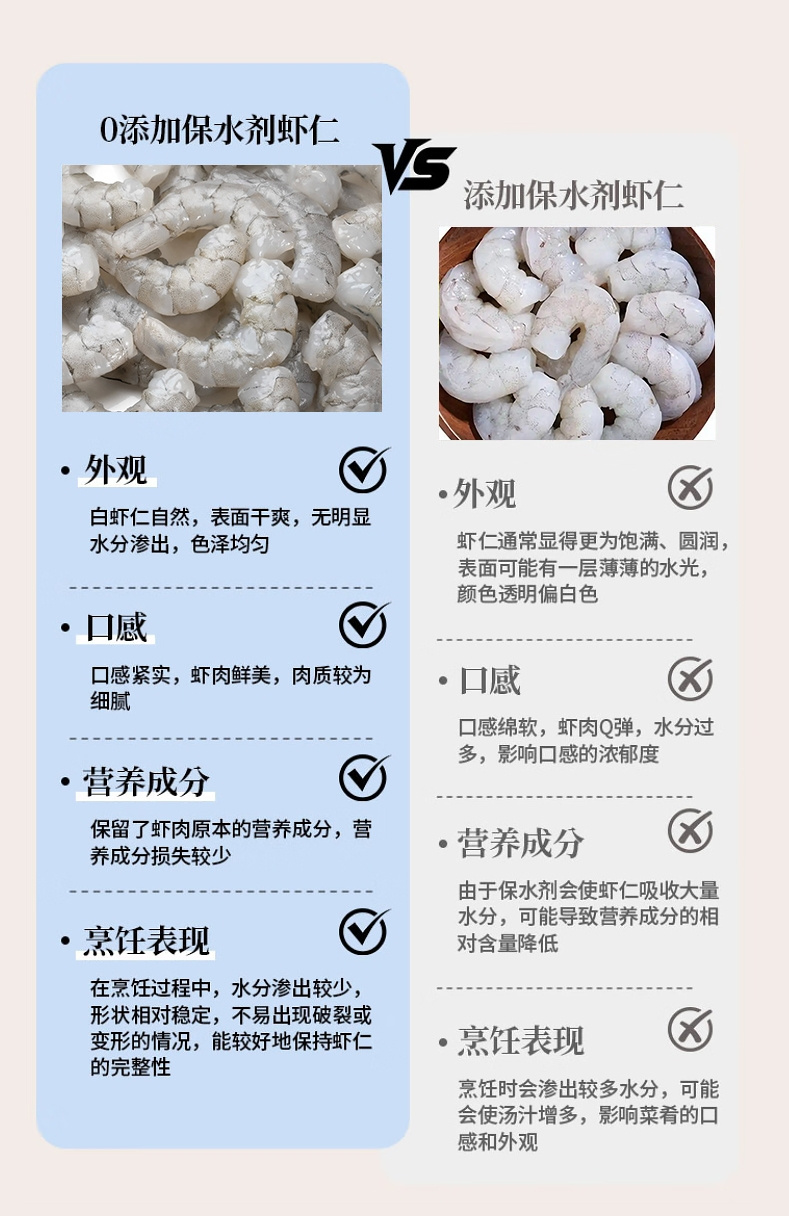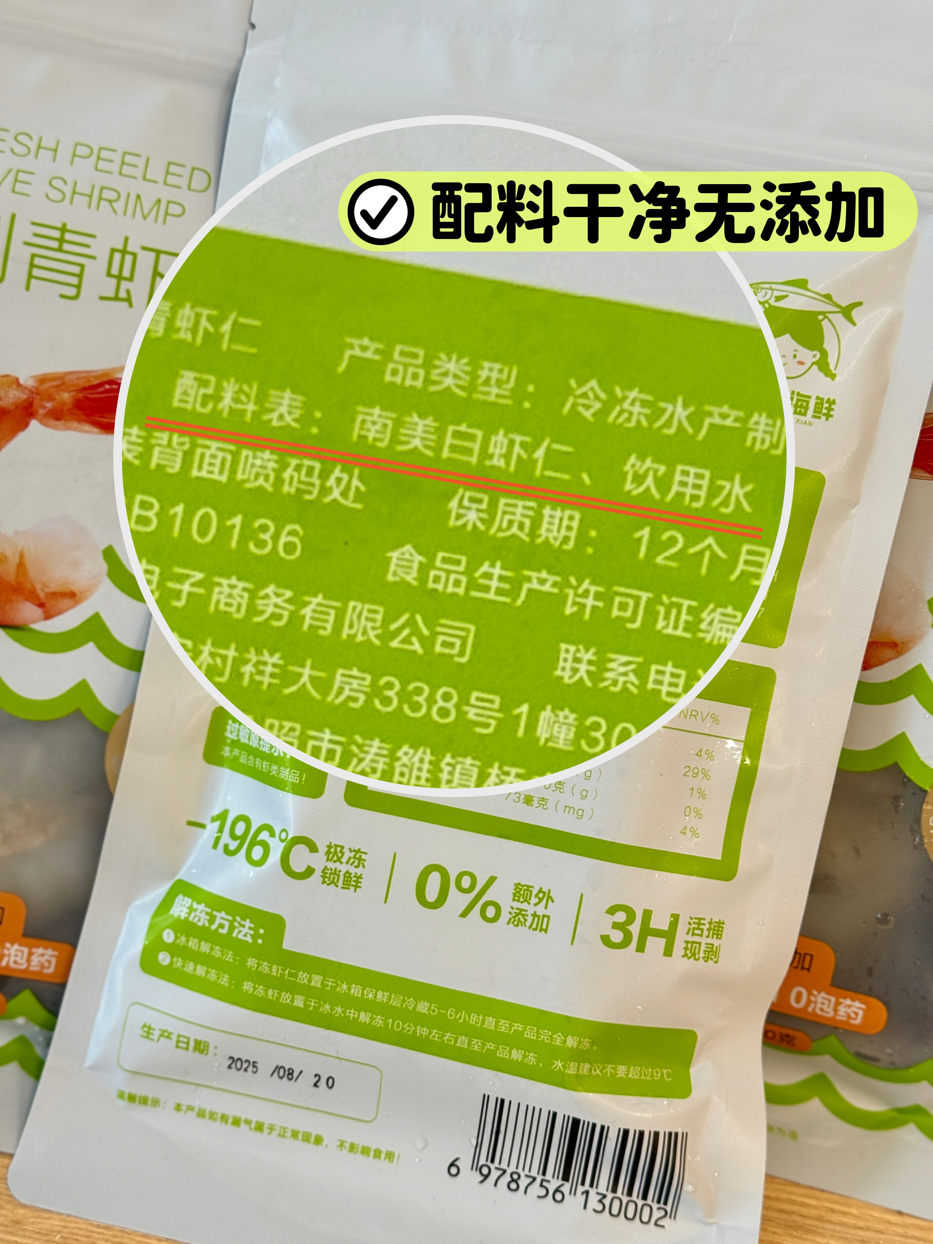 1、0添加不泡药:配料表干干净净,只有虾和水,不泡药、不泡水、不含防腐剂、添加剂,拒绝‘科技与狠活’,老人、小孩、孕妈妈可以放心去吃;