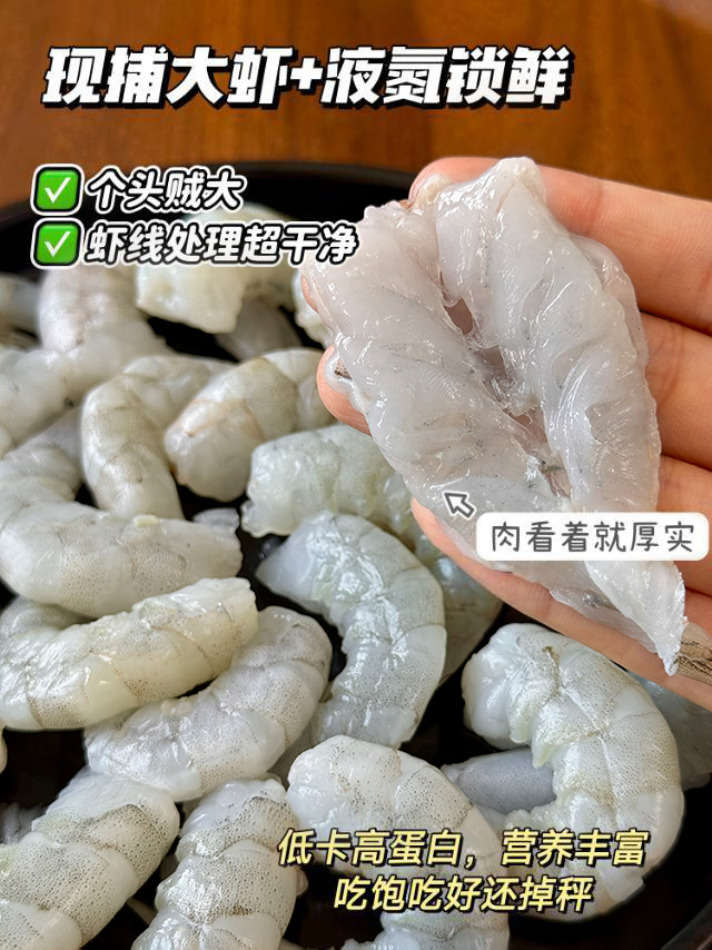4、解冻不缩水;解冻不掉秤,烹饪不缩水,真材实料,肉质紧实饱满,能更好地保持鲜嫩口感,吃虾一步到位 。