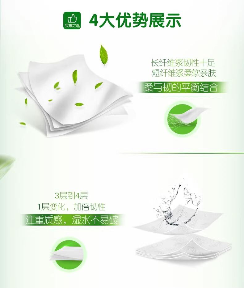 【自营】 清风 原木金装4层卷筒卫生纸125g/卷 10卷/提
