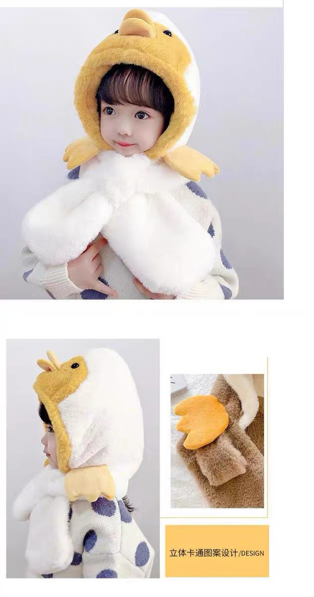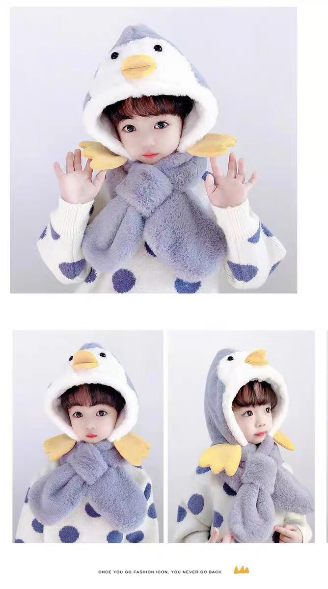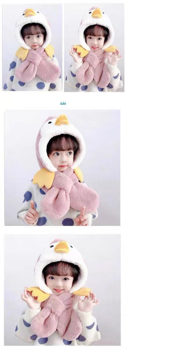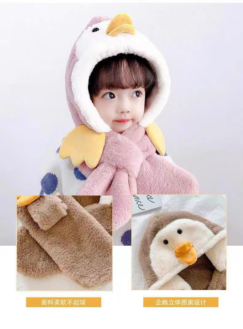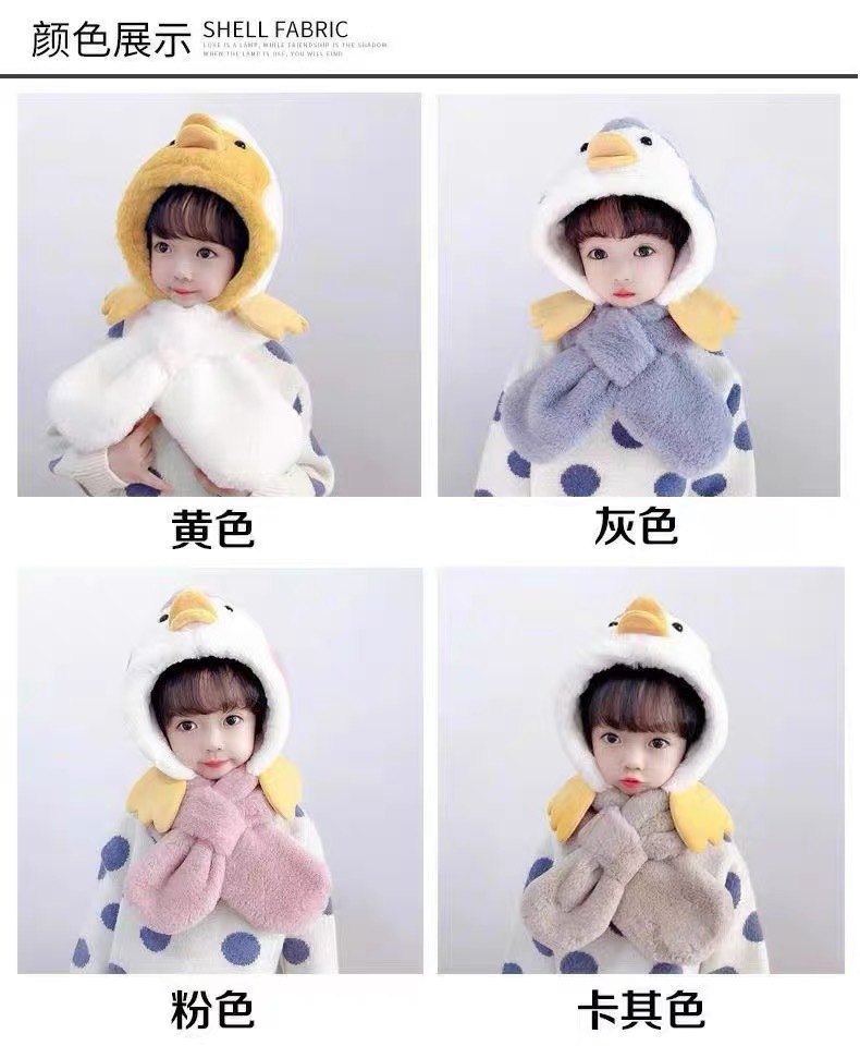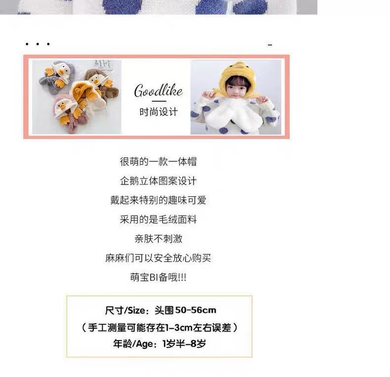 「数款可选!2合1两用帽」帽子围巾一体儿童宝宝秋冬款围脖加绒护耳帽可爱萌男童女童冬季配饰