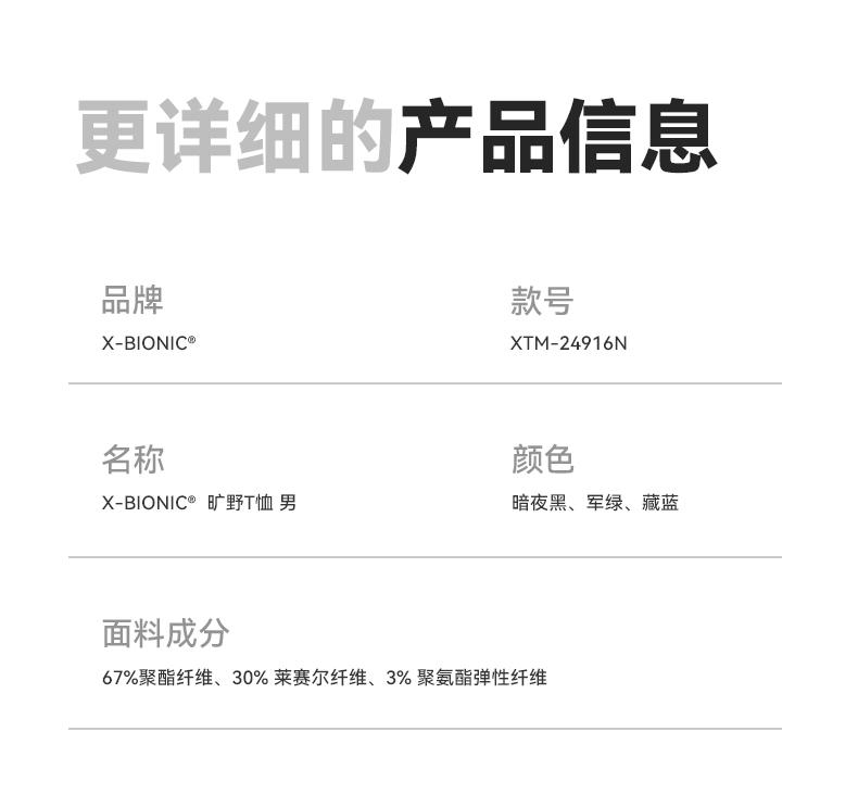 X-BIONIC 旷野T恤Polartec男士夏季短袖弹力舒适速干户外24916N