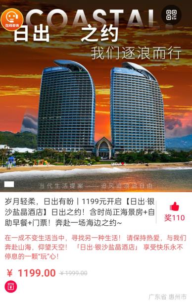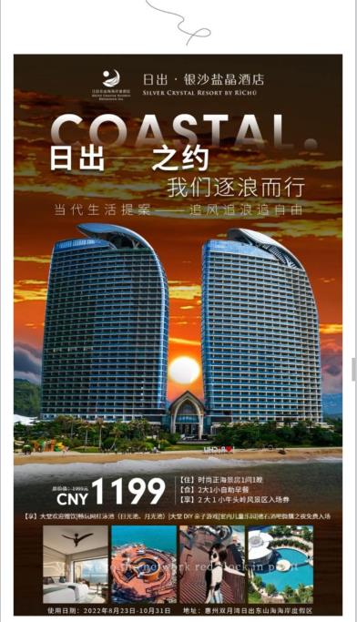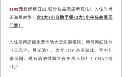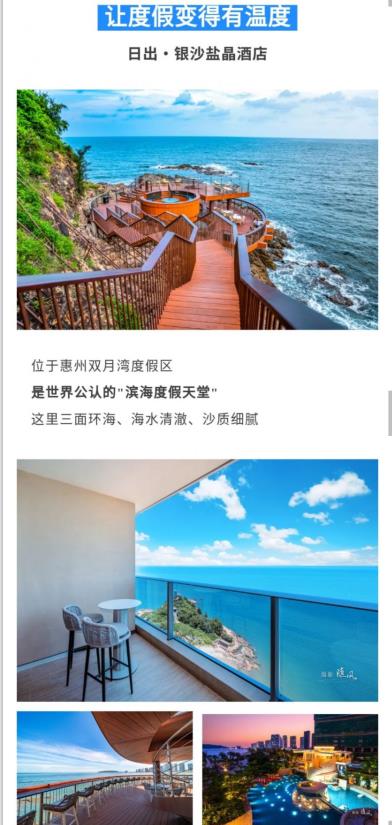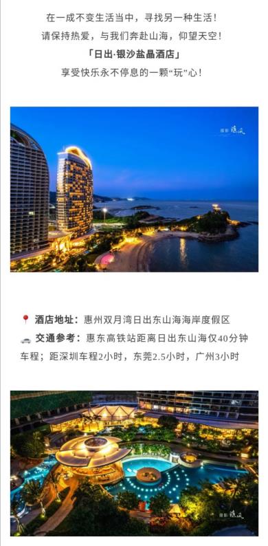 10月8-31日 惠州日出银沙盐晶酒店【时尚正海景房1间1晚+2大1小自助早餐】
