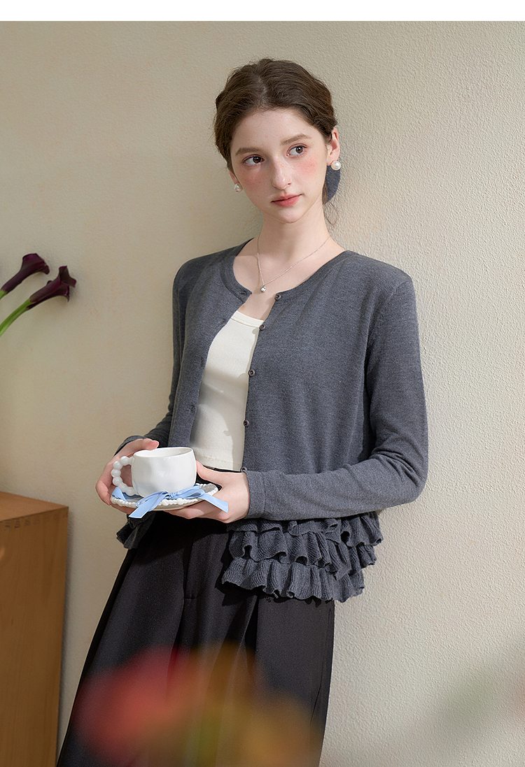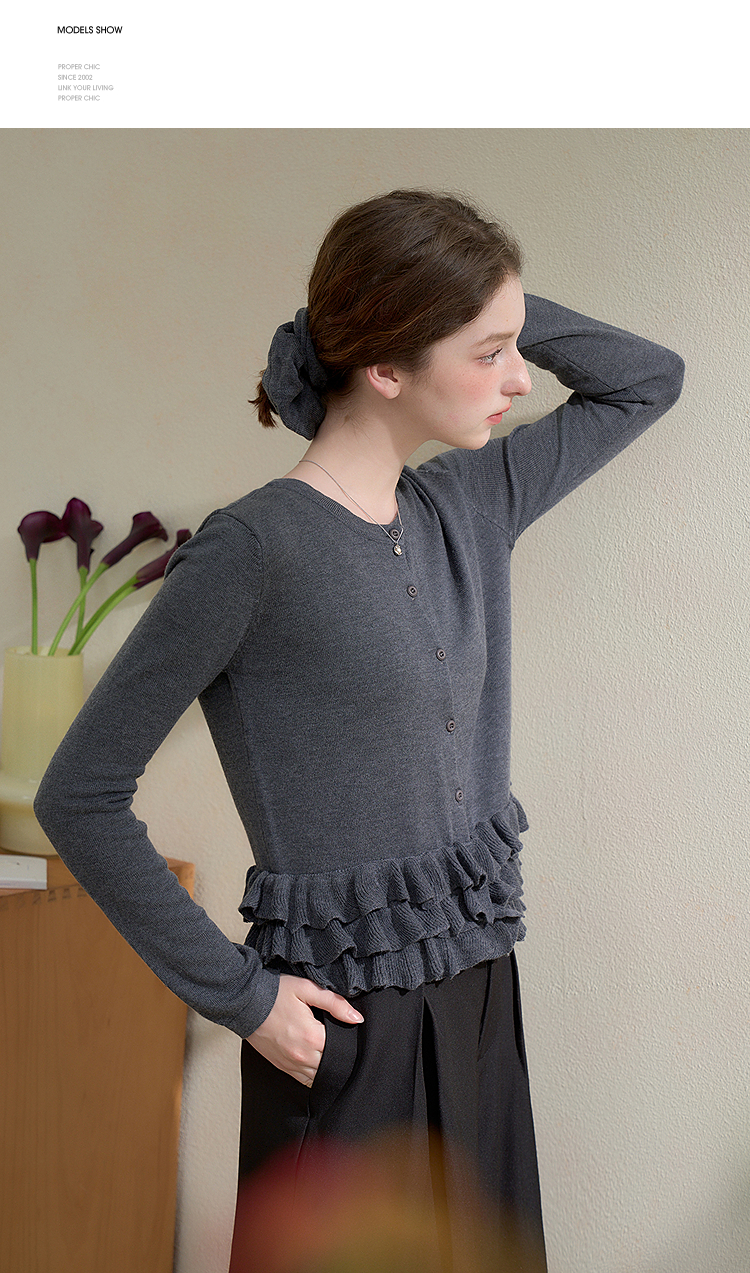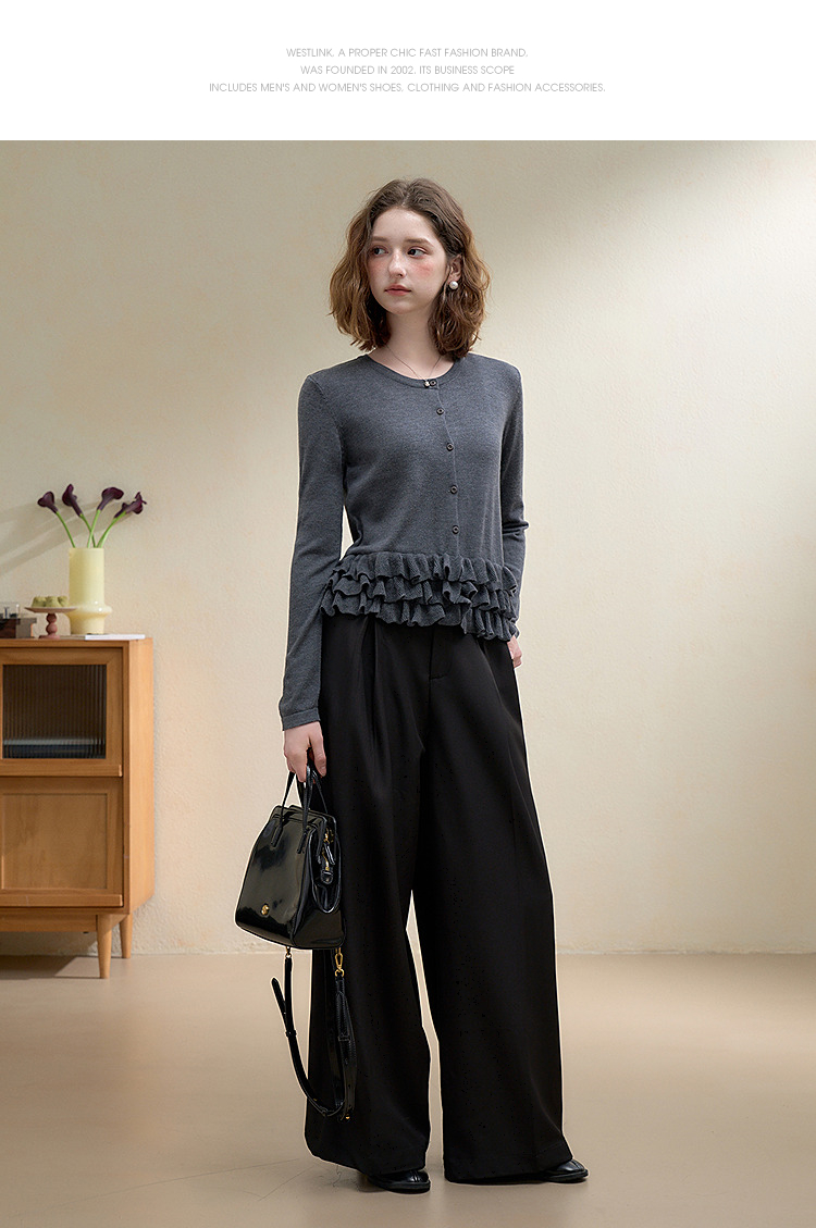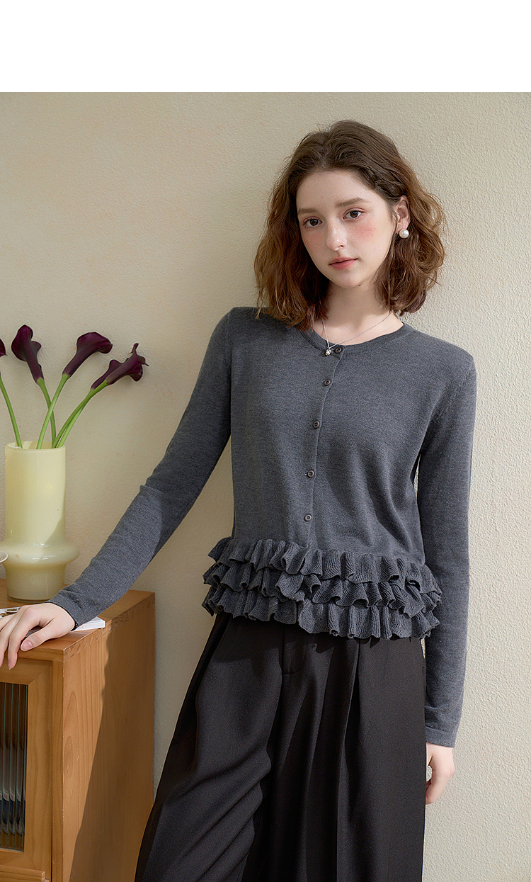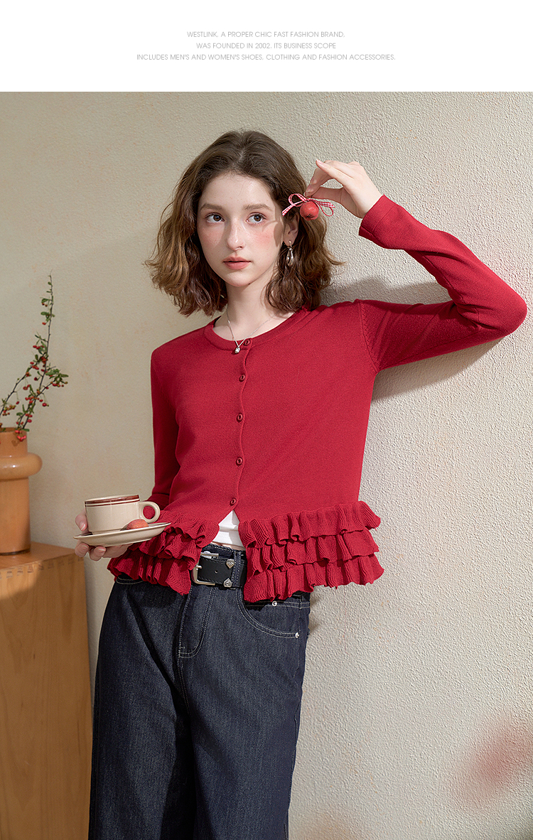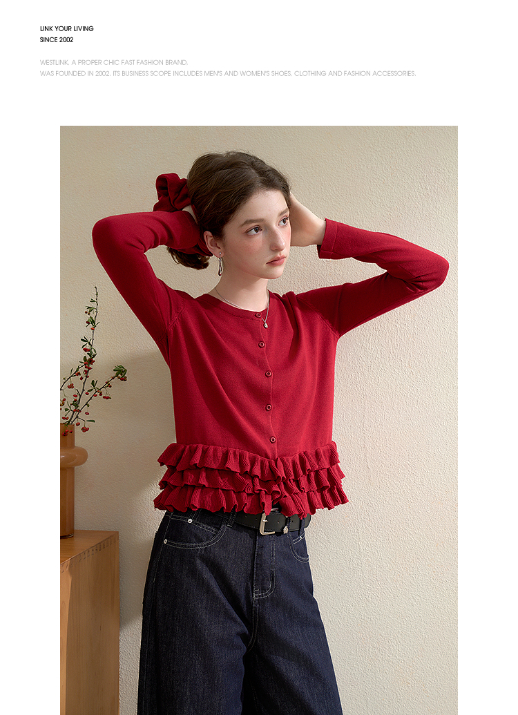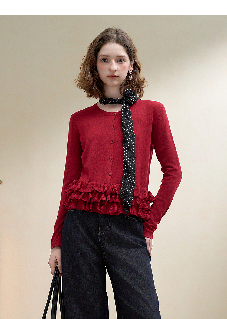 西遇韩系甜美木耳边圆领针织衫女秋季设计感百搭气质软糯毛衣H0051311