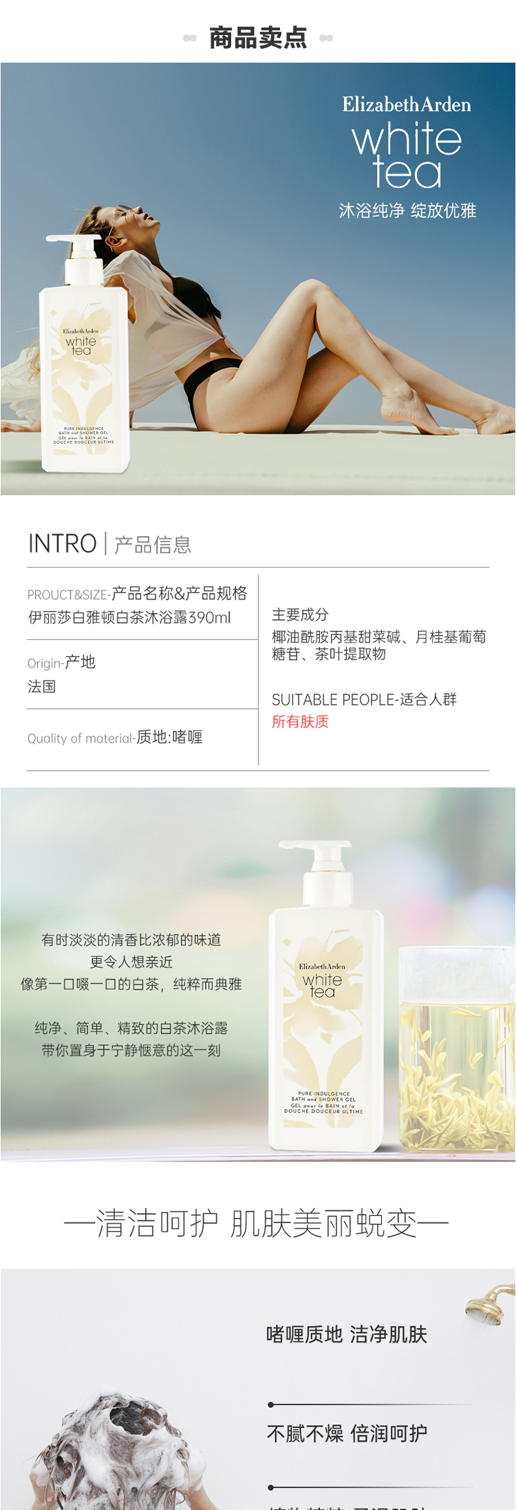 伊丽莎白雅顿白茶沐浴露390ml