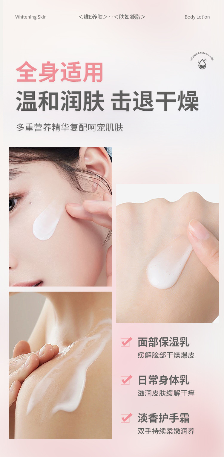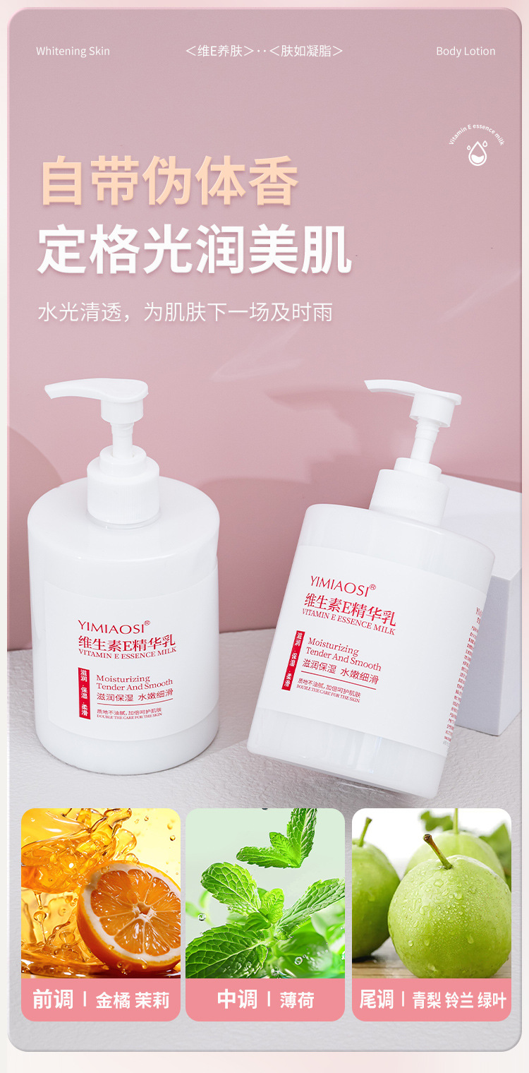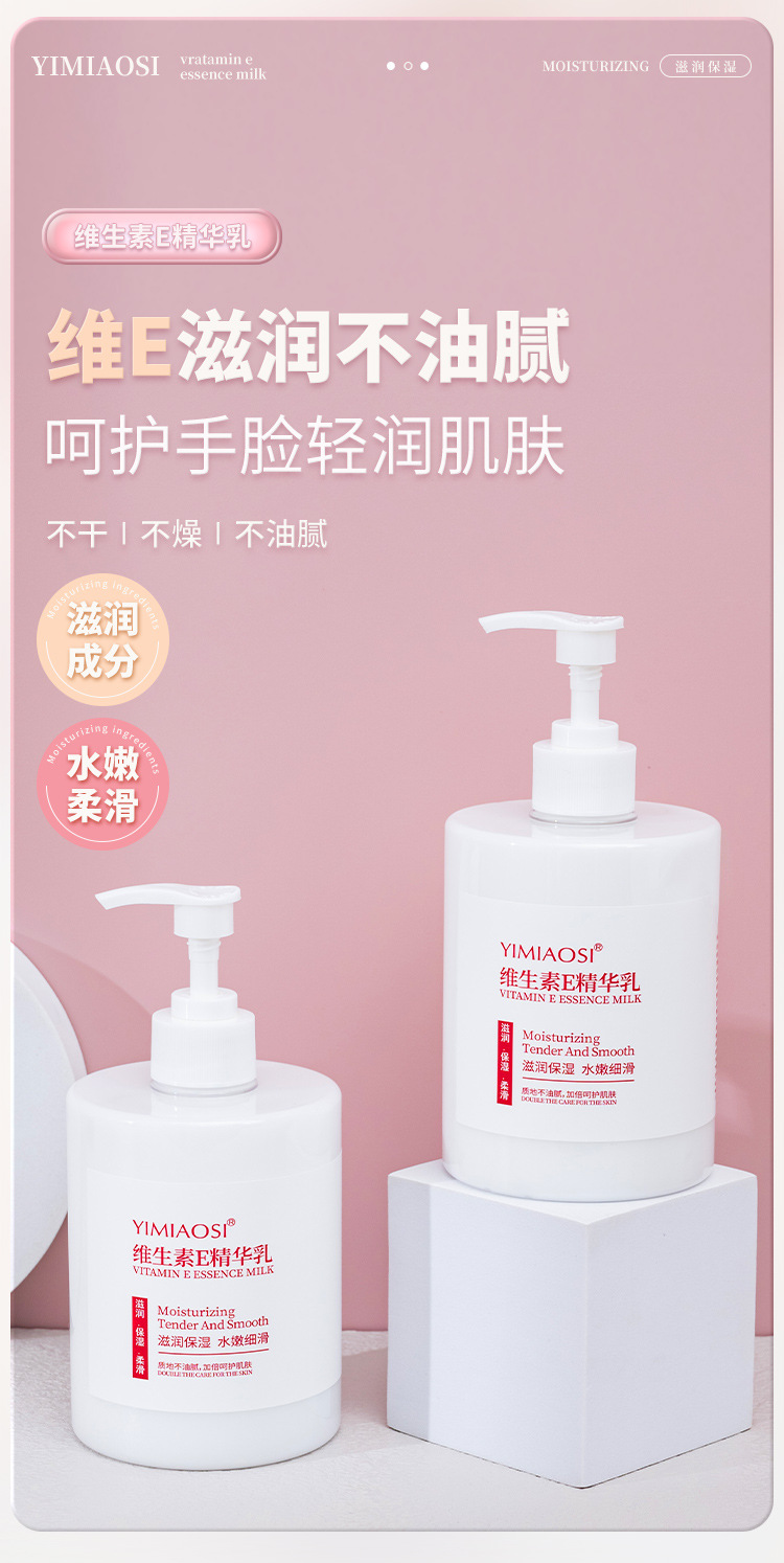 「500g大容量!呵护手脸」YIMIAOSI润肤乳维生素e乳500ml家庭装保湿滋润身体乳维E乳美容护肤