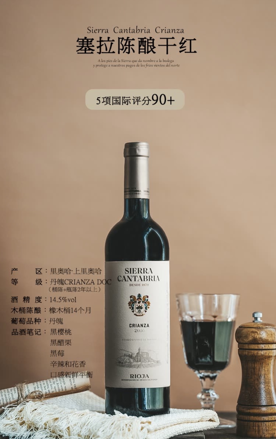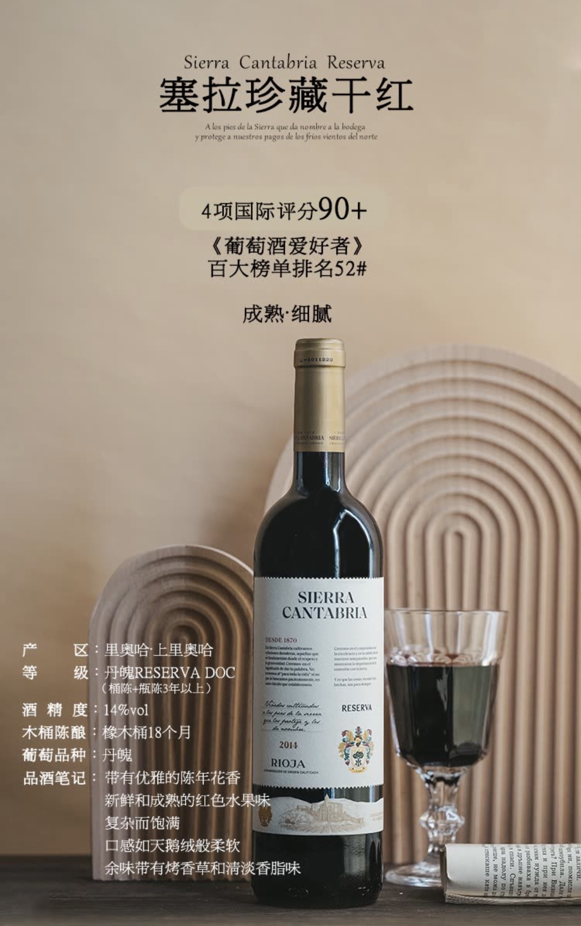 【桶藏26月五国际评分92+】上里奥哈 (Rioja Alta)西班牙 肆玖 塞拉 优选珍藏干红葡萄酒 750ML*6 环保纸箱装