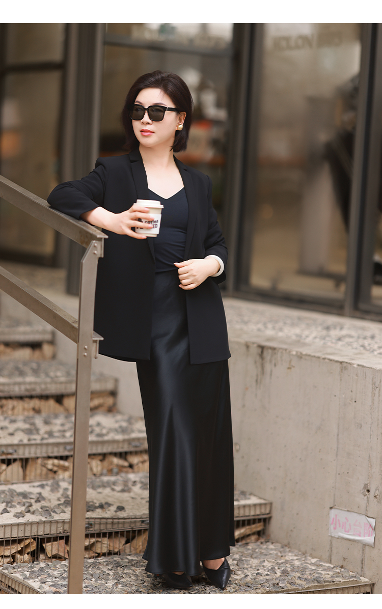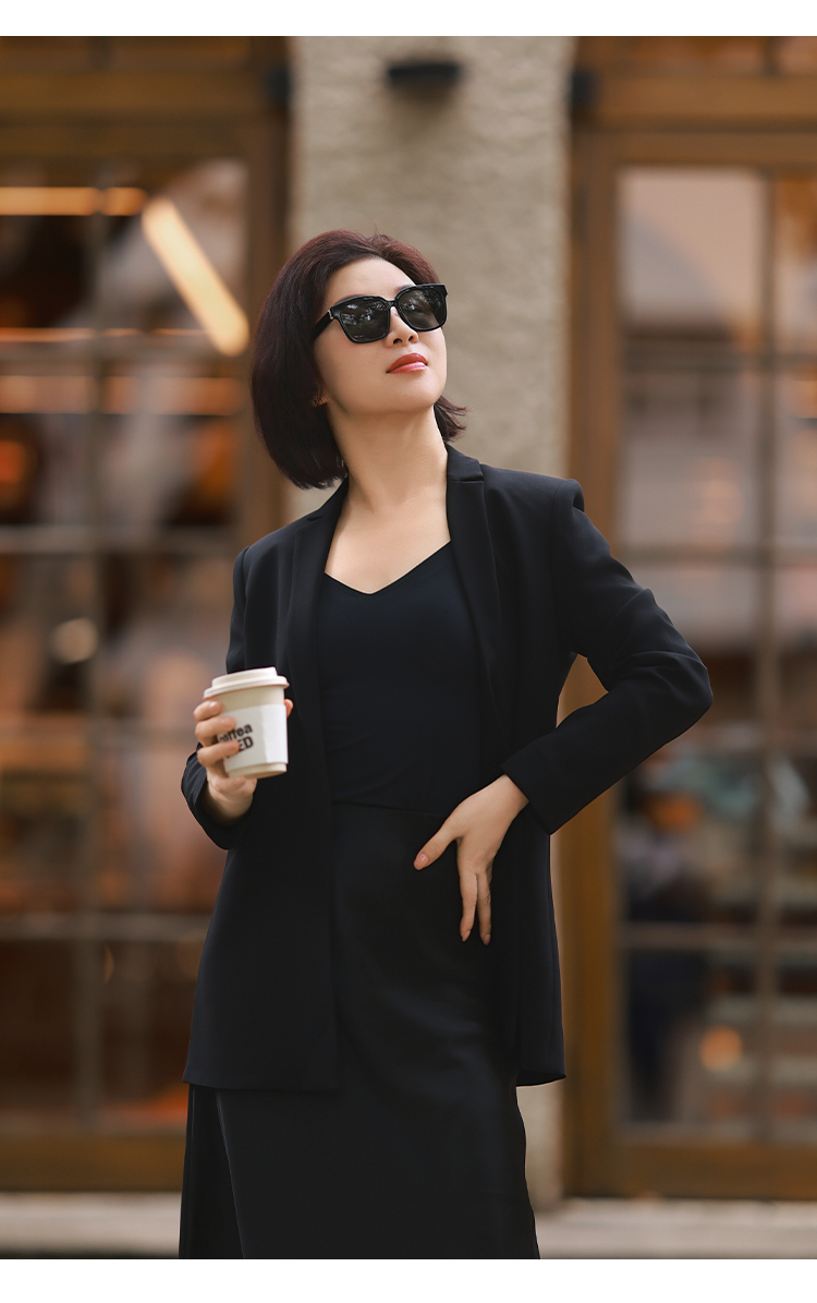 老钱风都市通勤宽松醋酸长袖西装外套8173