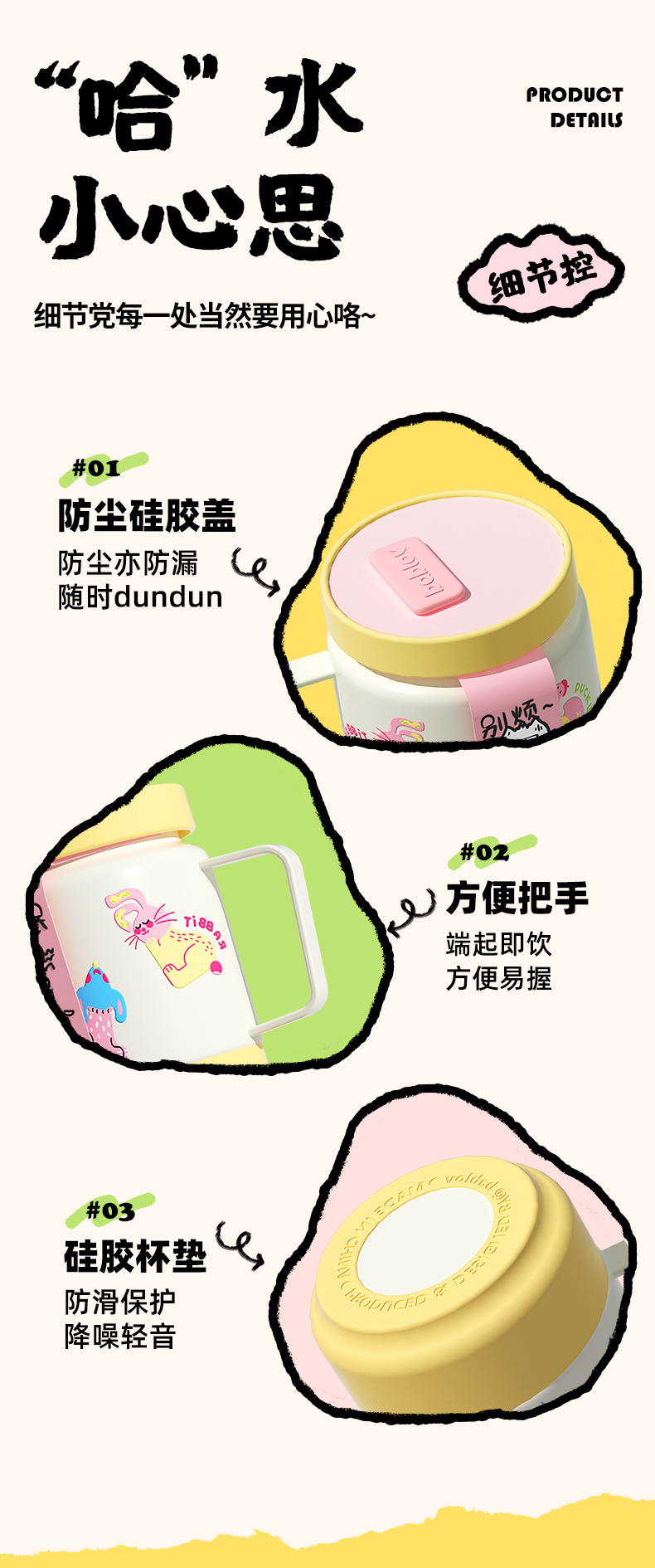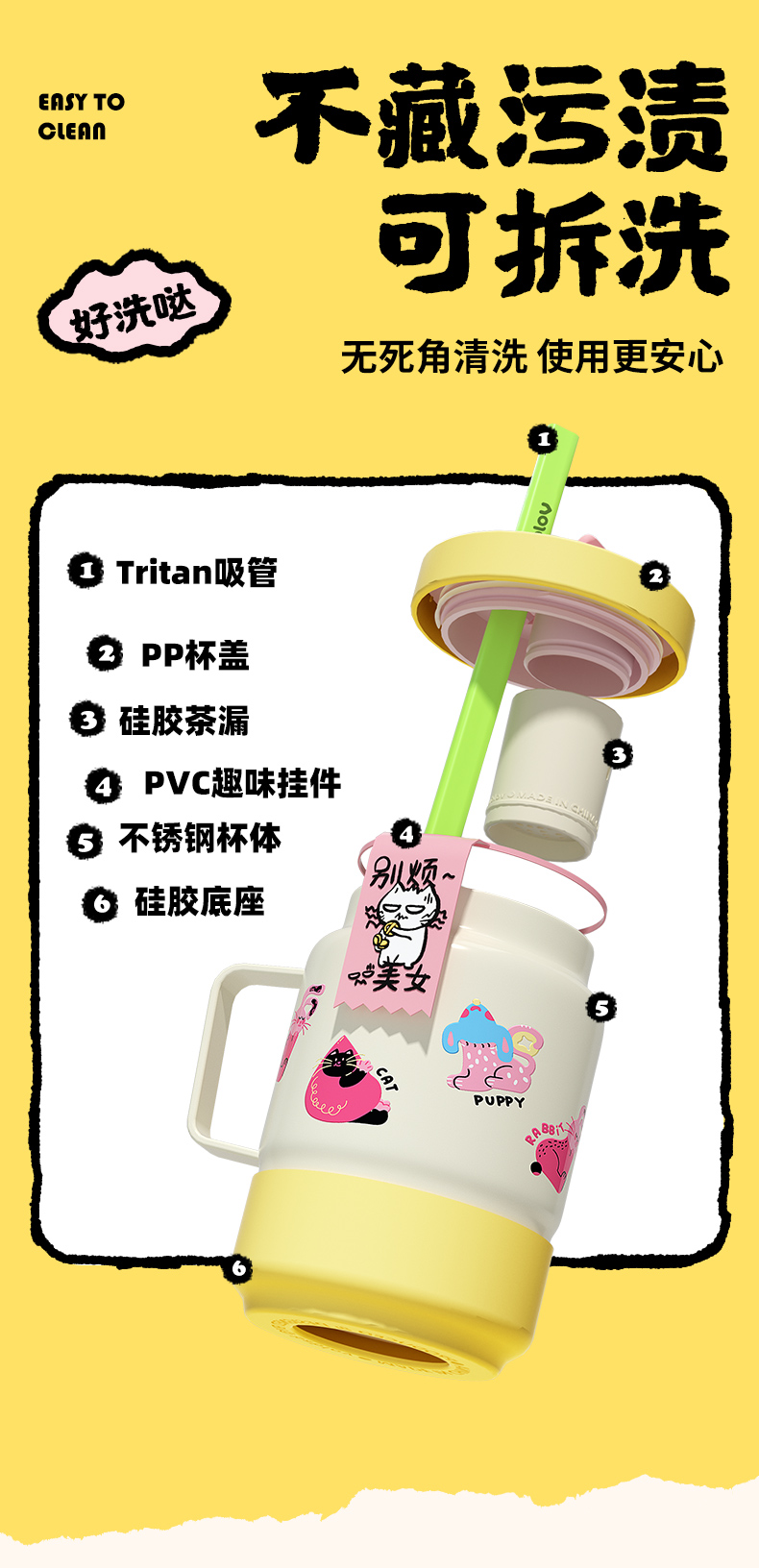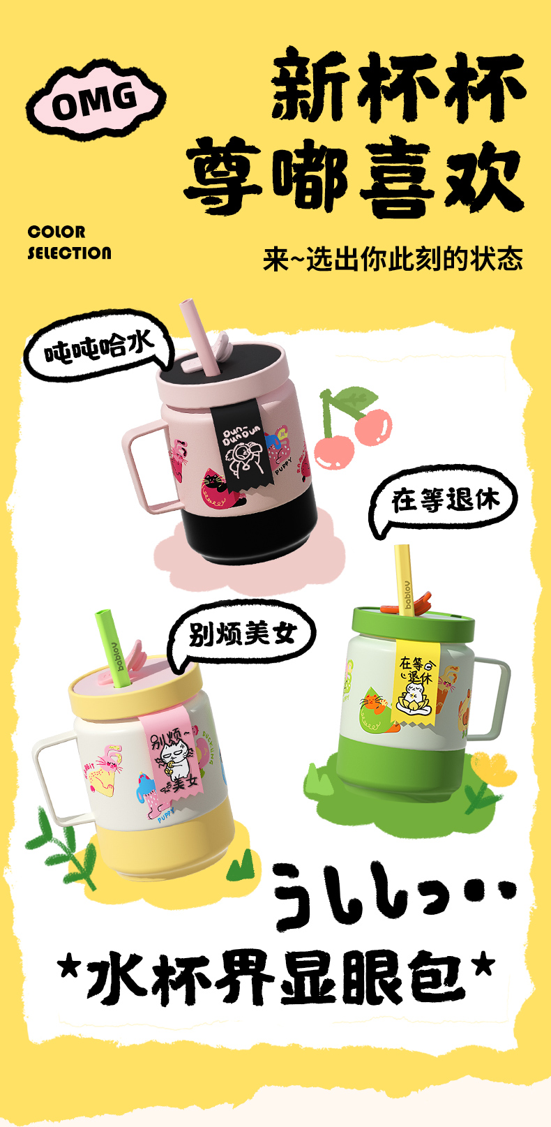 bablov保温杯女生高颜值大容量学生泡茶杯子不锈钢马克带吸管水杯