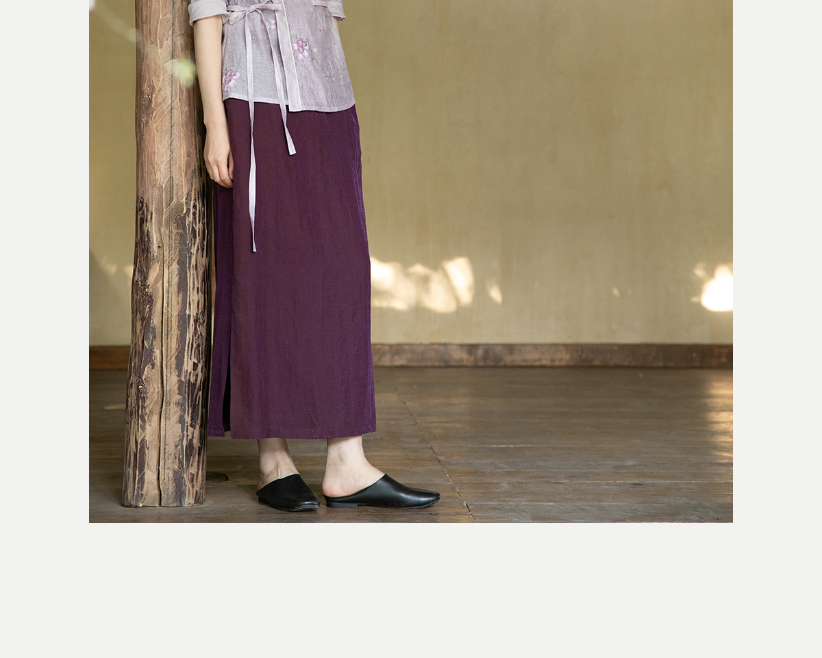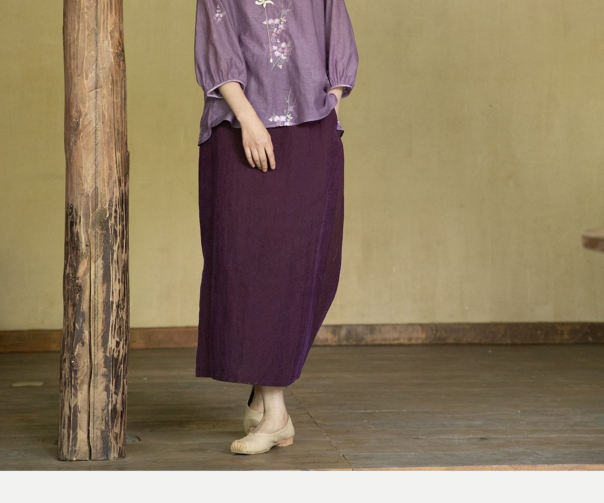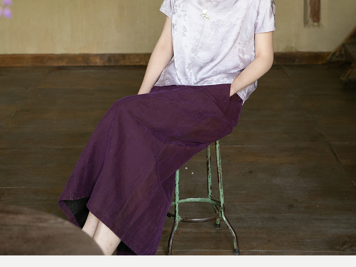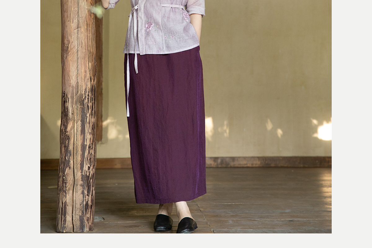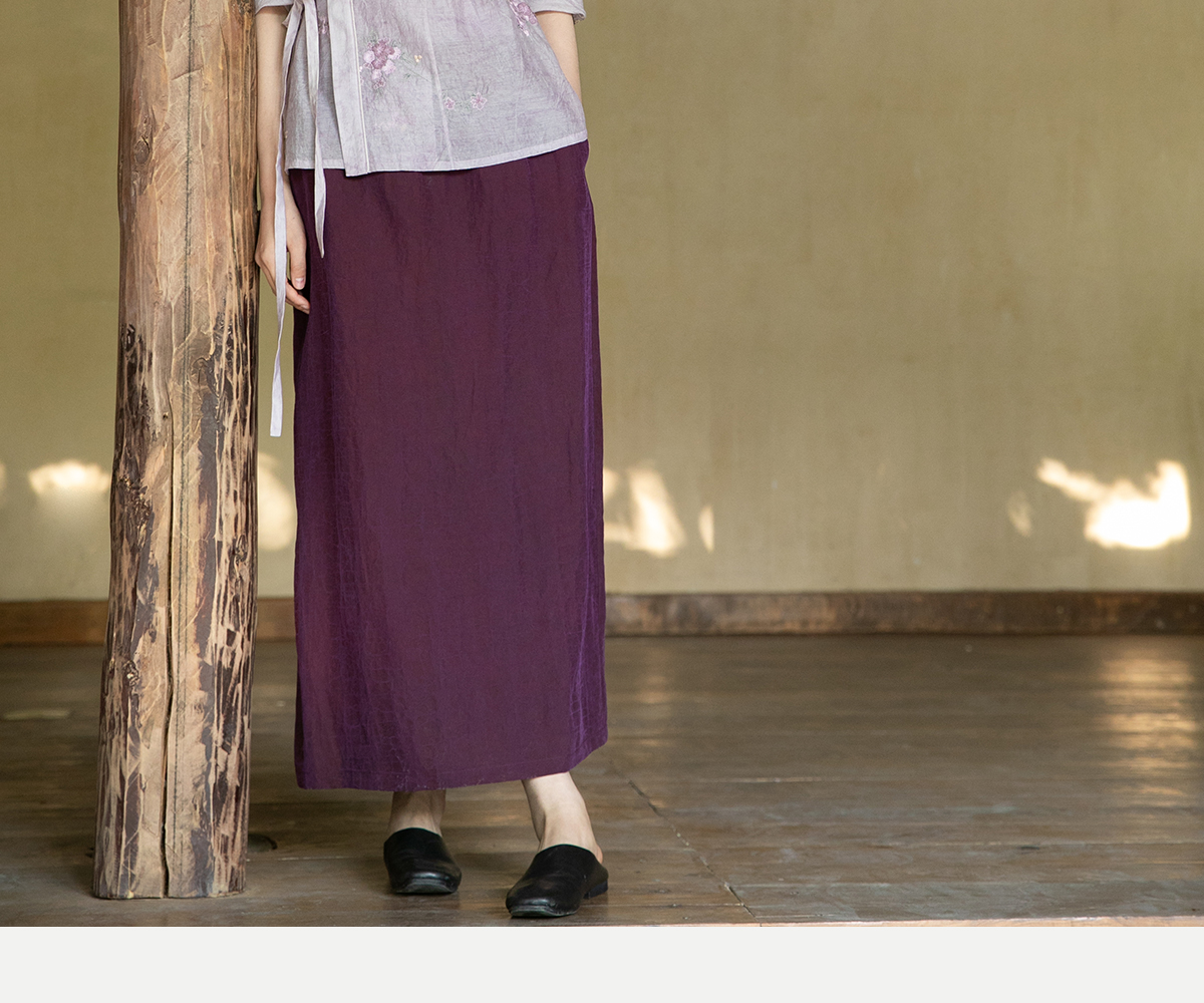 牧衣游原创 龟裂纹紫香云纱半身裙禅意宽松真丝直筒半裙 小绿间