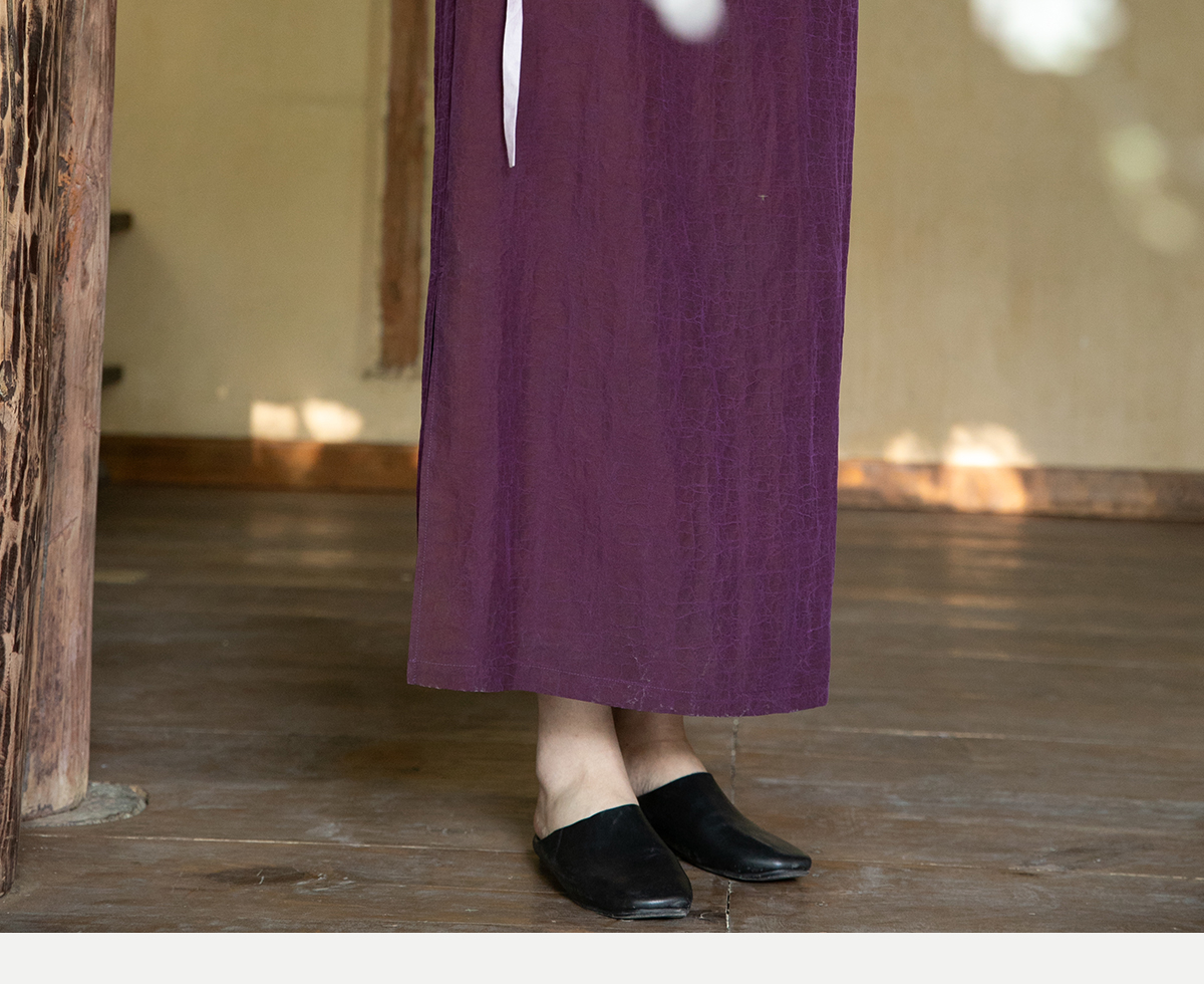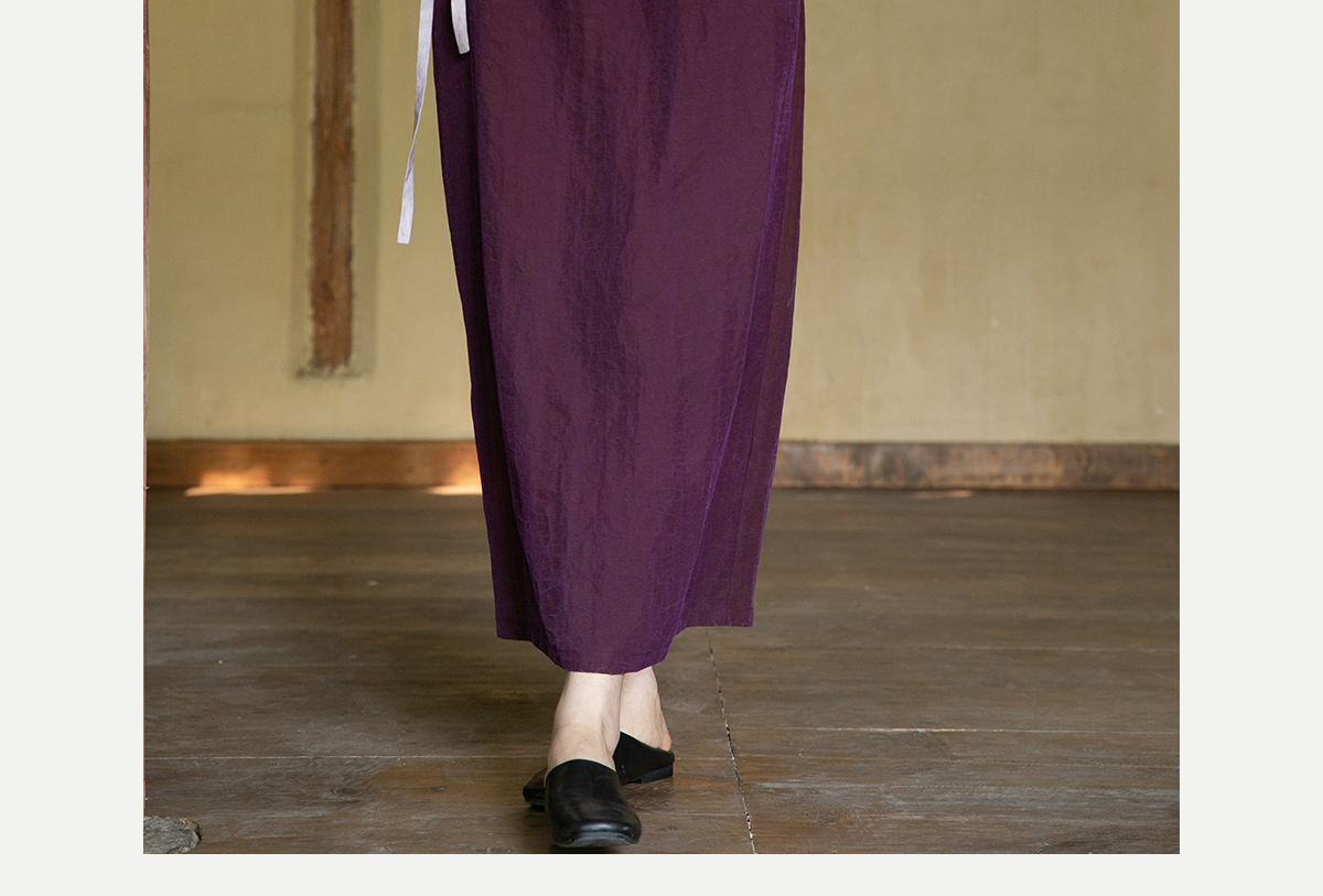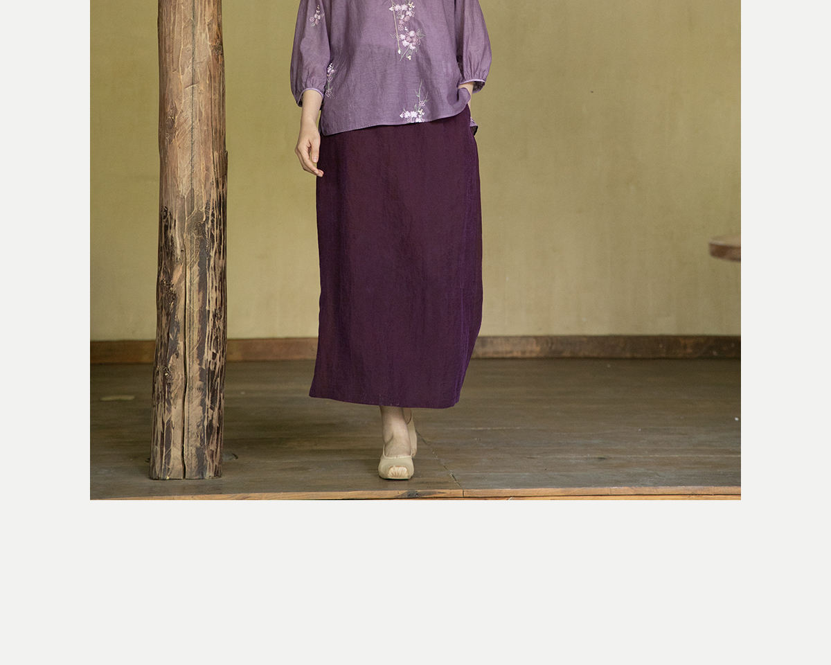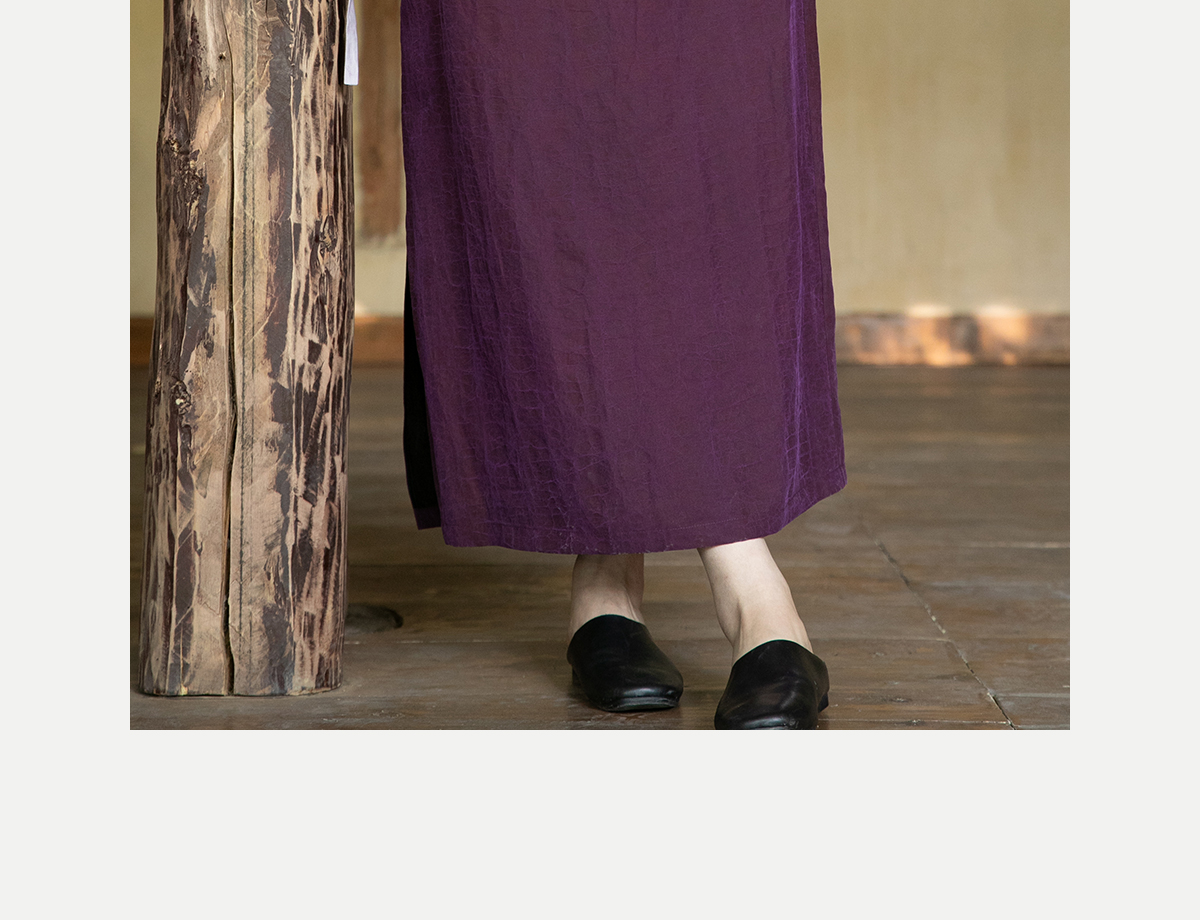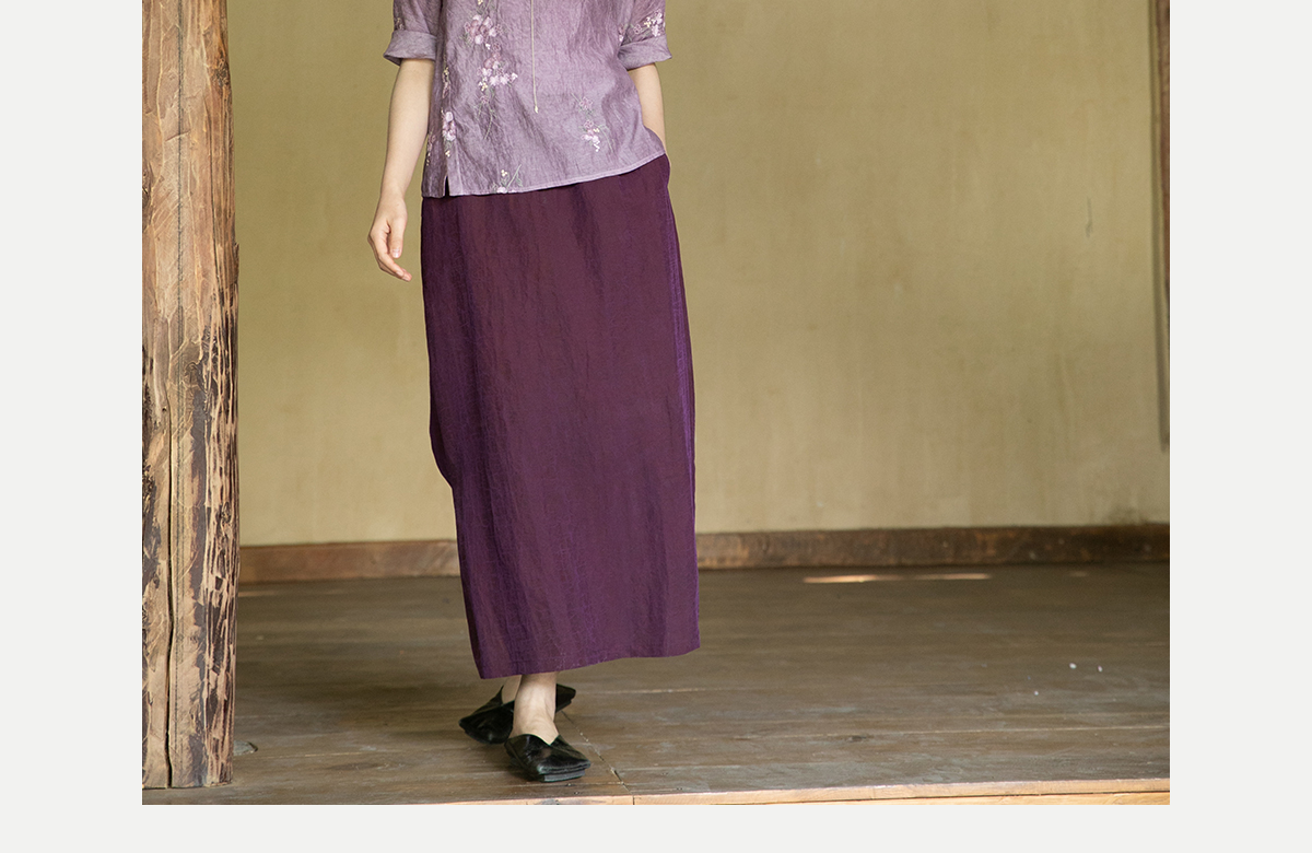 牧衣游原创 龟裂纹紫香云纱半身裙禅意宽松真丝直筒半裙 小绿间