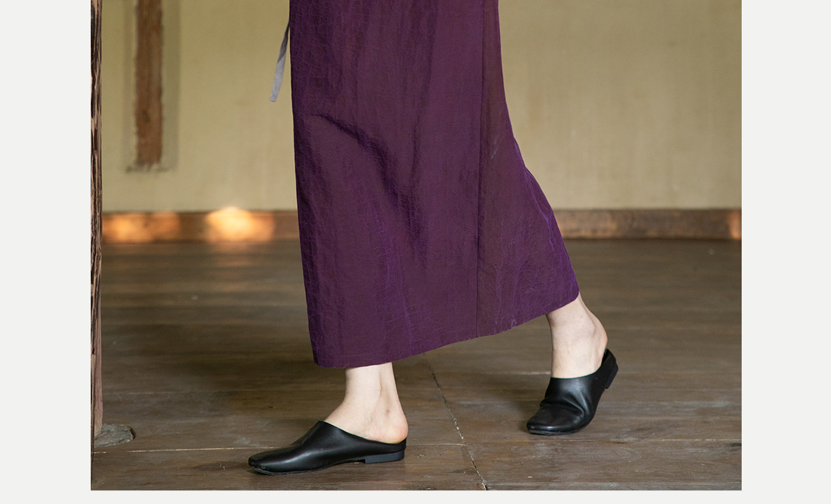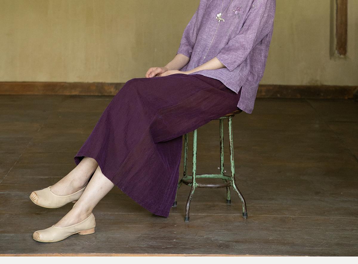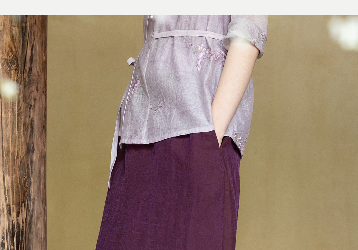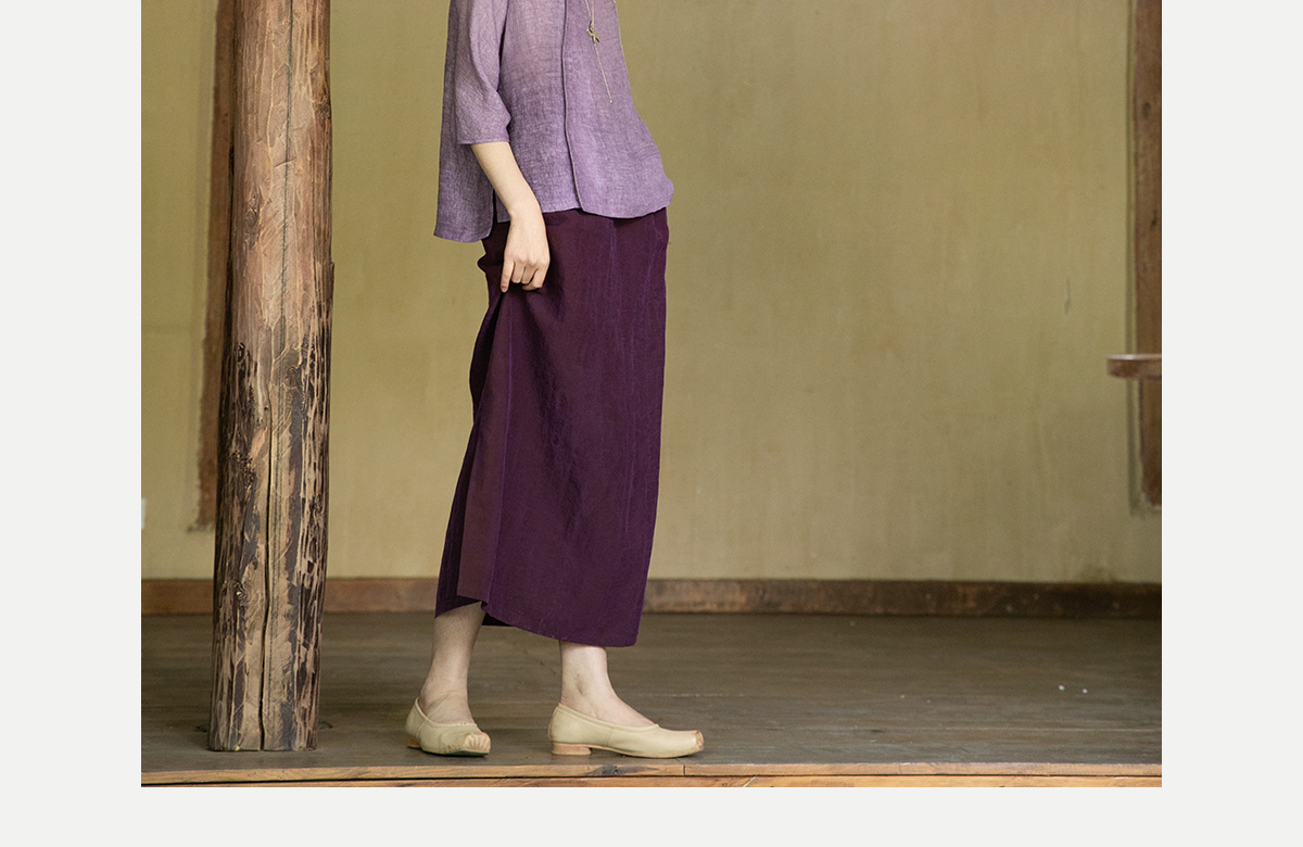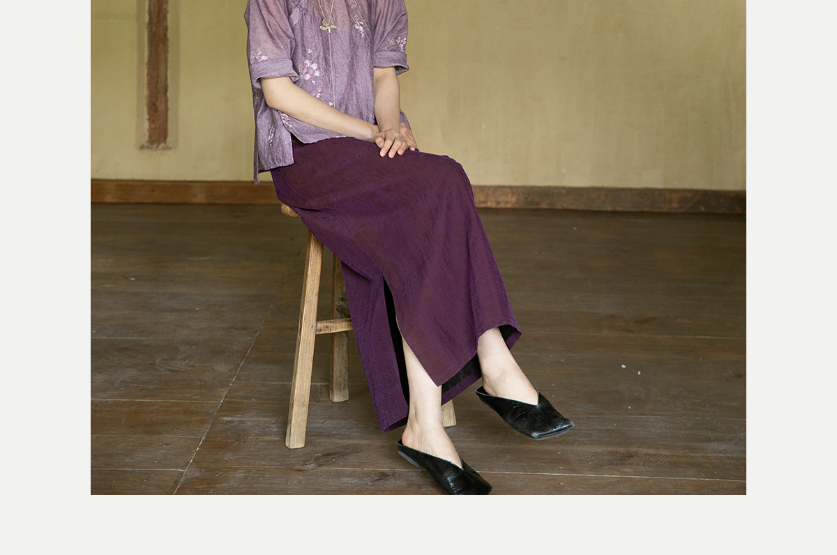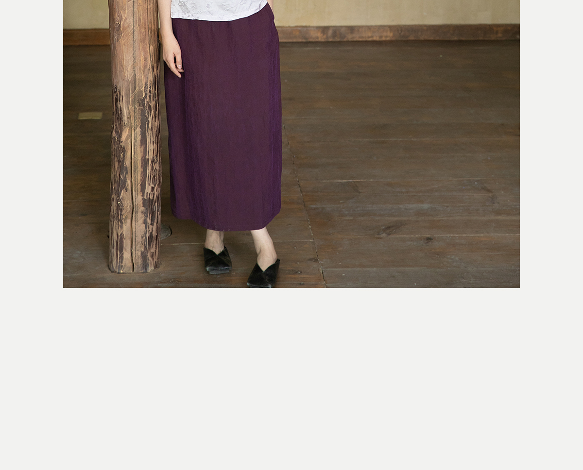 牧衣游原创 龟裂纹紫香云纱半身裙禅意宽松真丝直筒半裙 小绿间