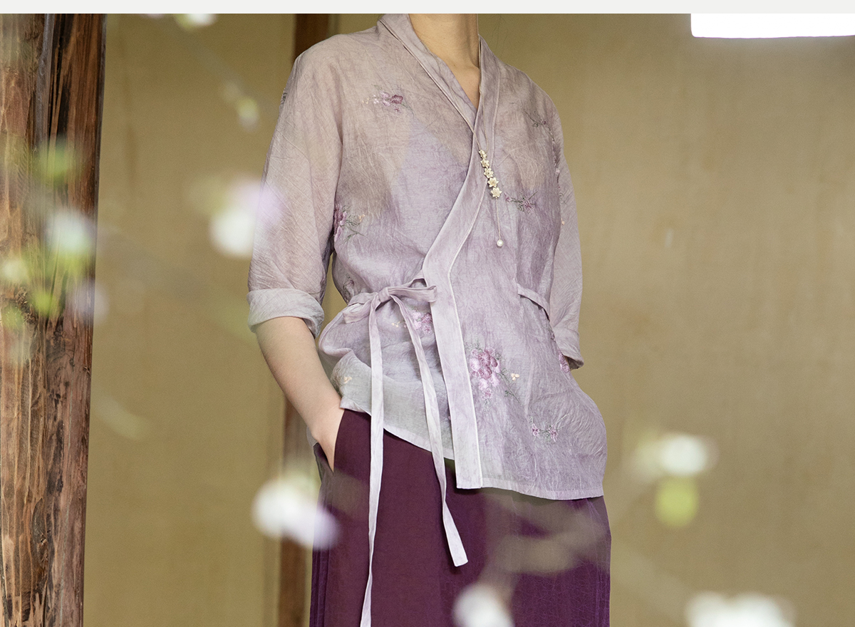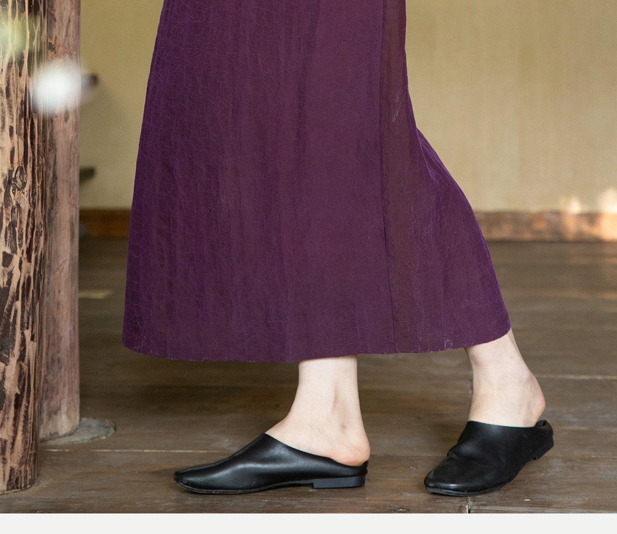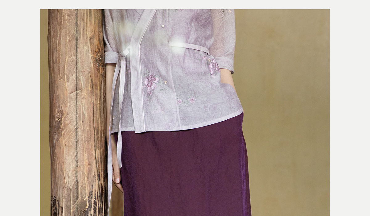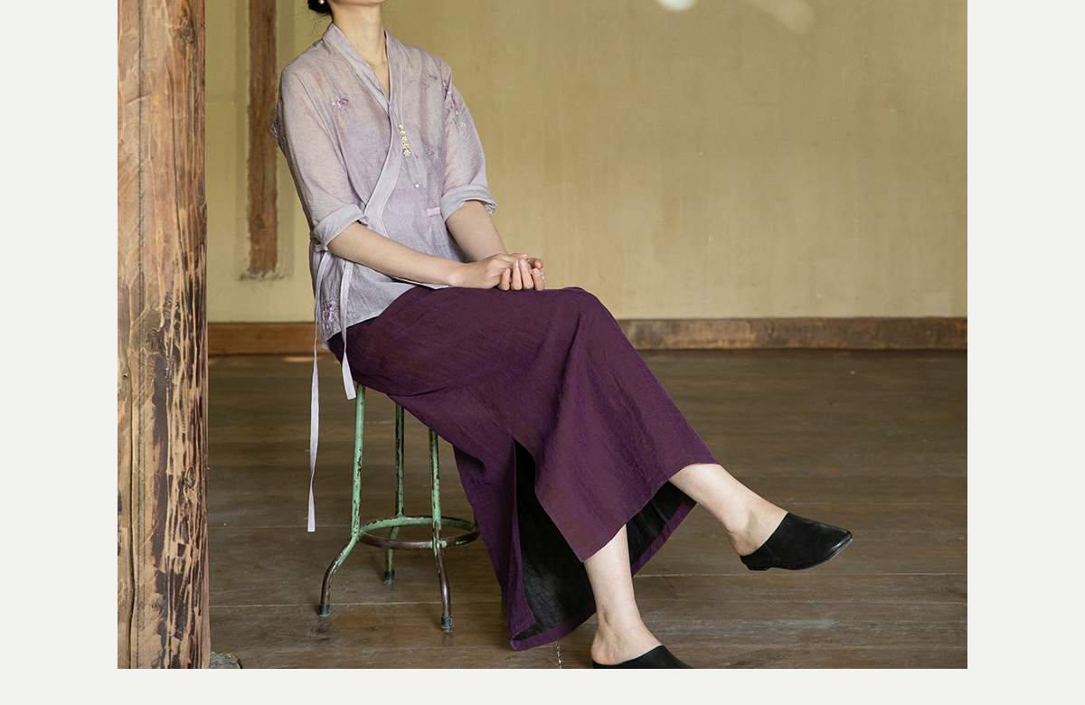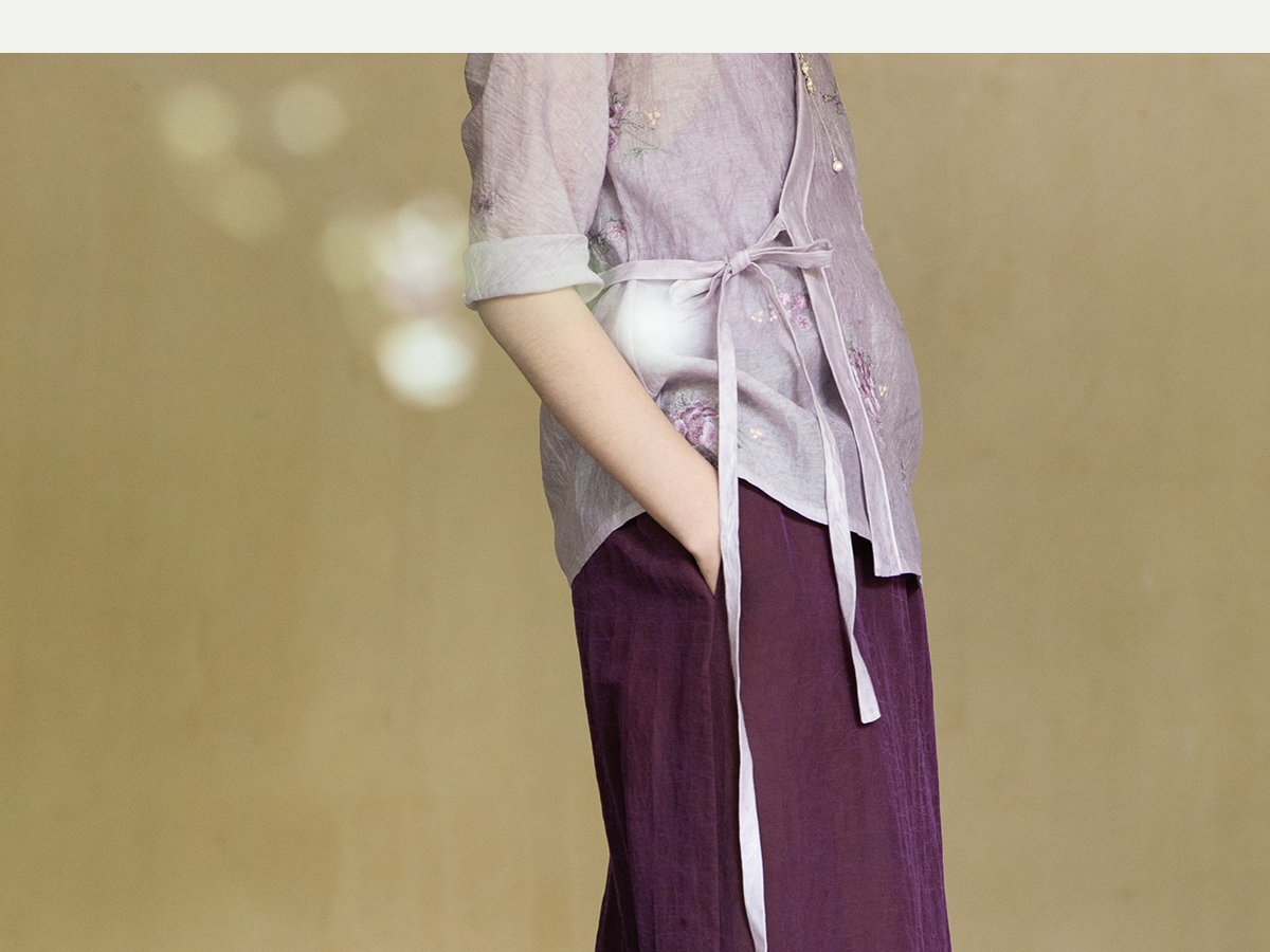 牧衣游原创 龟裂纹紫香云纱半身裙禅意宽松真丝直筒半裙 小绿间