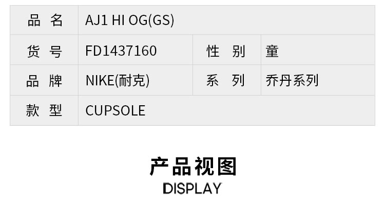 耐克女鞋 AJ1 黑白黄 高帮运动鞋复古篮球鞋