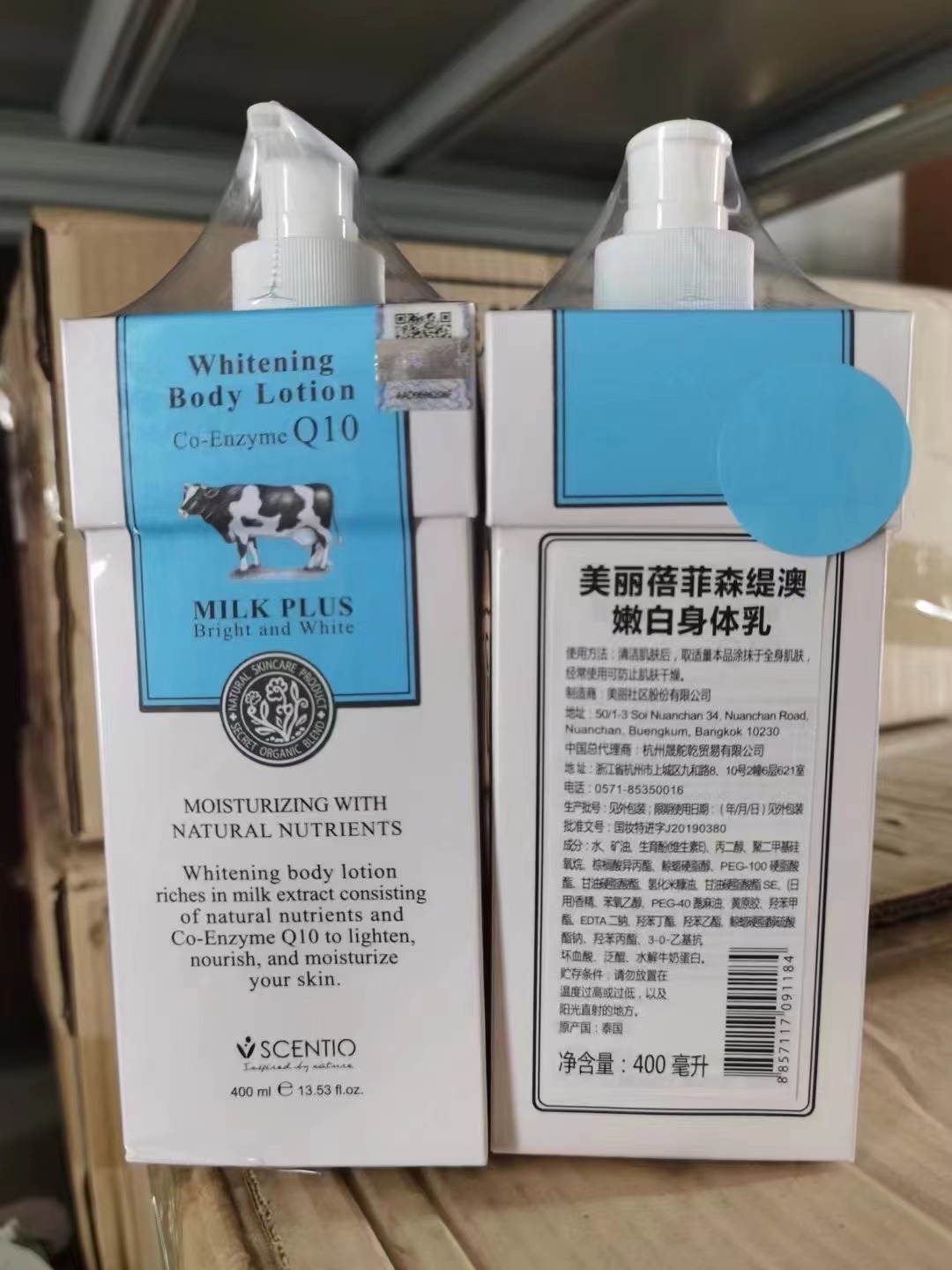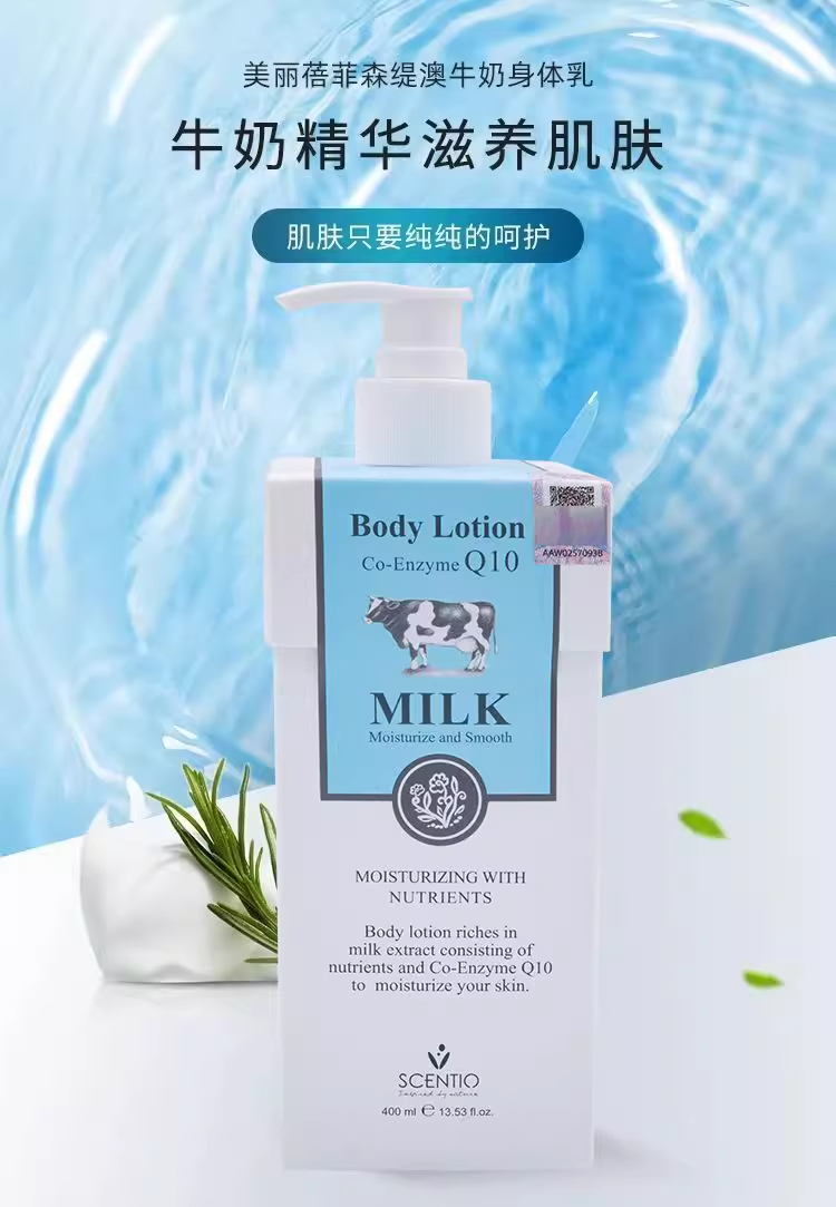 【中欧班列】泰国进口美丽蓓菲辅酶Q10牛奶身体乳美白保湿滋润奶香400ml/瓶