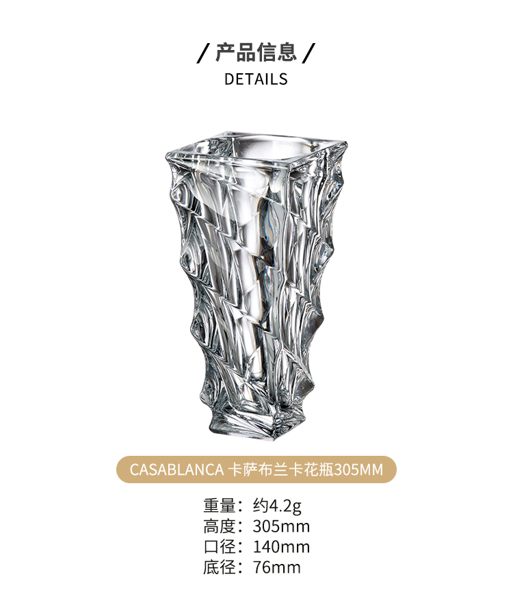 【清仓特惠5折】捷克进口/BOHEMIA波西米亚 卡萨布兰卡宝石系列彩色水晶玻璃花瓶 北欧简约客厅摆件透明大轻奢