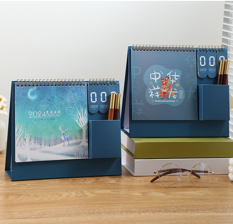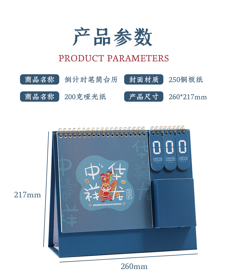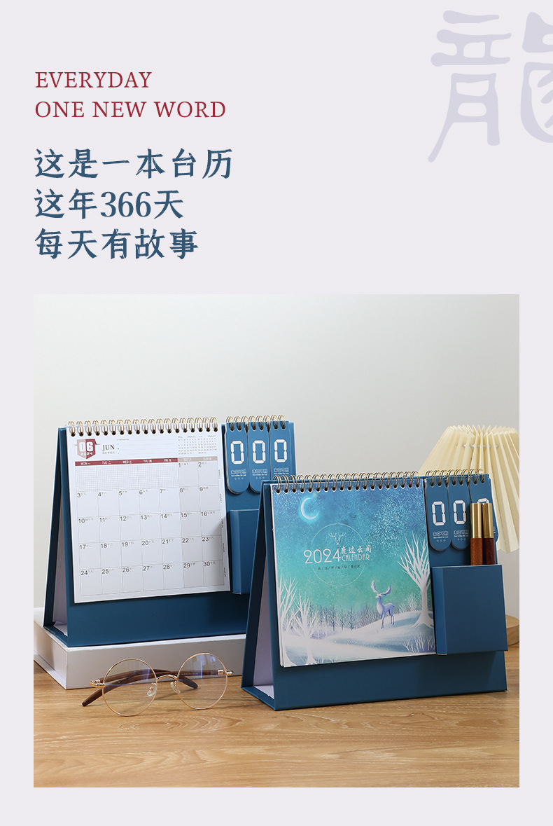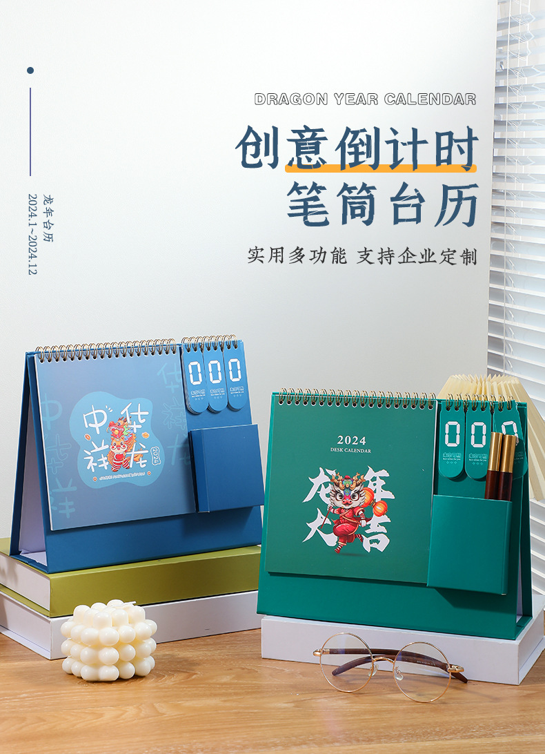 「数款可选!2024年龙年台历」打卡日历创意企业桌面国潮家居饰品简约办公倒计时台历