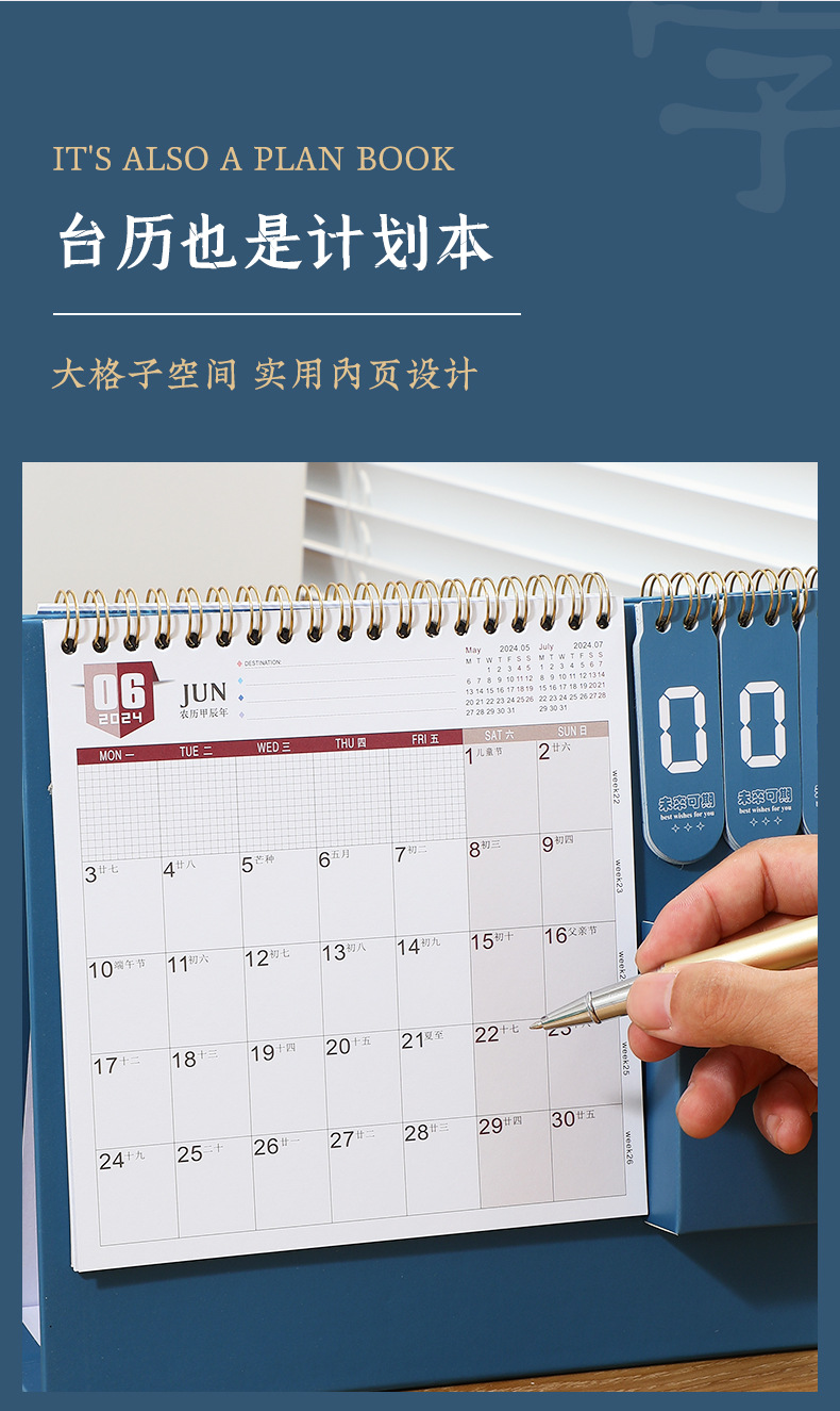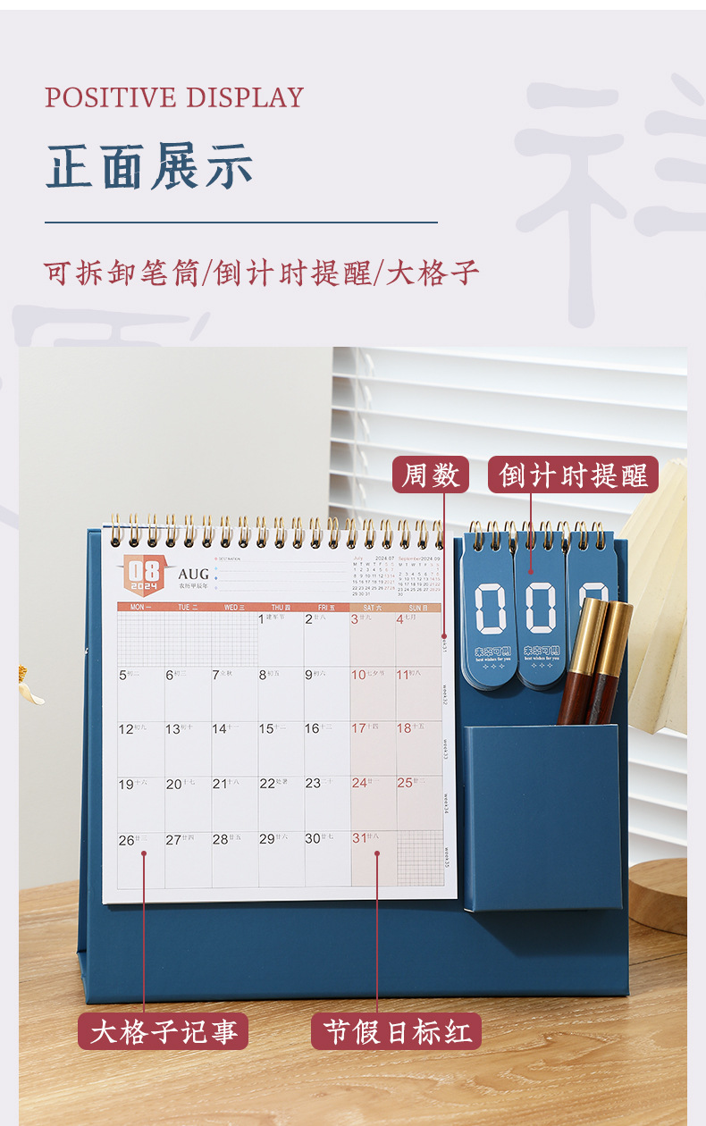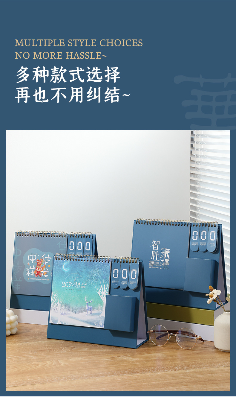 「数款可选!2024年龙年台历」打卡日历创意企业桌面国潮家居饰品简约办公倒计时台历