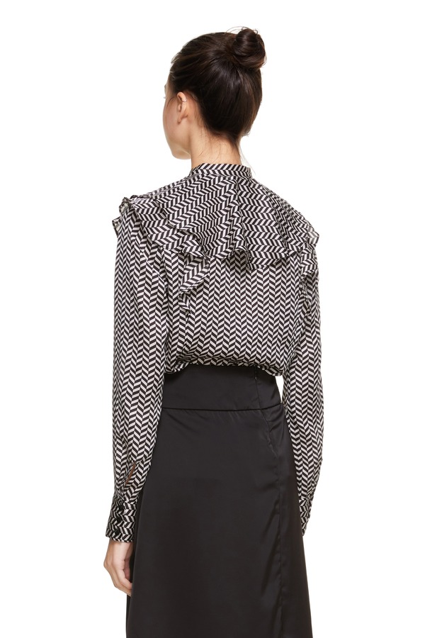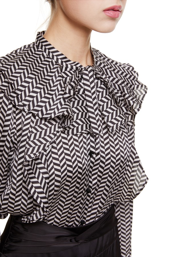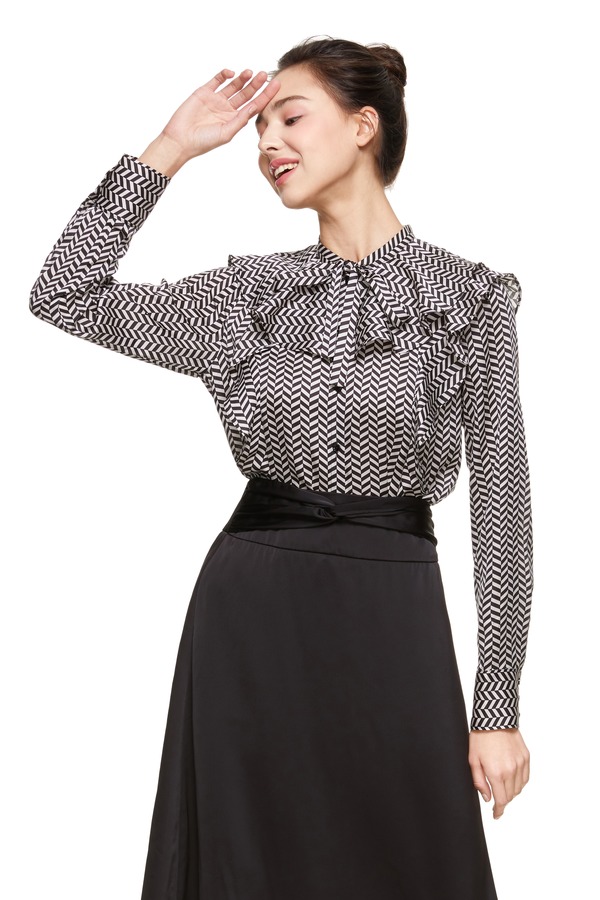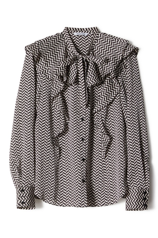 ELLA JADE 黑白人字纹荷叶边上衣 8837