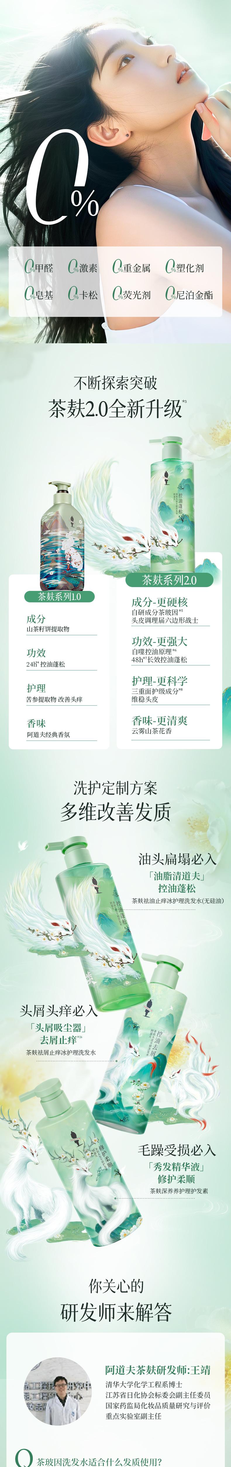 阿道夫茶麸冰护理专研无硅油洗发水(祛油止痒)350ml 【XPTX】