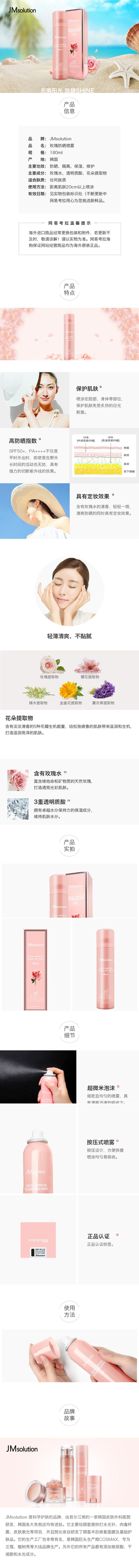 JM solution 玫瑰防水防晒喷雾SPF50 180ml 韩国