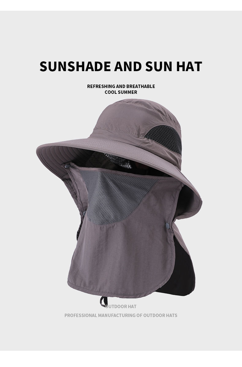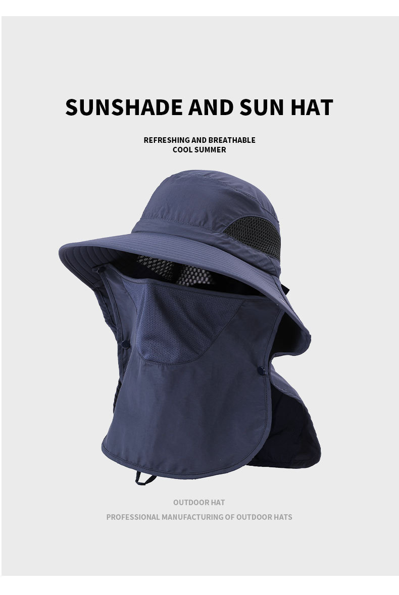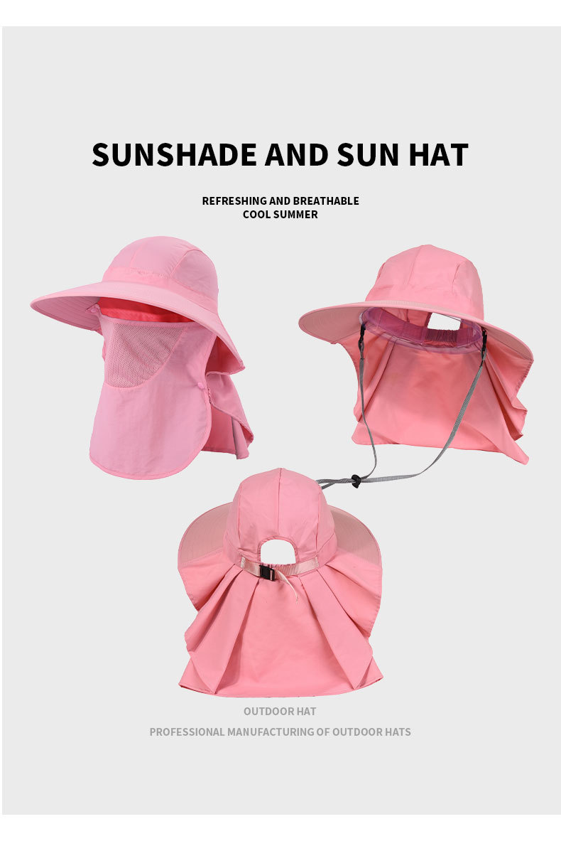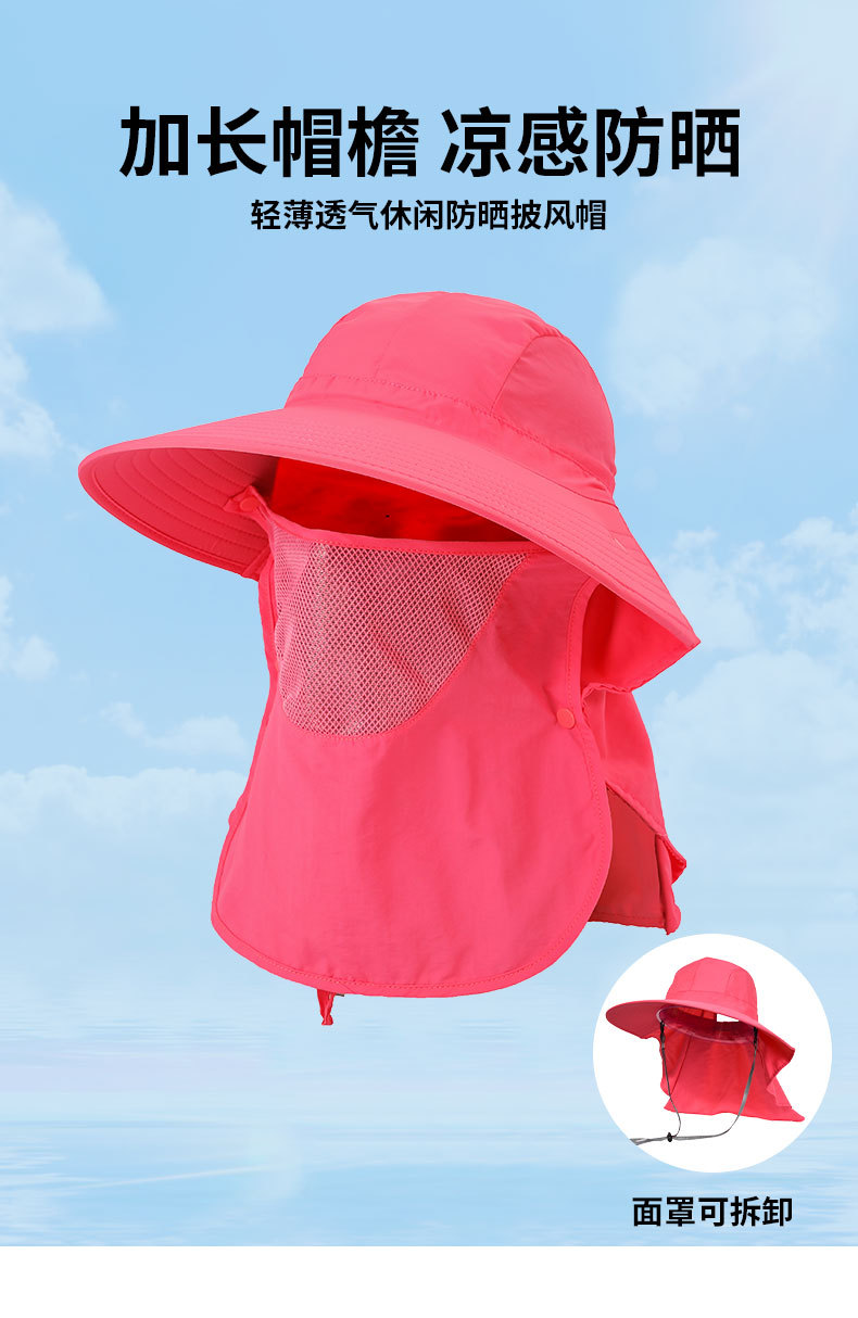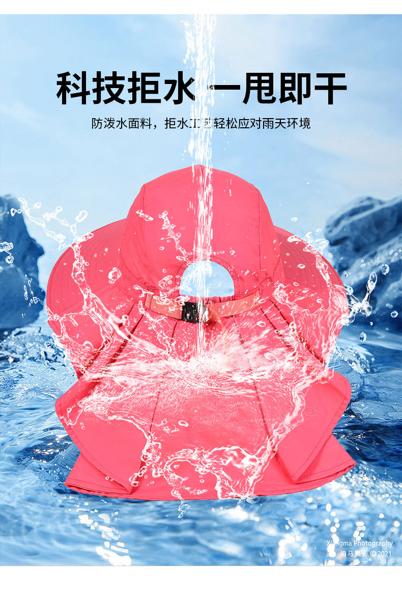 夏季防晒遮阳帽子 女士户外钓鱼速干透气渔夫帽 可拆卸大帽檐太阳帽