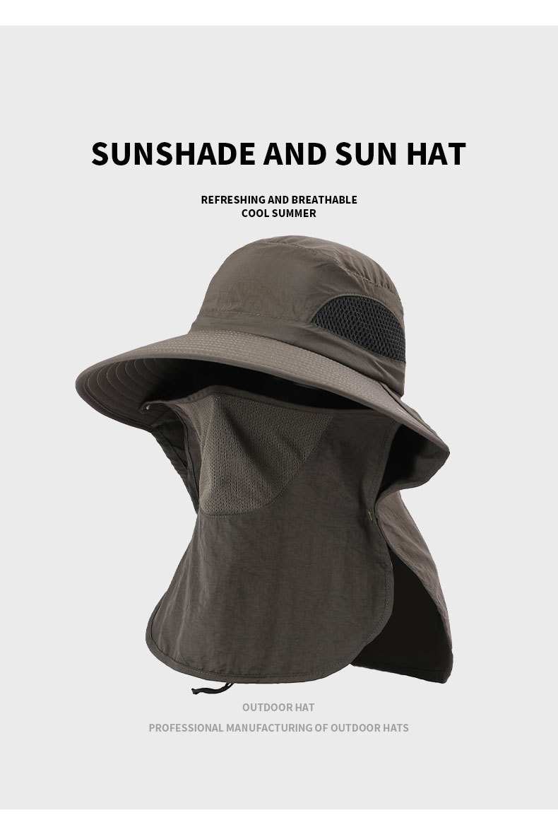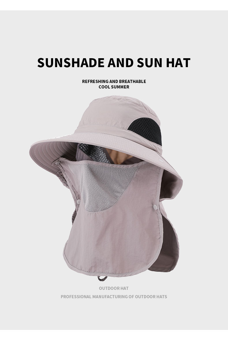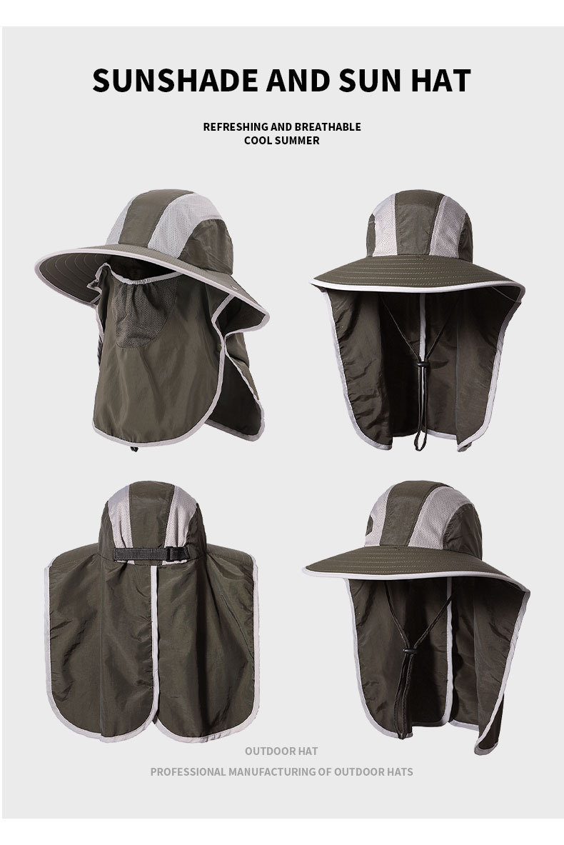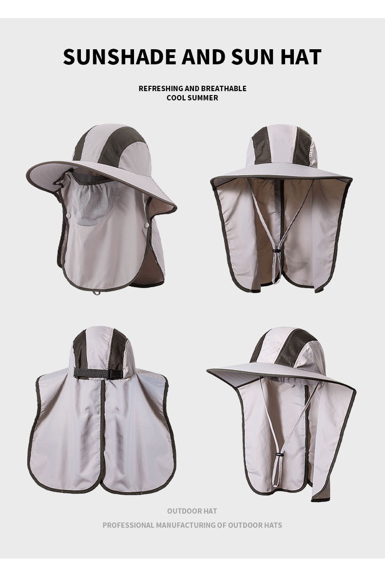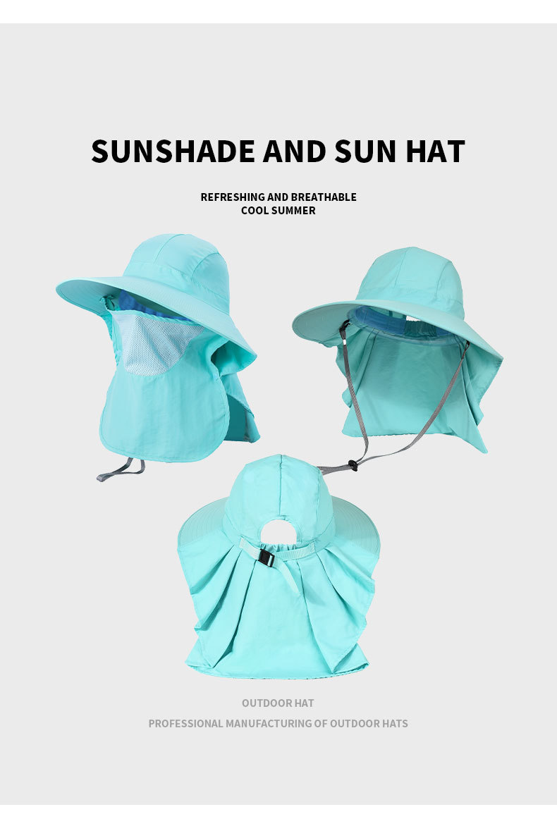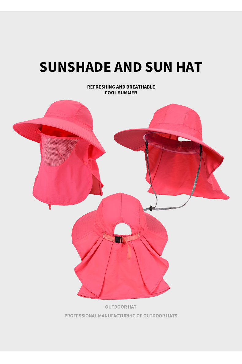 夏季防晒遮阳帽子 女士户外钓鱼速干透气渔夫帽 可拆卸大帽檐太阳帽