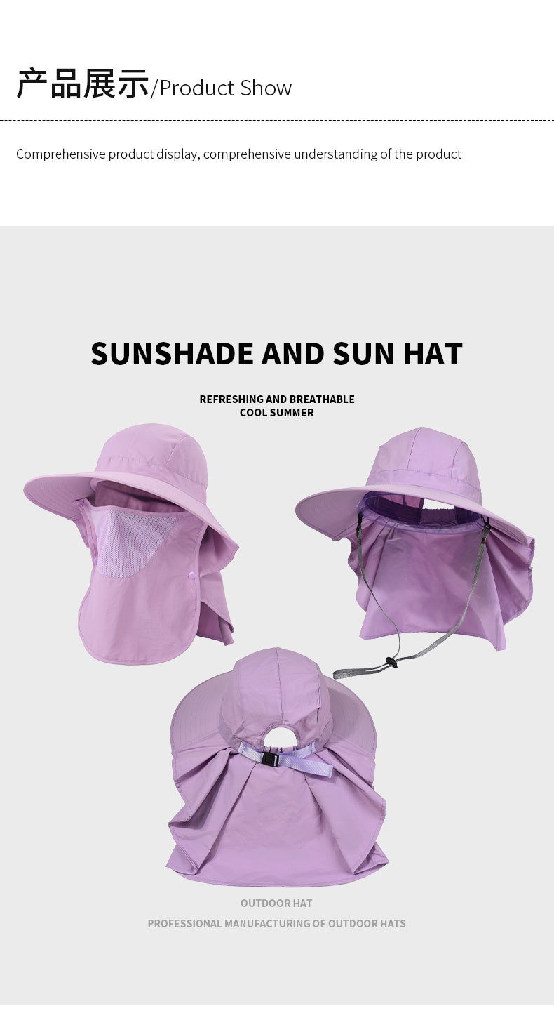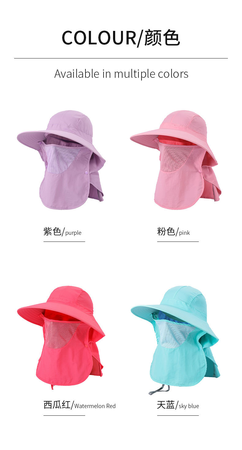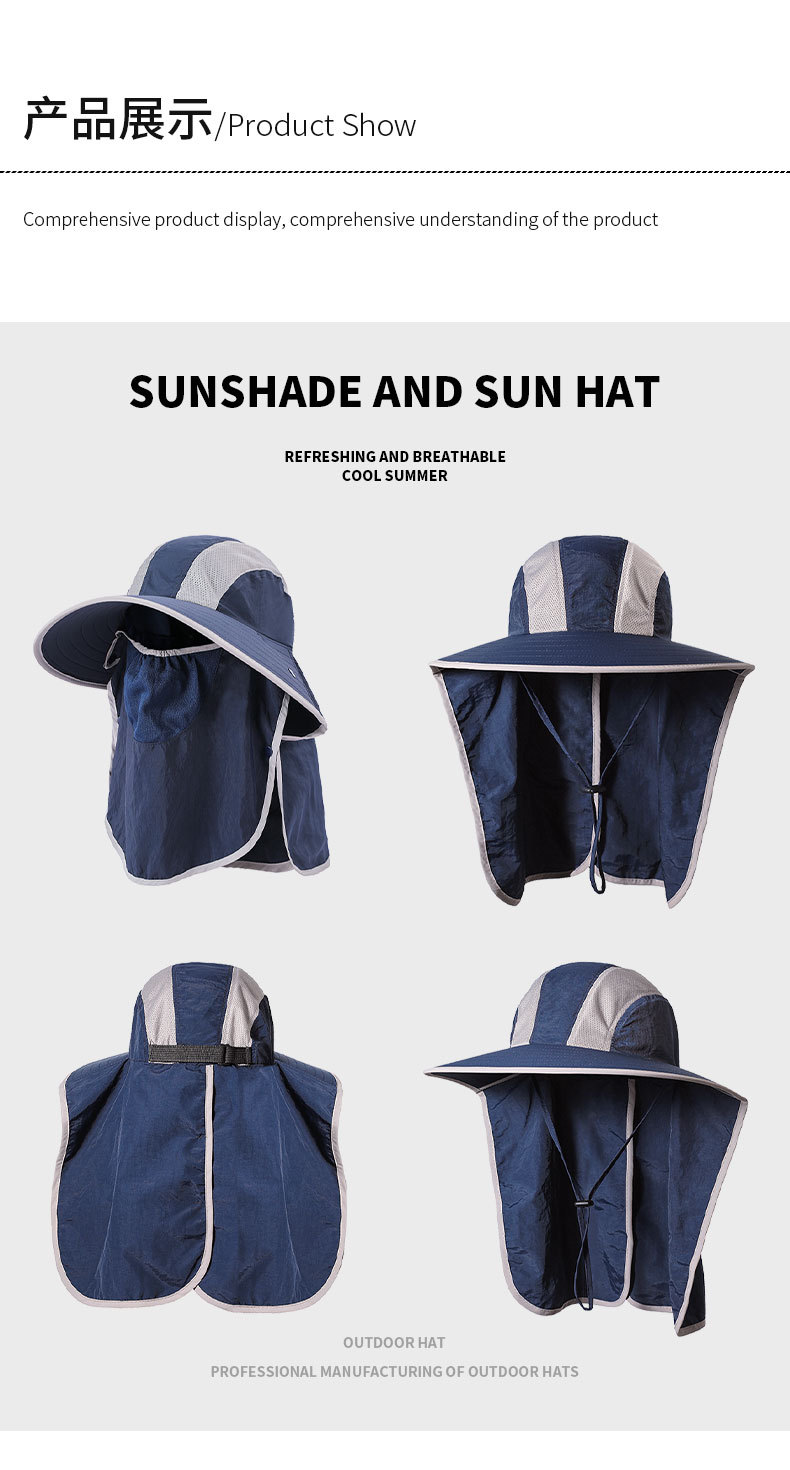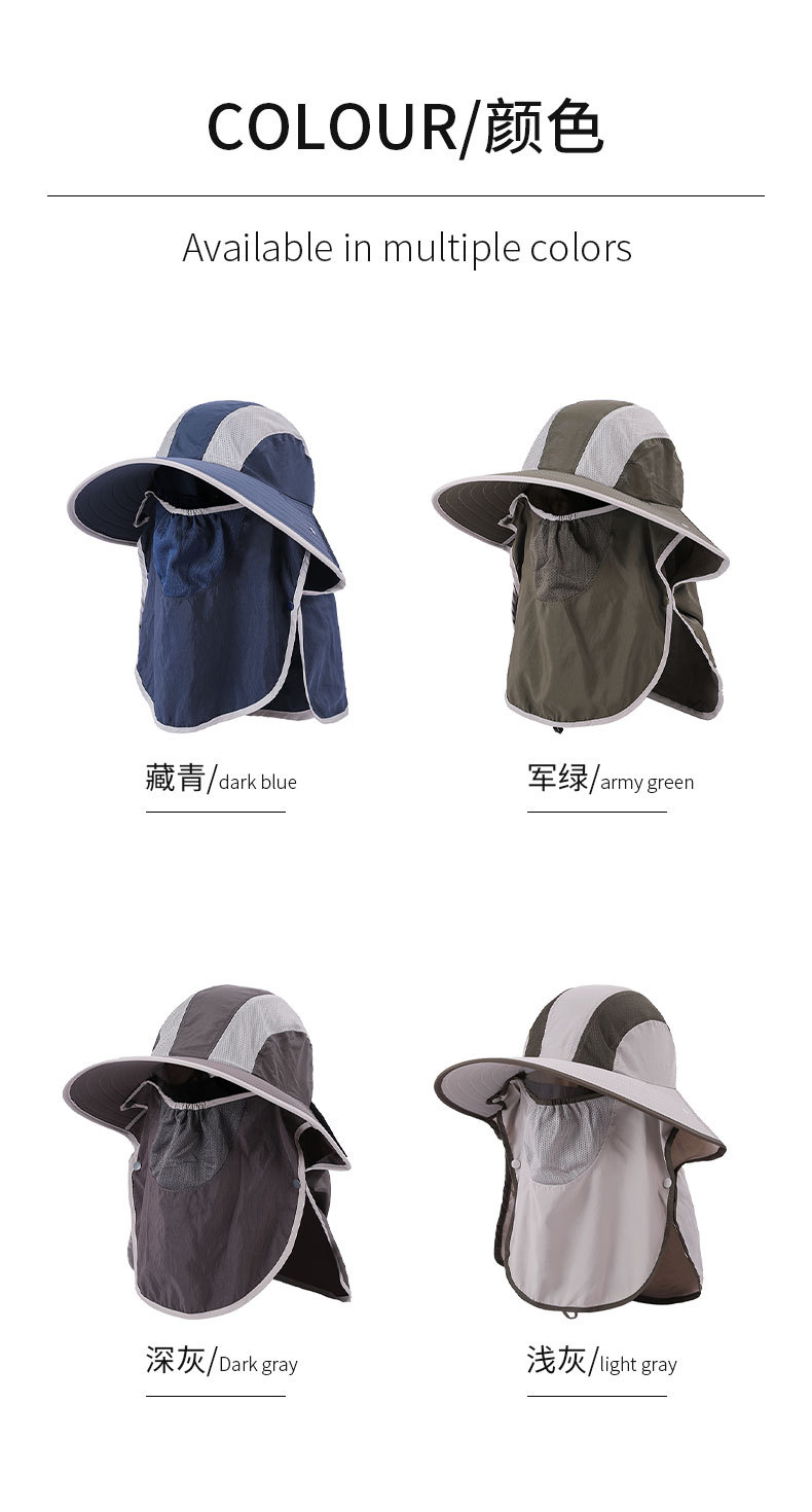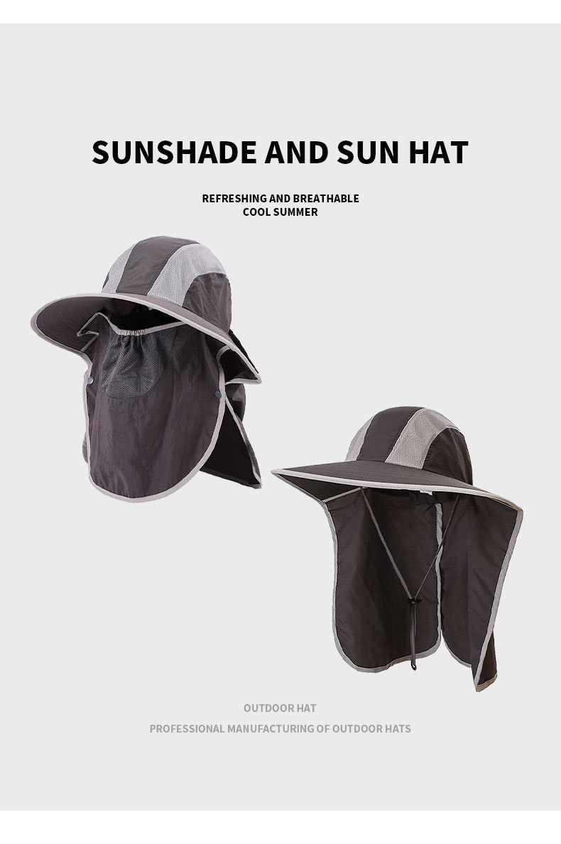 夏季防晒遮阳帽子 女士户外钓鱼速干透气渔夫帽 可拆卸大帽檐太阳帽