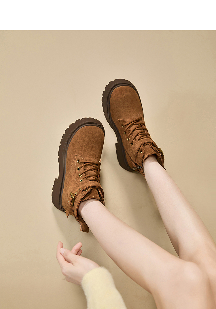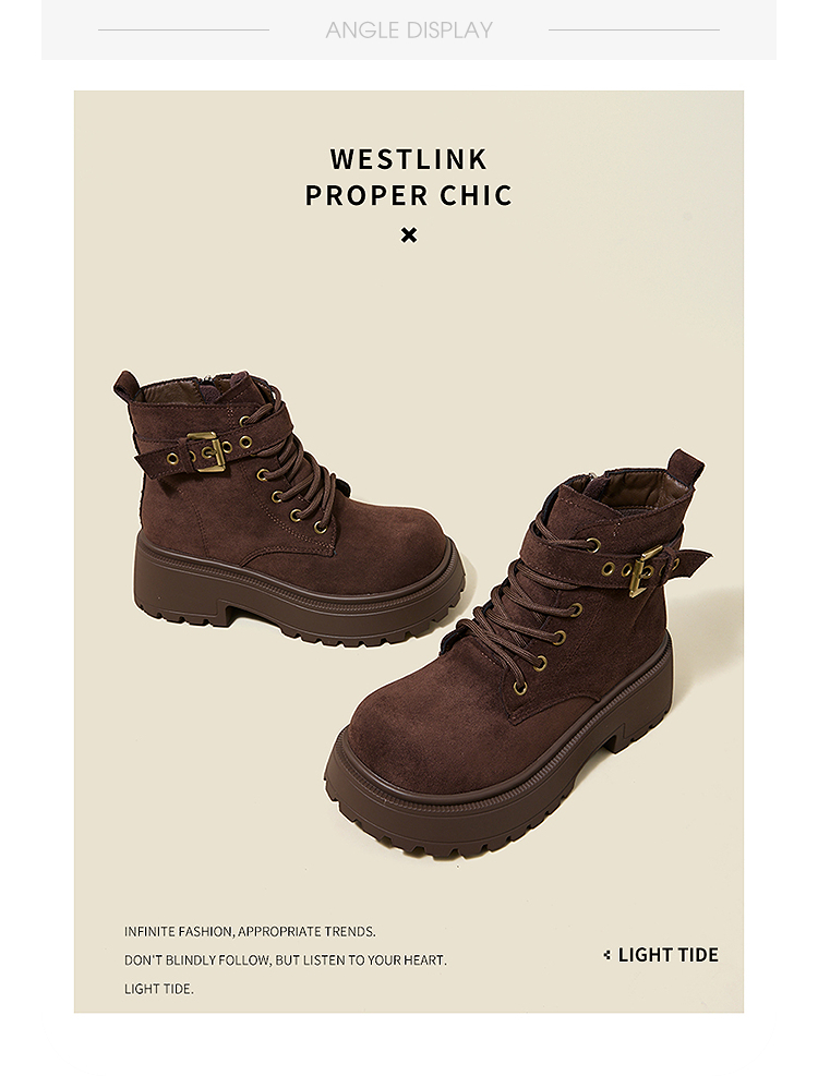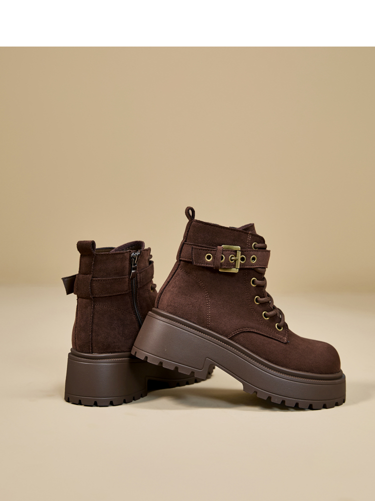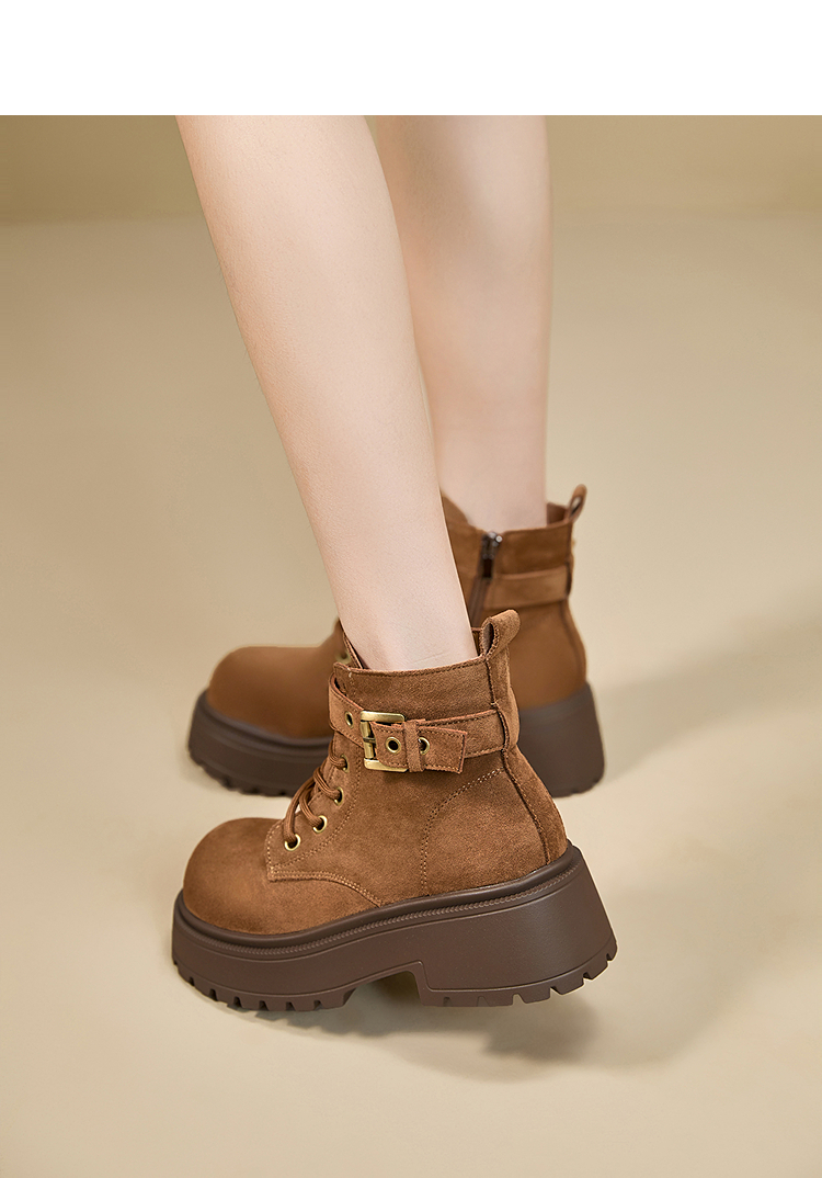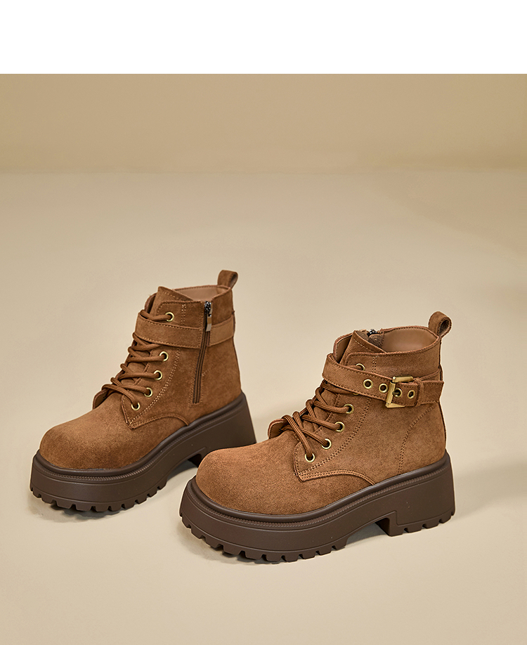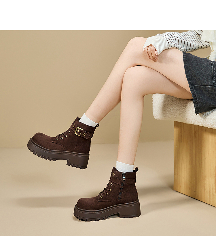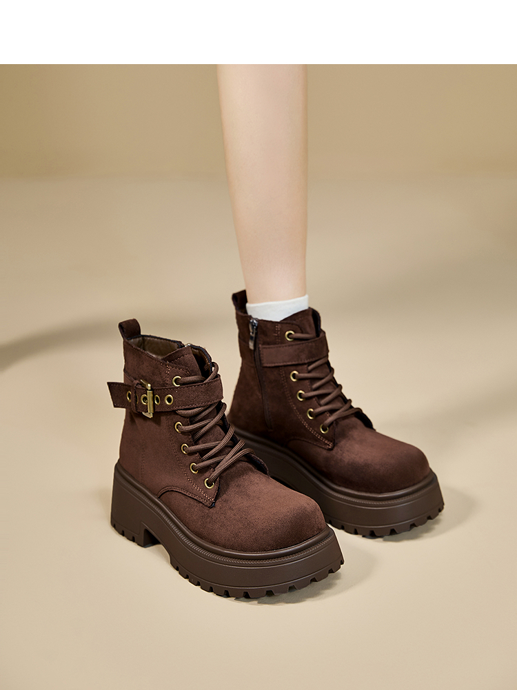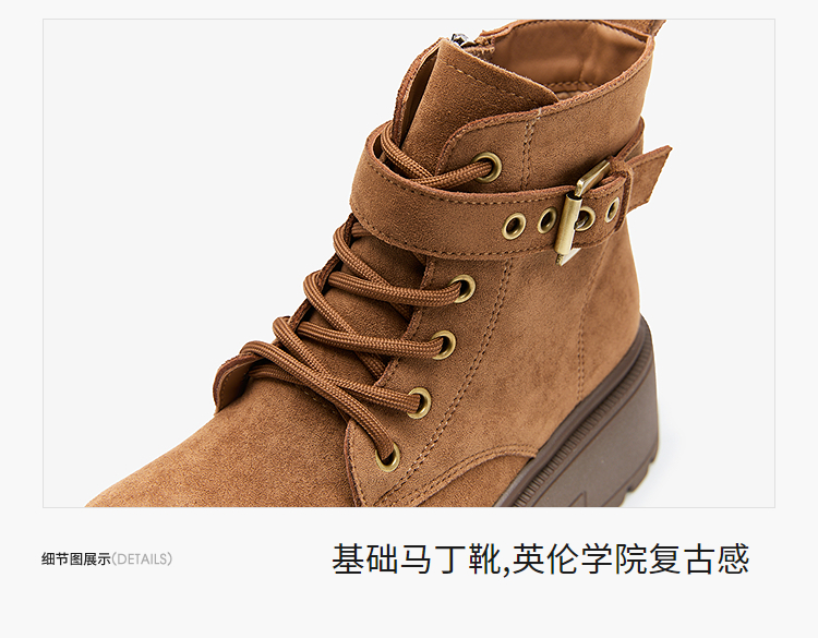 西遇增高马丁靴女新款秋冬复古英伦风机车靴子厚底系带短靴V2257283