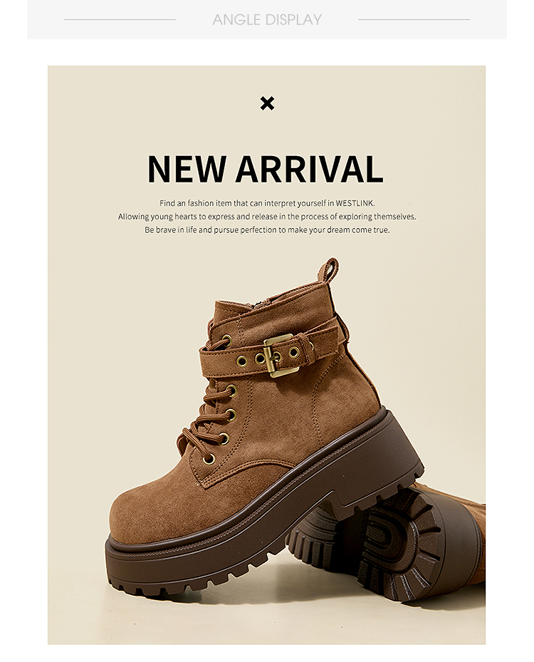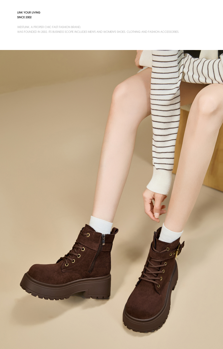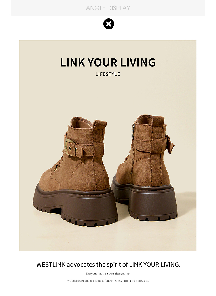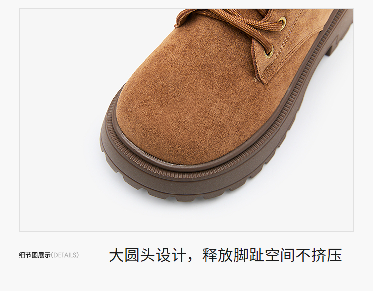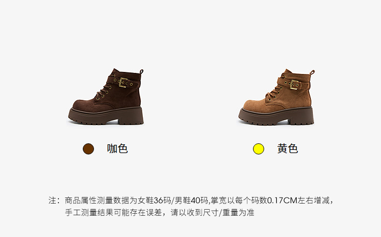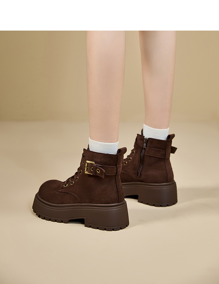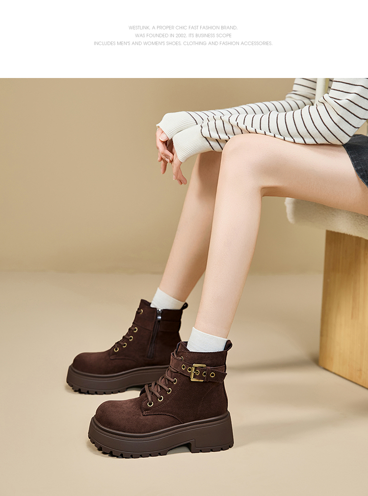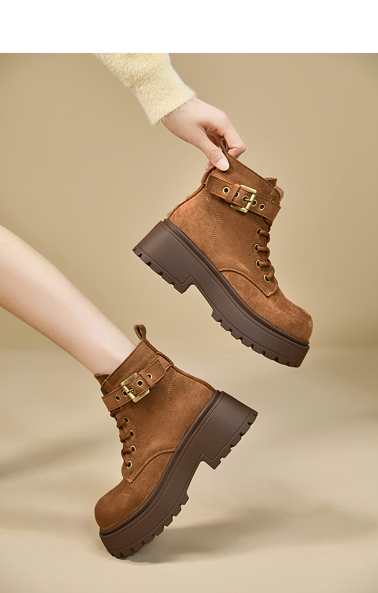 西遇增高马丁靴女新款秋冬复古英伦风机车靴子厚底系带短靴V2257283